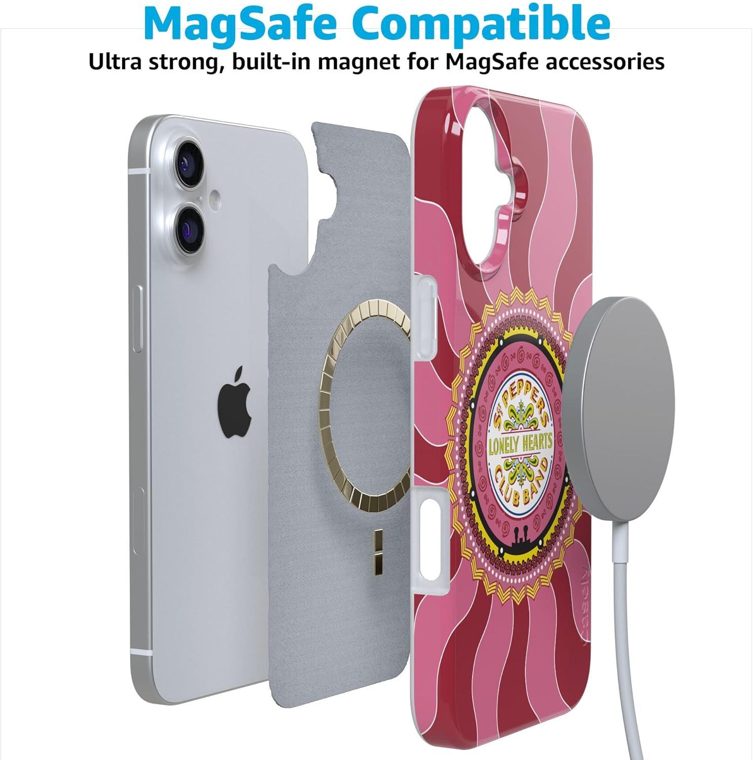 Casely iPhone 16 Plus Case | Tulip Tapestry | Jenna Palek x Casely | Compatible with MagSafe | Classic Ultra Thin Design(Lonely Hearts Club | The Beatles Sgt. Pepper’s)