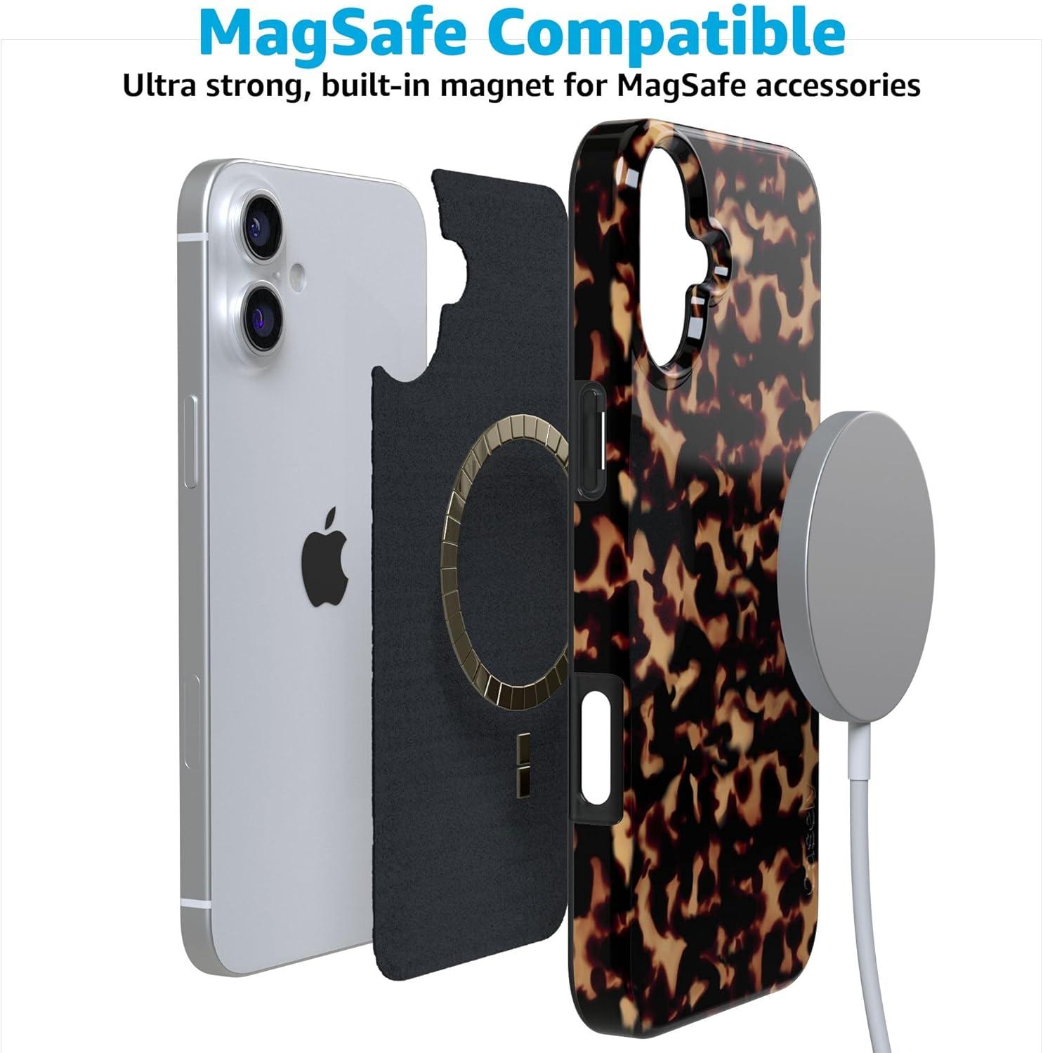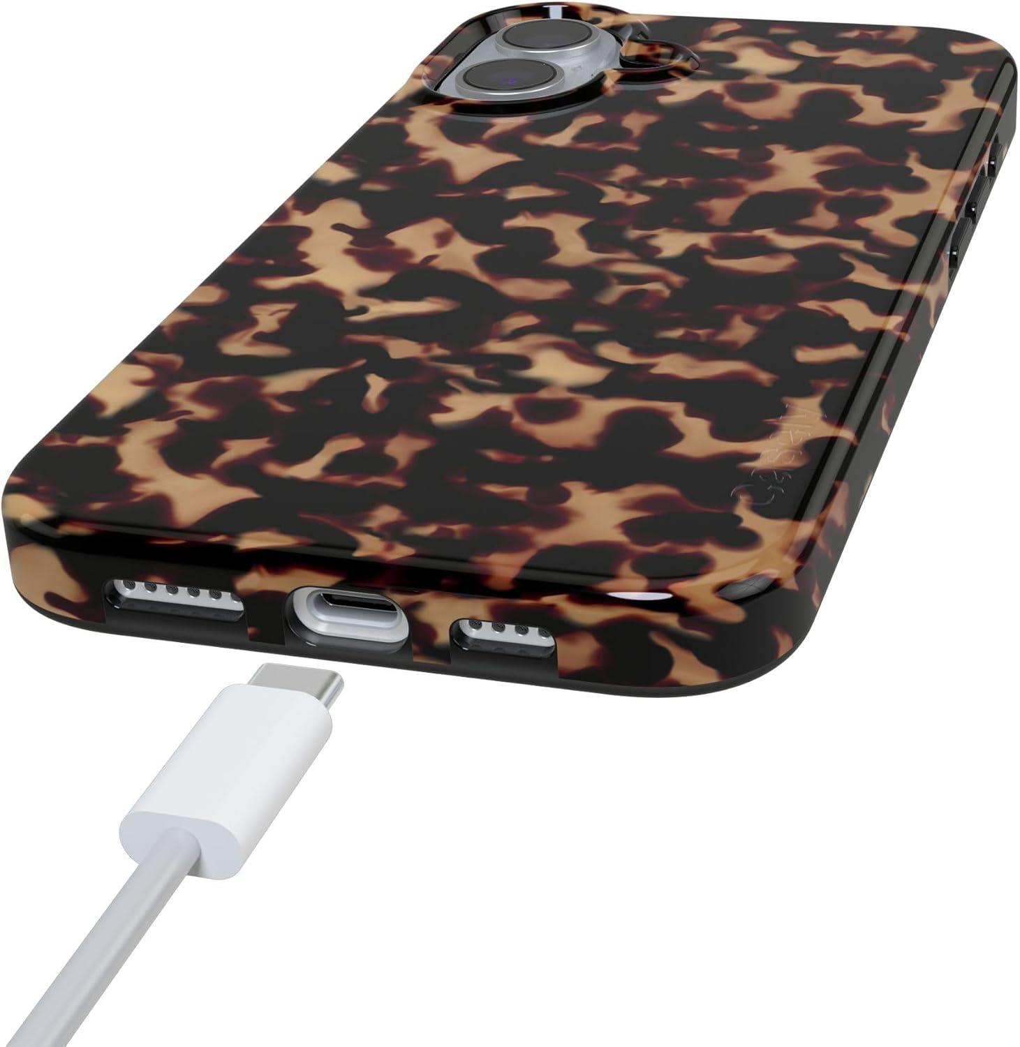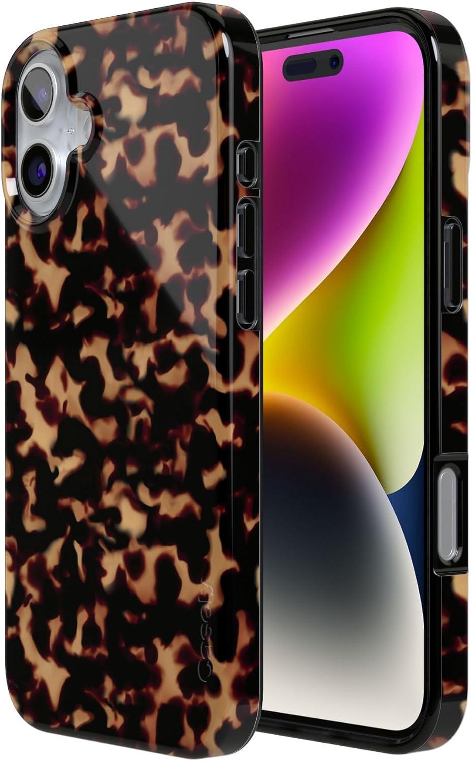 Casely iPhone 16 Plus Case | Tulip Tapestry | Jenna Palek x Casely | Compatible with MagSafe | Classic Ultra Thin Design(Shell Shocked | Tortoise Print)