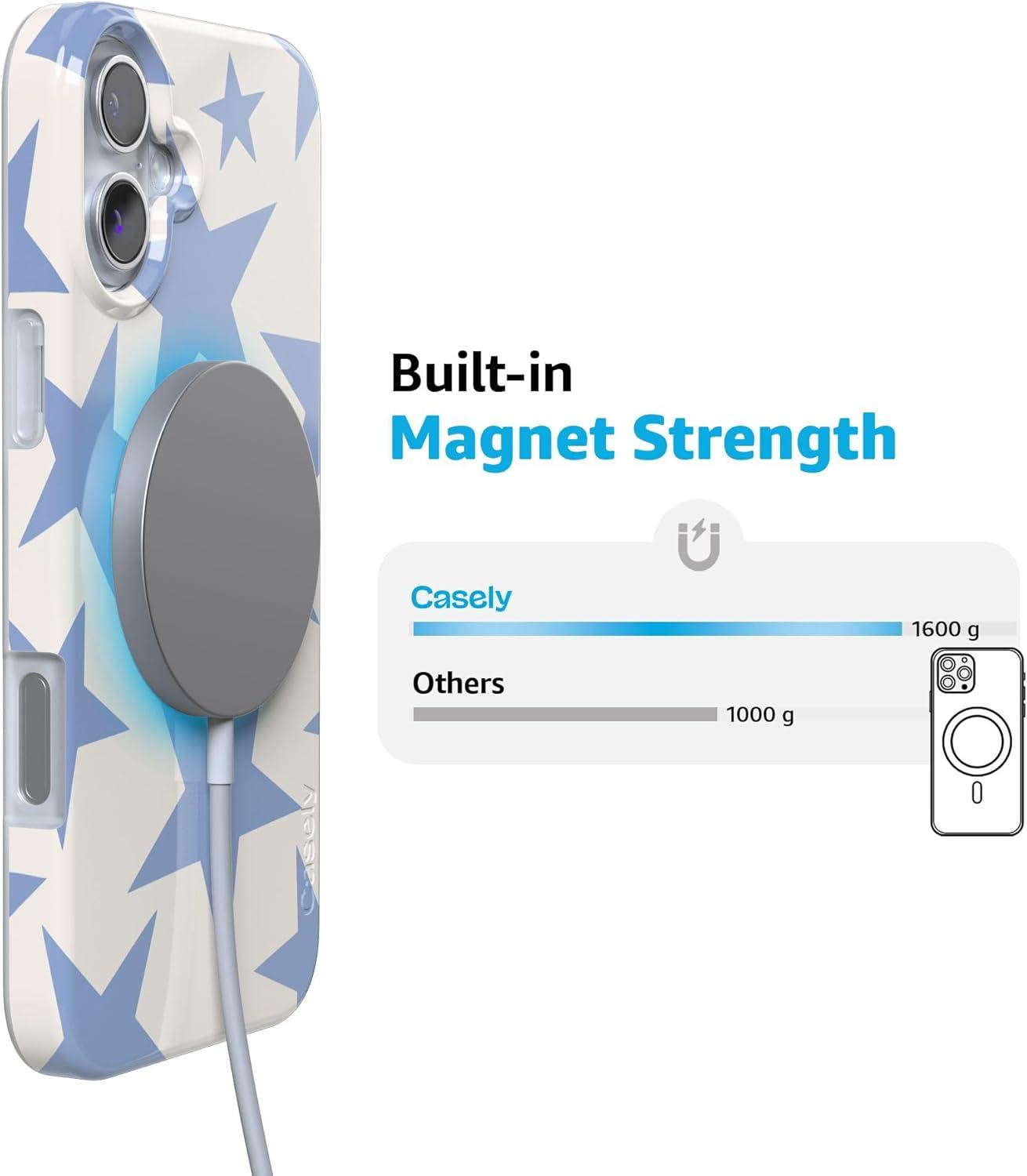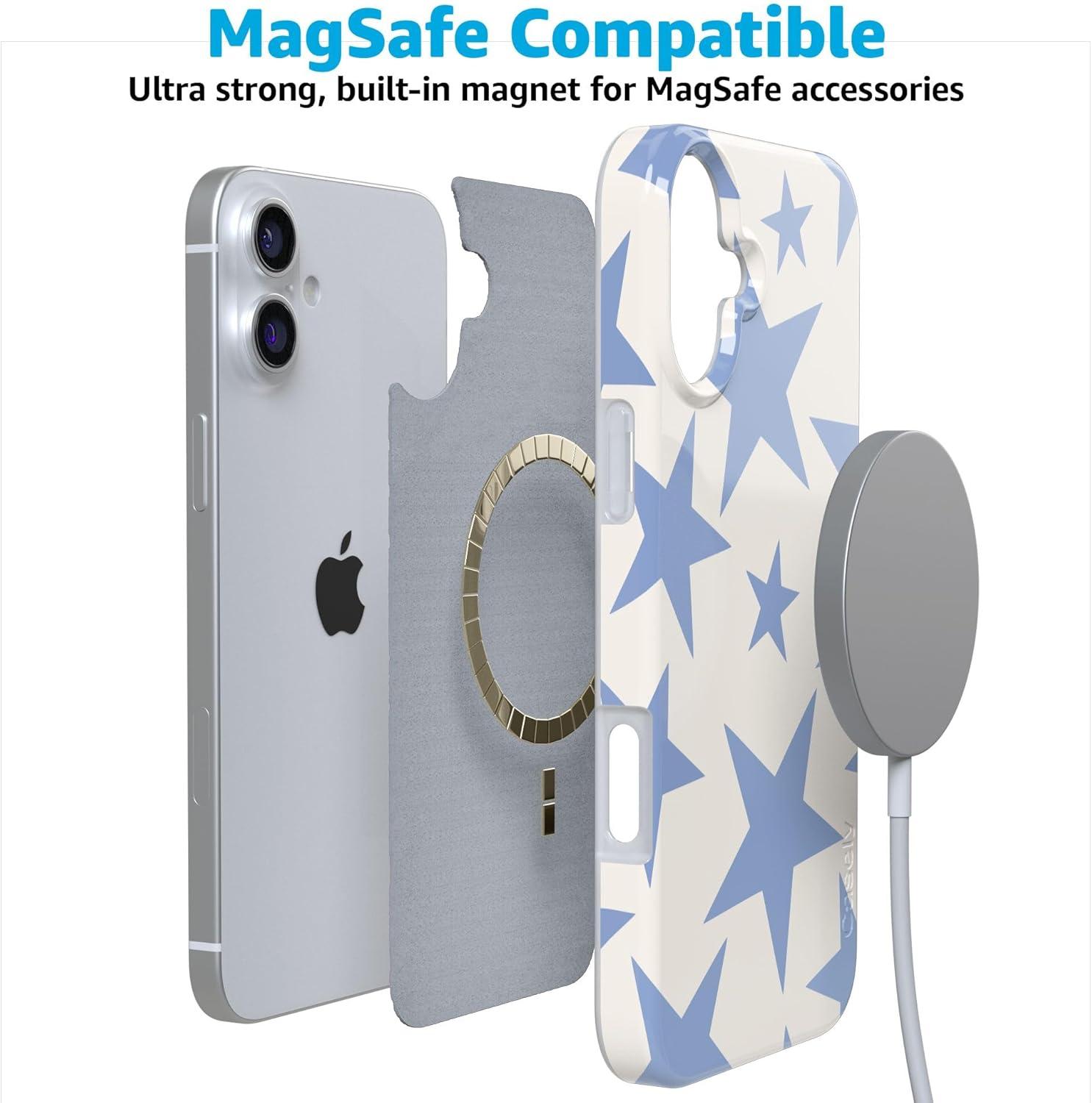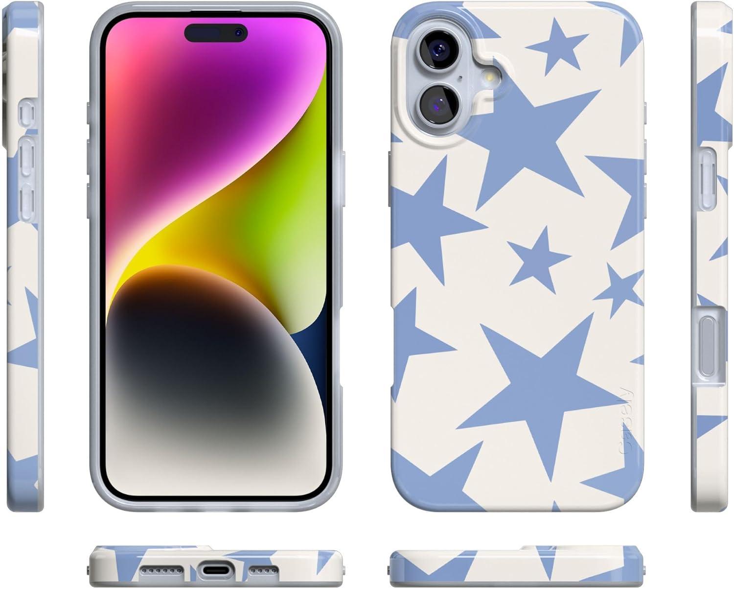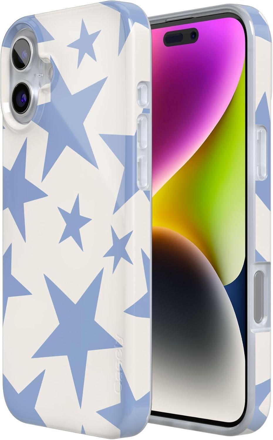 Casely iPhone 16 Plus Case | Tulip Tapestry | Jenna Palek x Casely | Compatible with MagSafe | Classic Ultra Thin Design(Stars Align | Blue & White Stars)