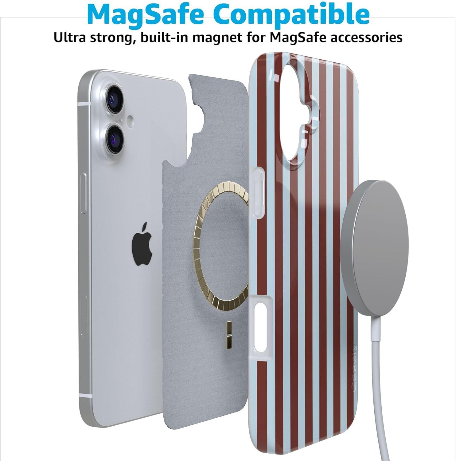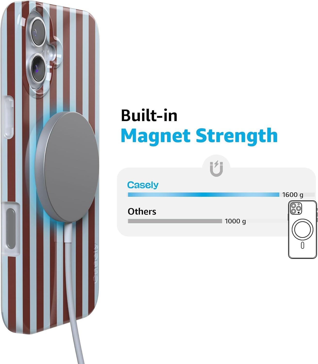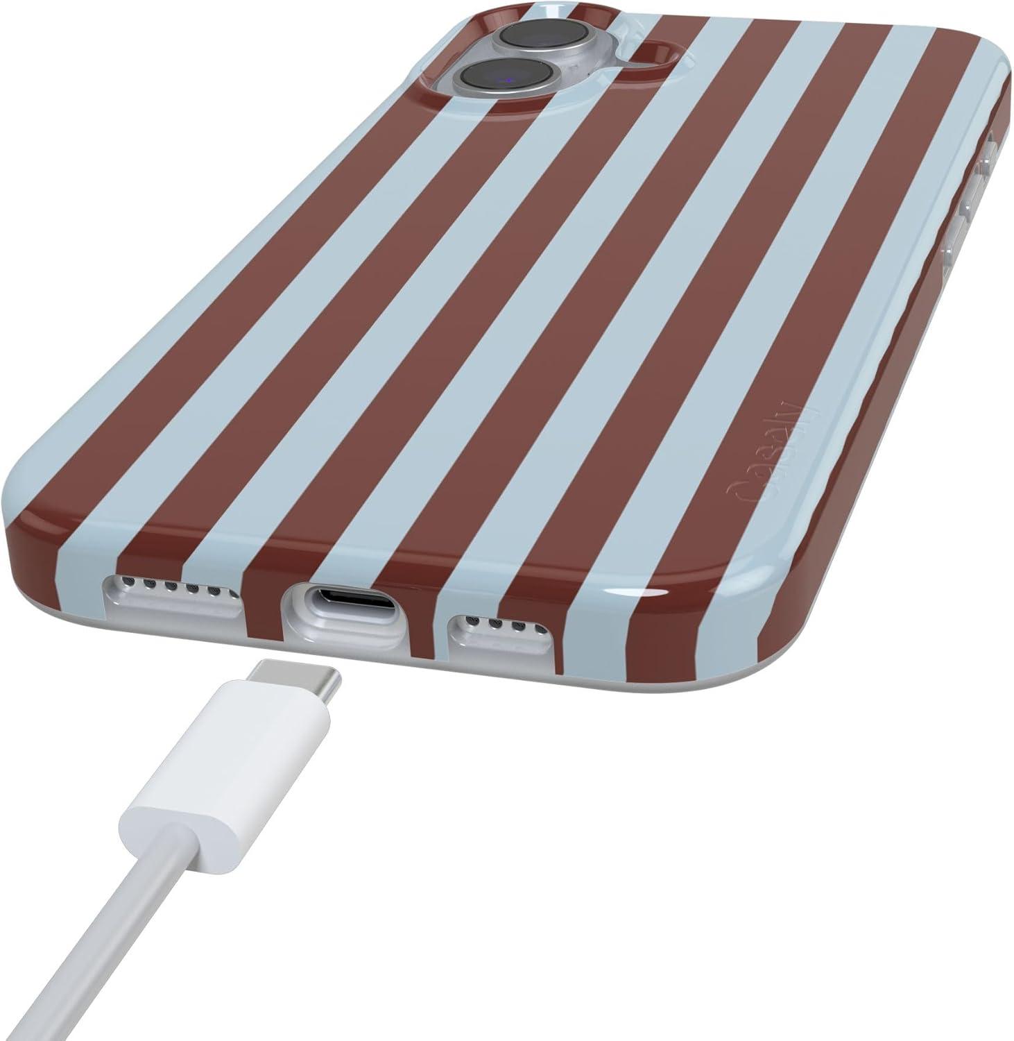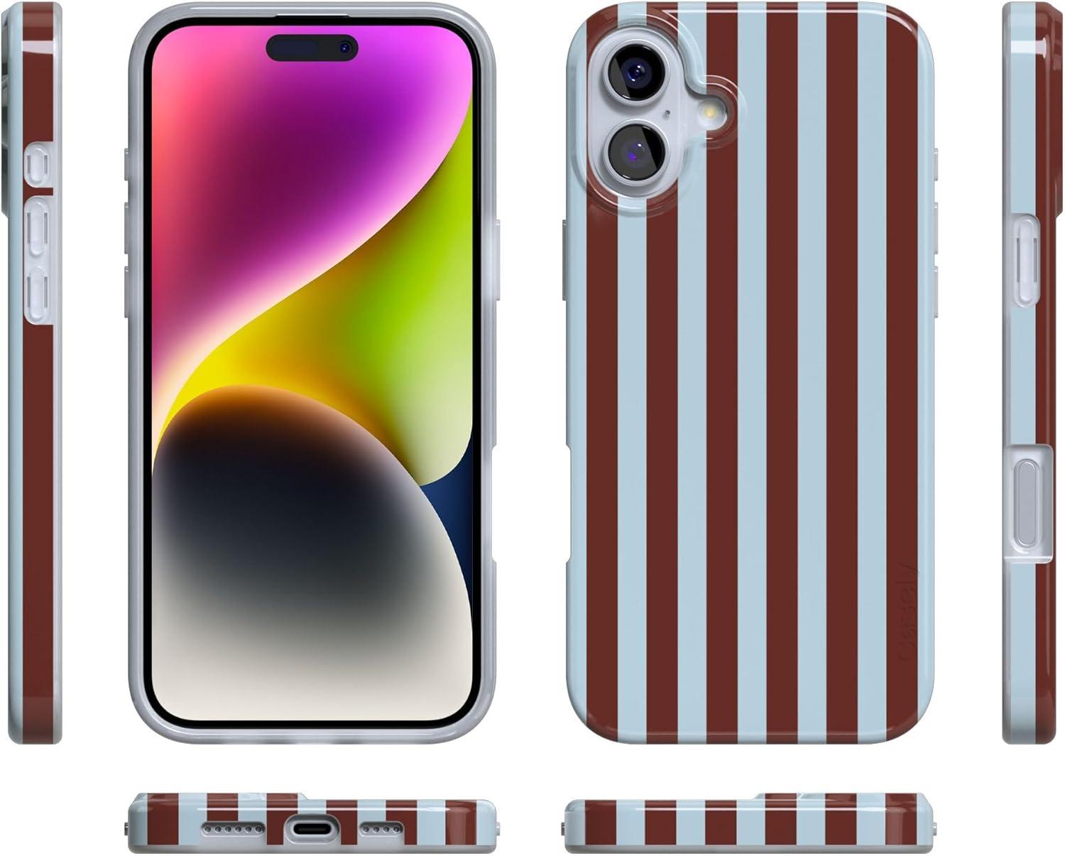 Casely iPhone 16 Plus Case | Tulip Tapestry | Jenna Palek x Casely | Compatible with MagSafe | Classic Ultra Thin Design(Sunday in Brooklyn | Blue Stripes)