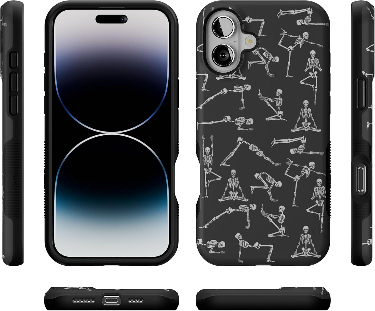Casely iPhone 16 Plus Case | Twilight Flora | Moody Monochrome | Bold Protective Design | Compatible with MagSafe(Corpse Pose | Skeleton Yoga)