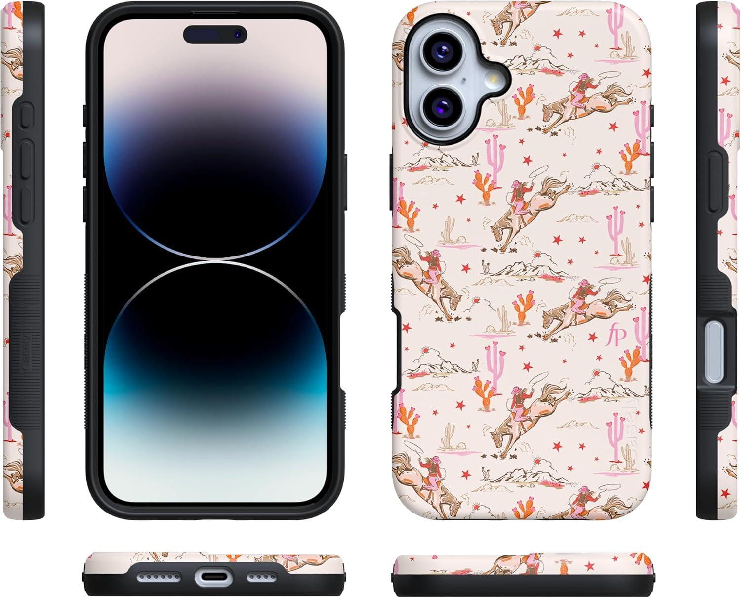 Casely iPhone 16 Plus Case | Twilight Flora | Moody Monochrome | Bold Protective Design | Compatible with MagSafe(Cowgirl Canyon | FashionPass)