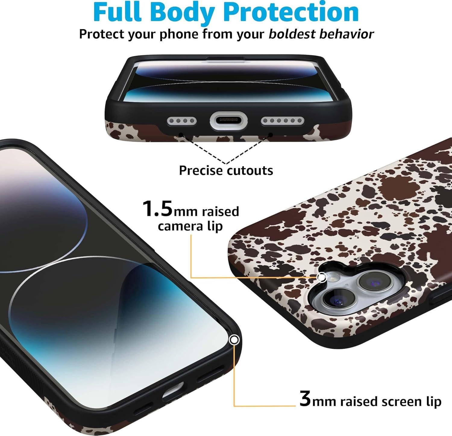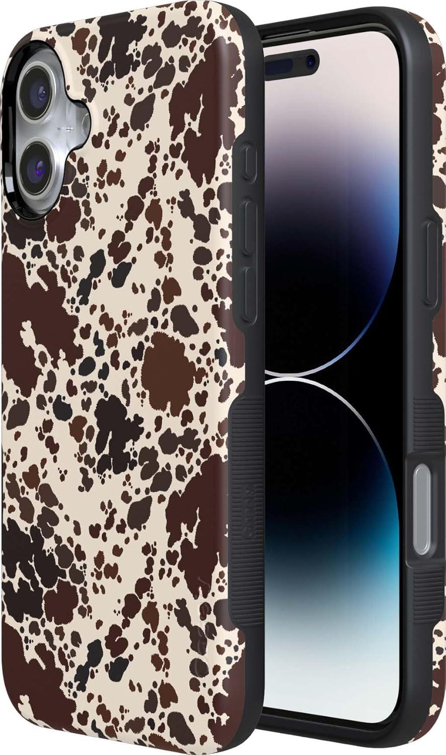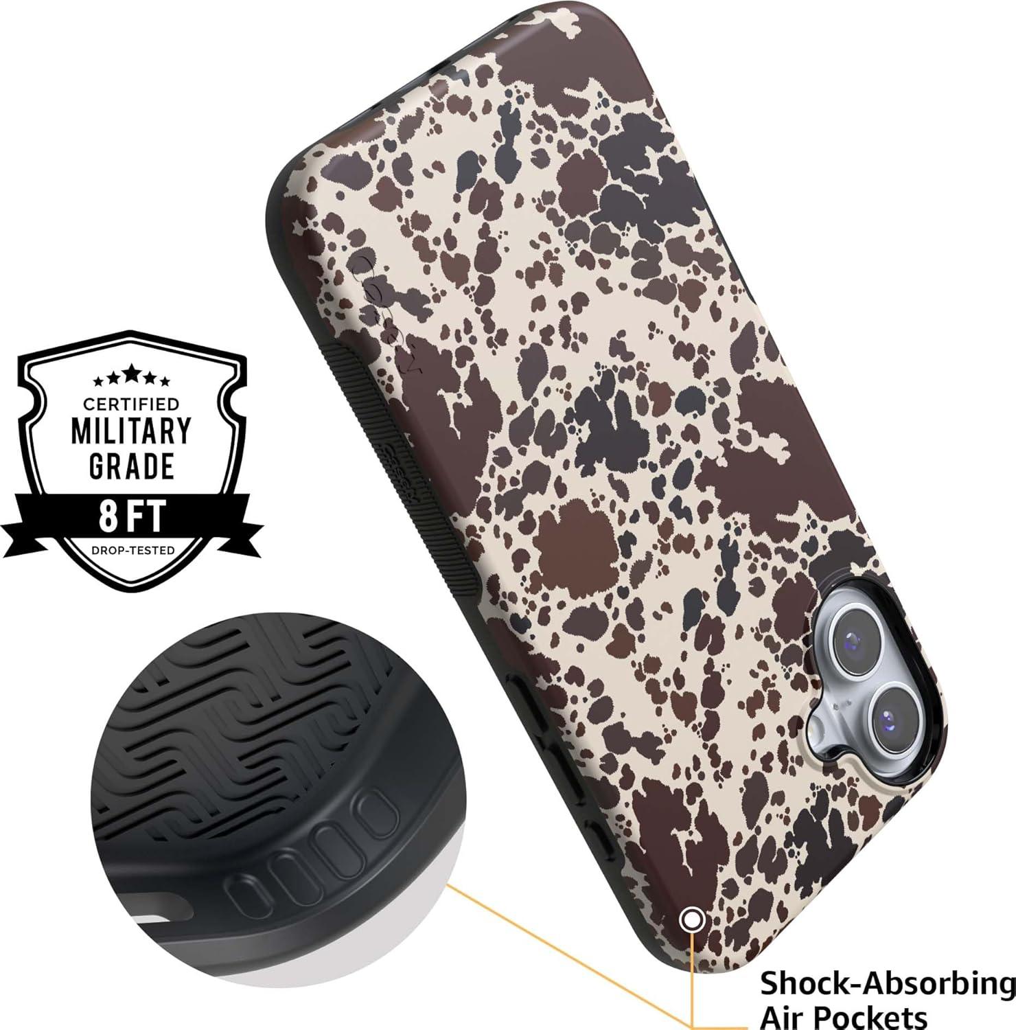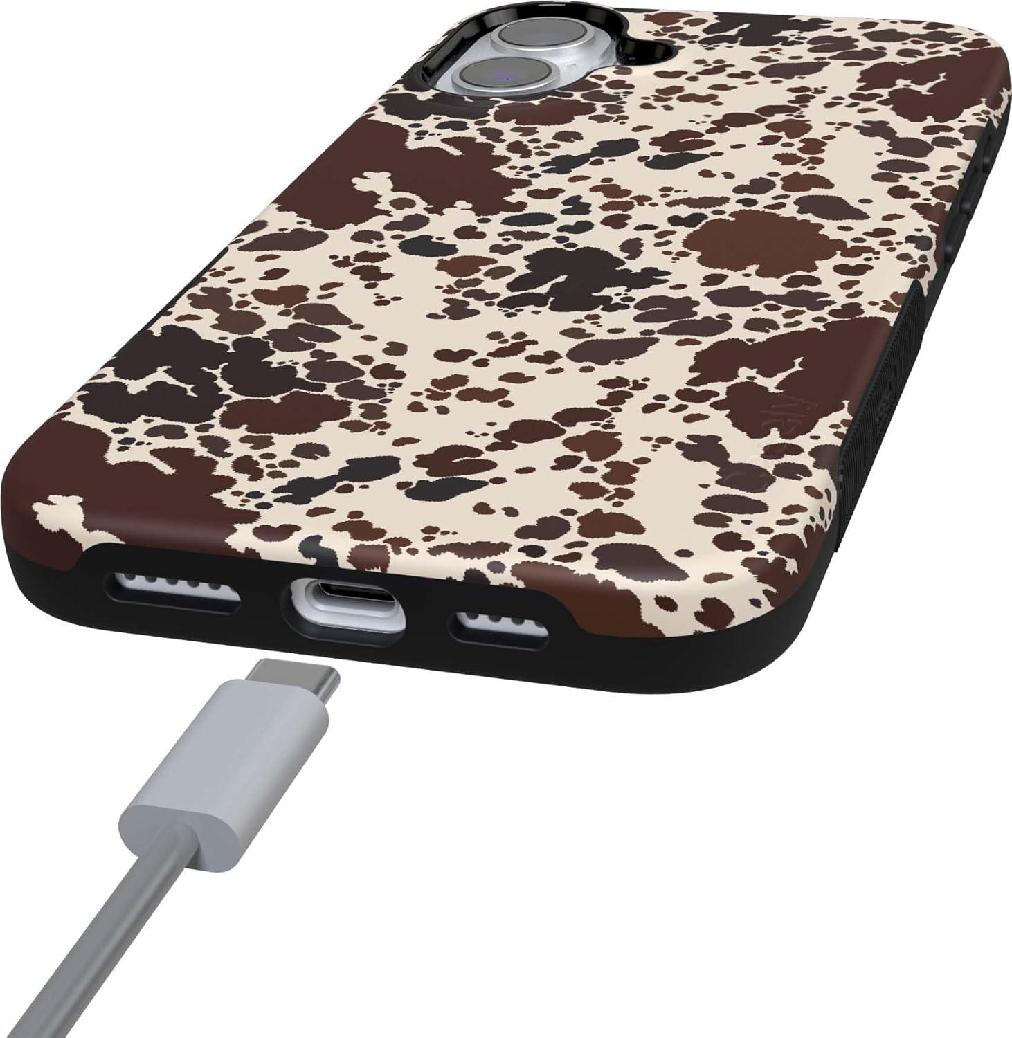 Casely iPhone 16 Plus Case | Twilight Flora | Moody Monochrome | Bold Protective Design | Compatible with MagSafe(Cowgirl Envy | Cow Print)