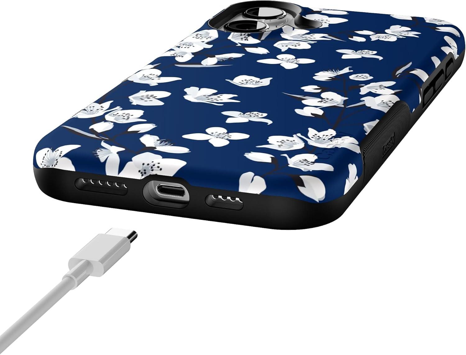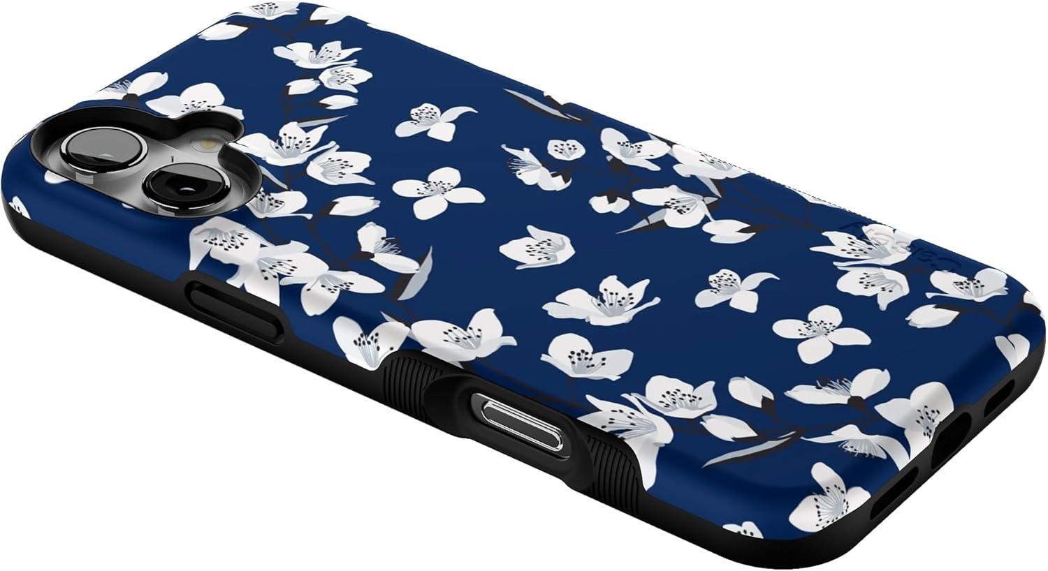 Casely iPhone 16 Plus Case | Twilight Flora | Moody Monochrome | Bold Protective Design | Compatible with MagSafe(Floral Forest | Navy Cherry Blossom)