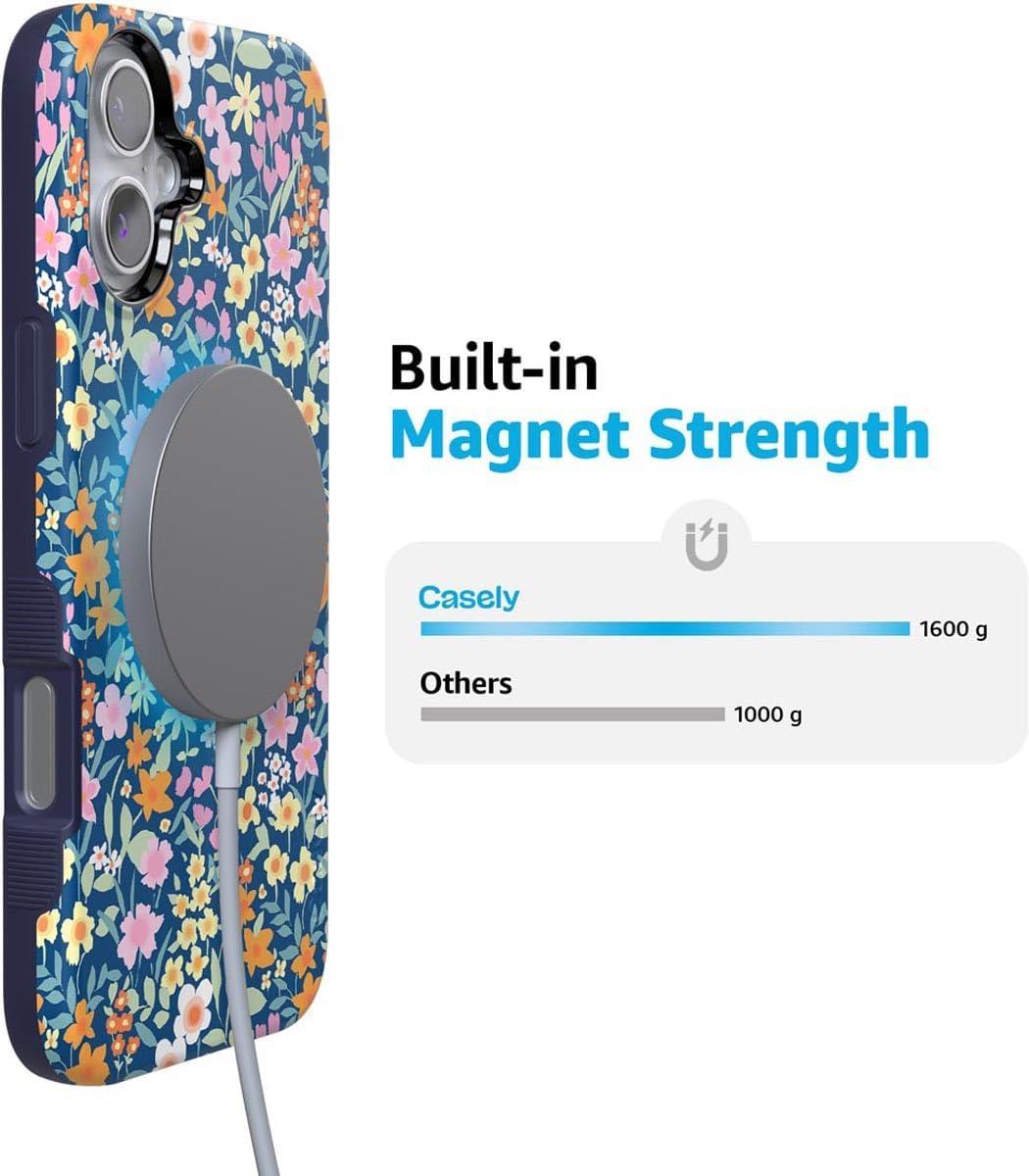Casely iPhone 16 Plus Case | Twilight Flora | Moody Monochrome | Bold Protective Design | Compatible with MagSafe(Full Bloom | Navy Floral)