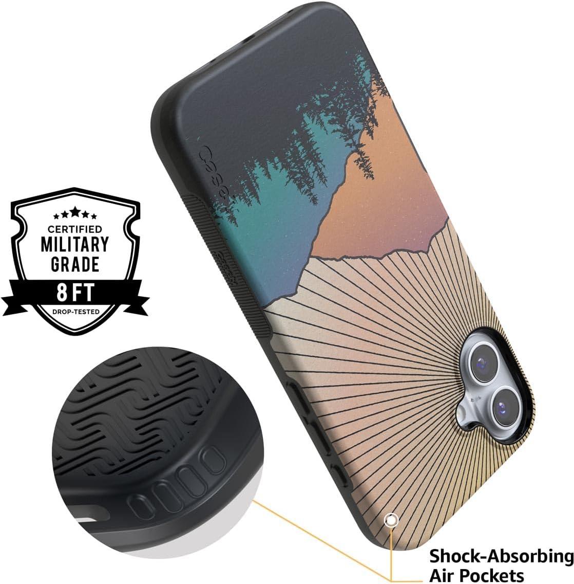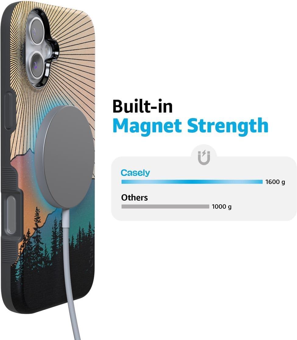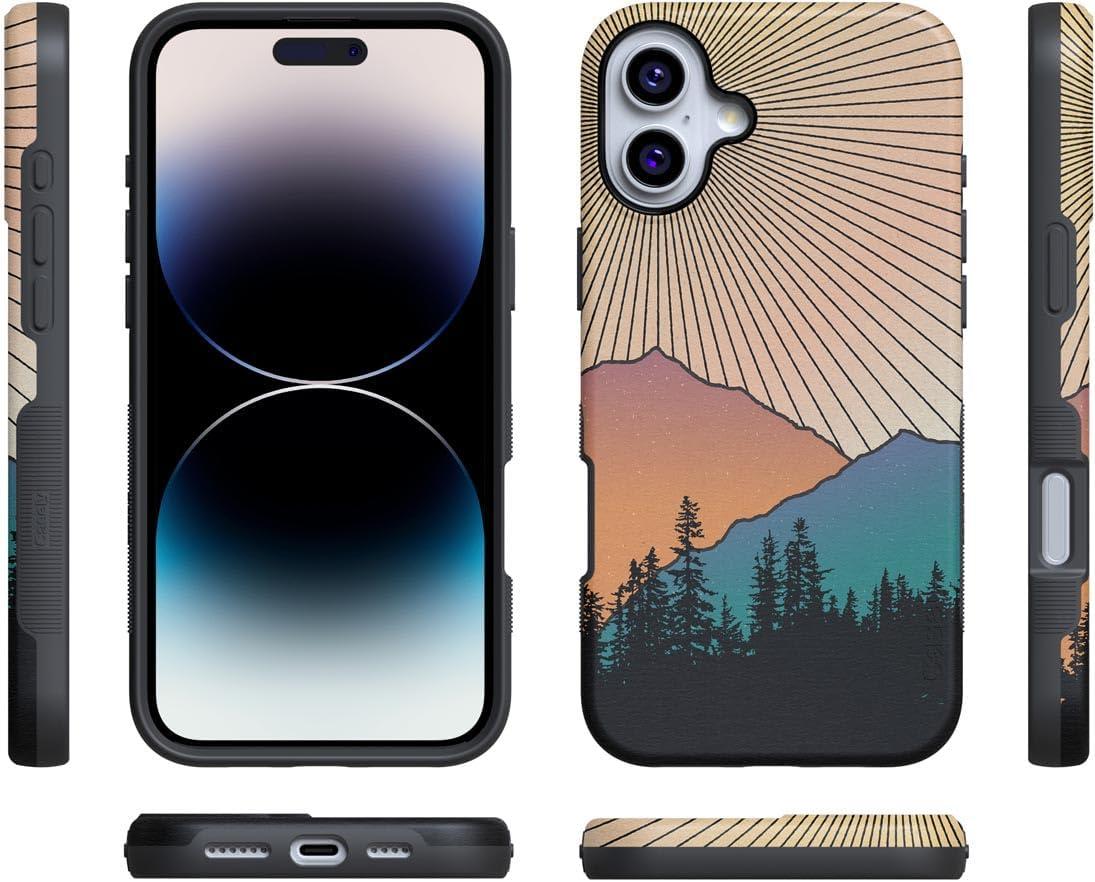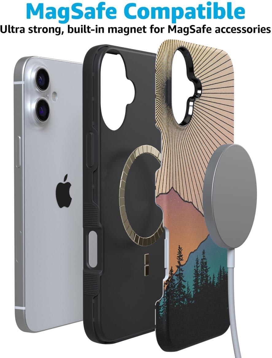 Casely iPhone 16 Plus Case | Twilight Flora | Moody Monochrome | Bold Protective Design | Compatible with MagSafe(Golden Hour | Mountain Sunset)