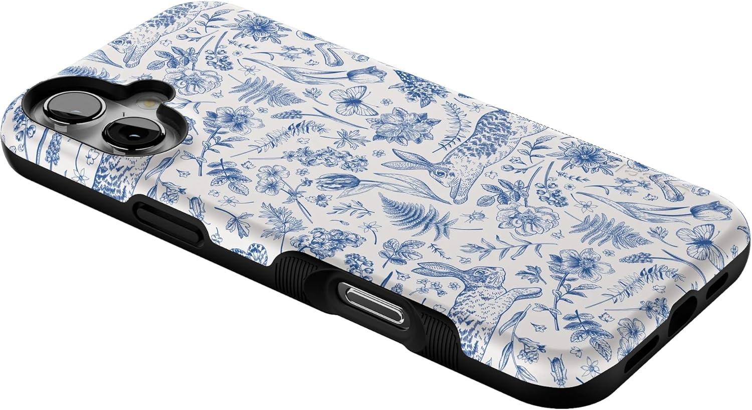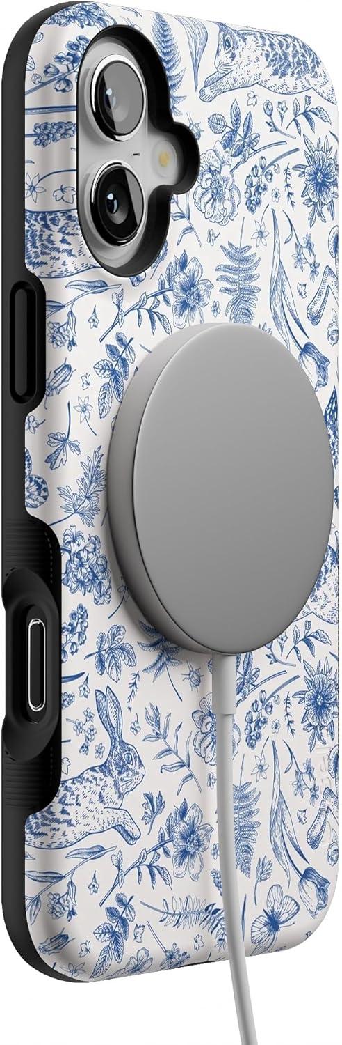 Casely iPhone 16 Plus Case | Twilight Flora | Moody Monochrome | Bold Protective Design | Compatible with MagSafe(Hop & Bloom | Bunny Toile)