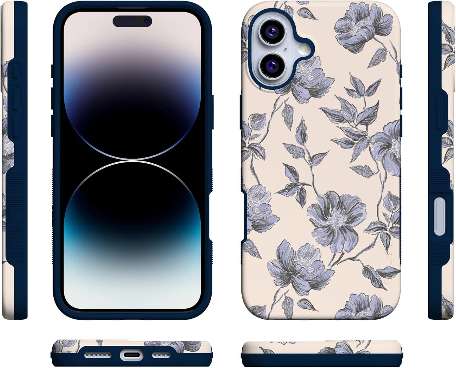Casely iPhone 16 Plus Case | Twilight Flora | Moody Monochrome | Bold Protective Design | Compatible with MagSafe(Ink & Iris | Vintage Floral)