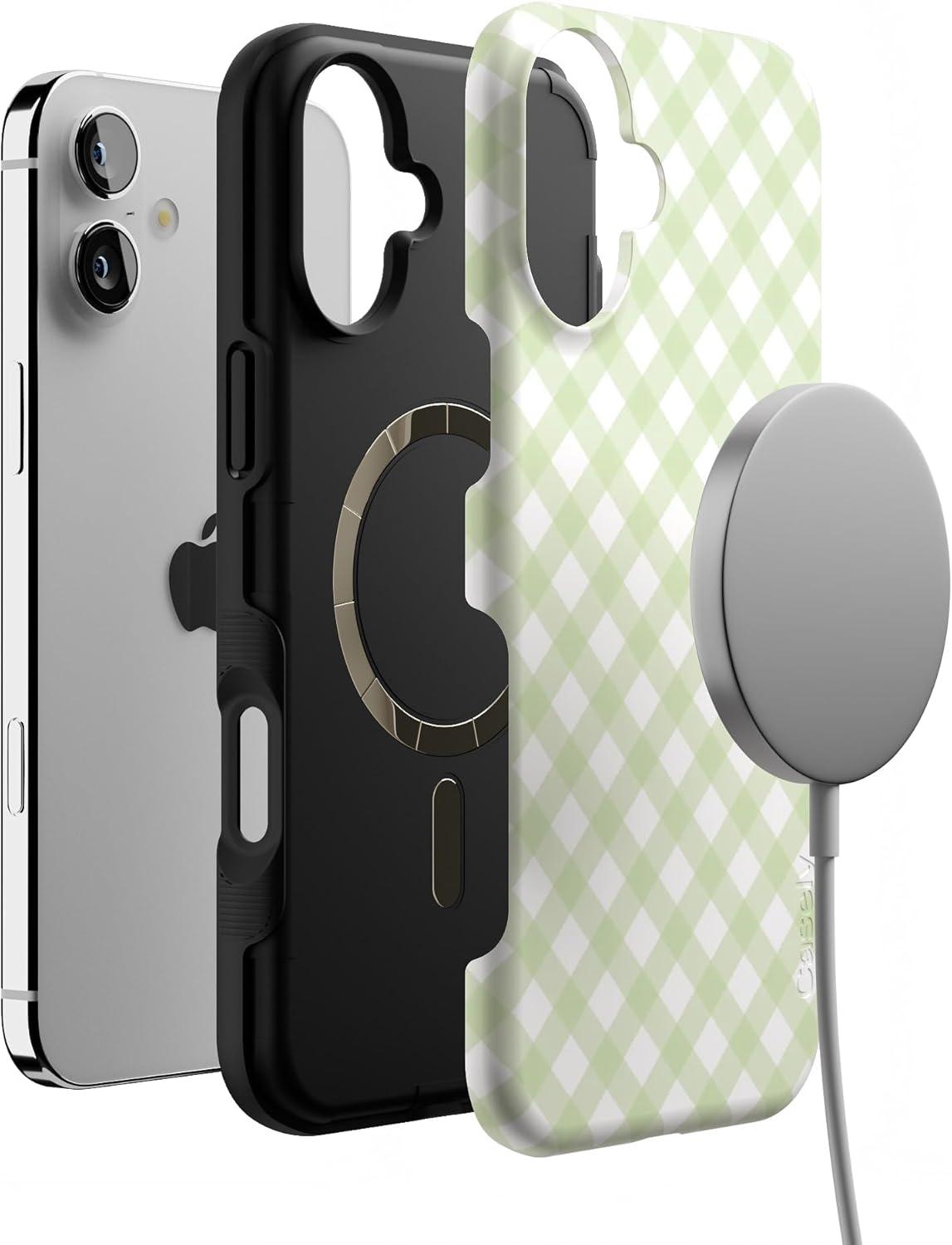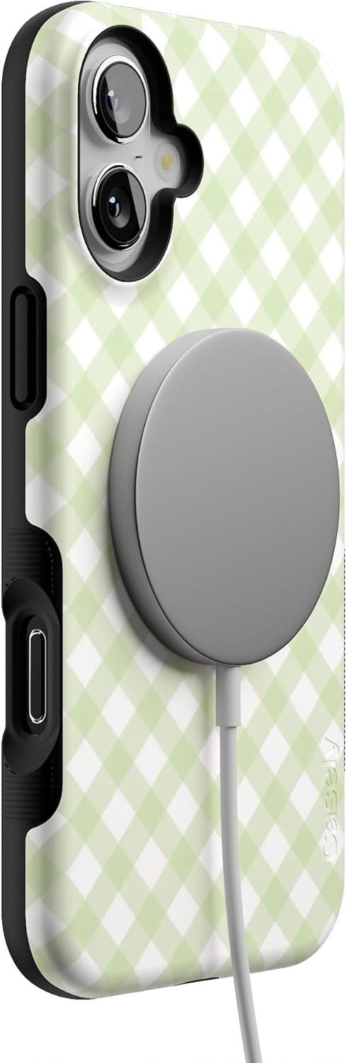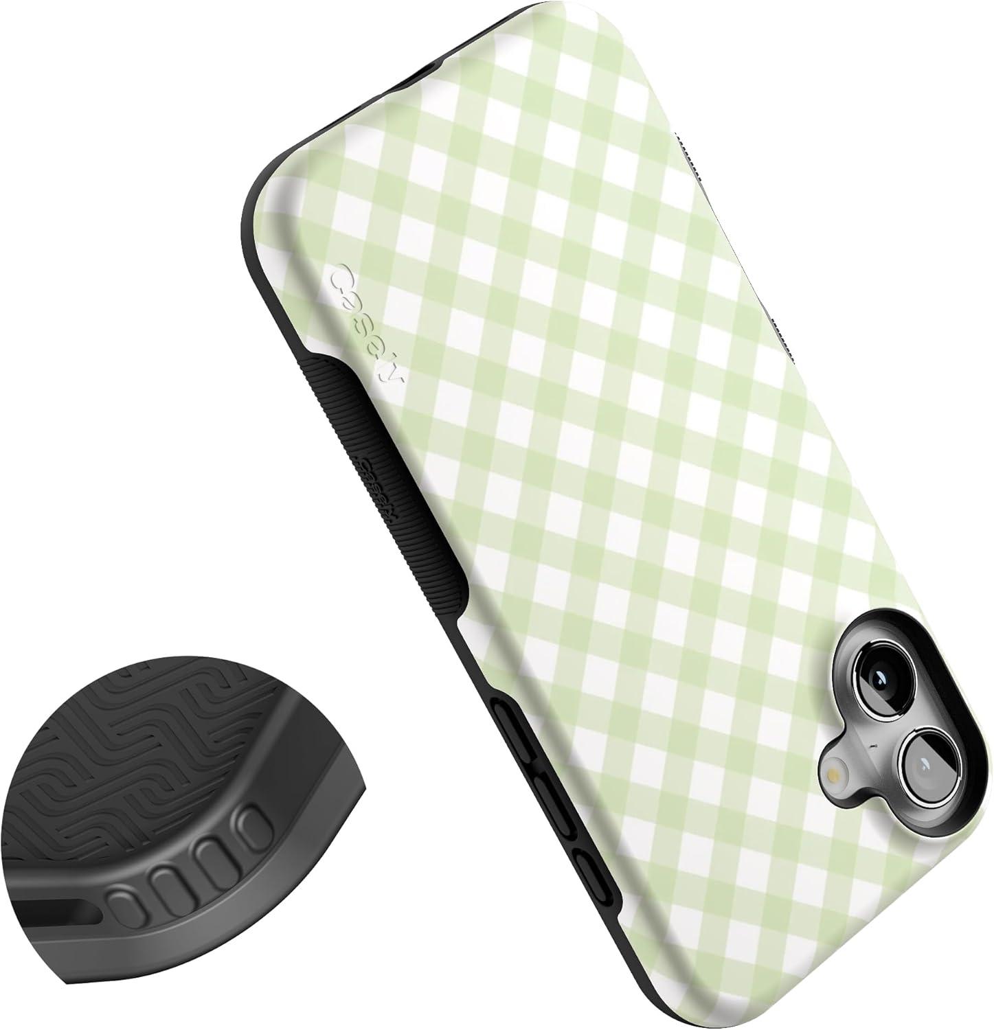 Casely iPhone 16 Plus Case | Twilight Flora | Moody Monochrome | Bold Protective Design | Compatible with MagSafe(Mint Lattice | Sunday Best | Green Gingham)