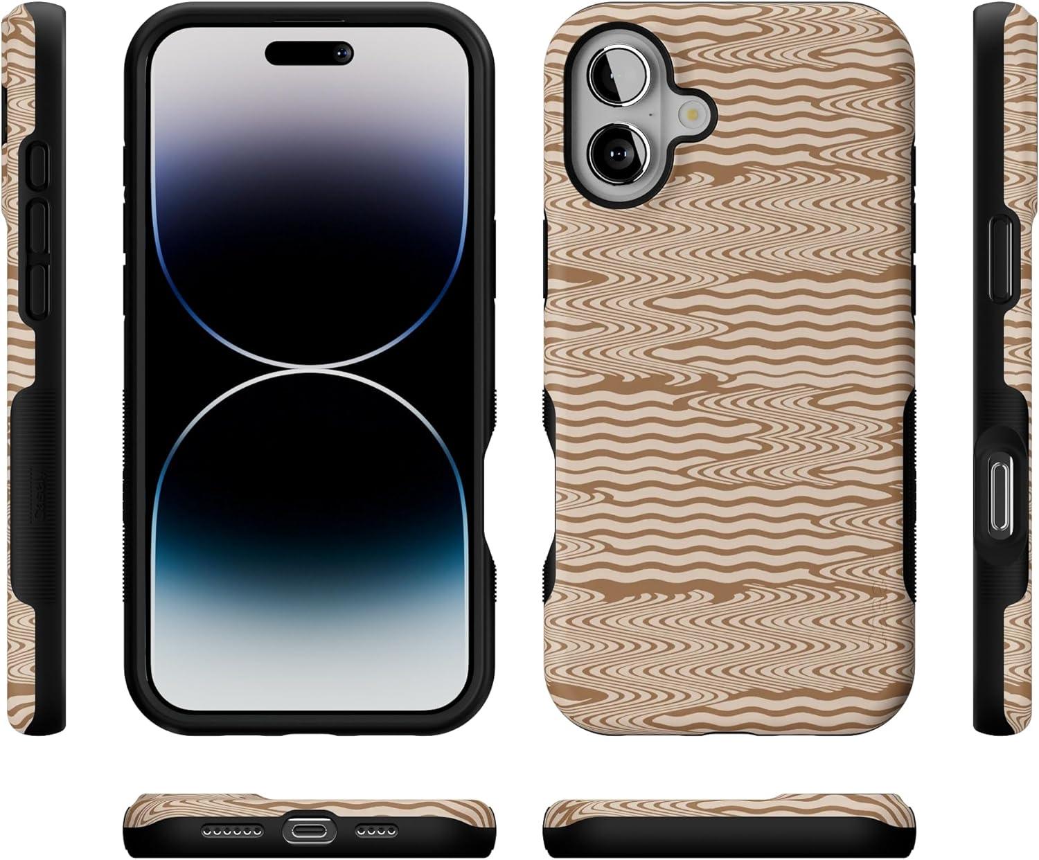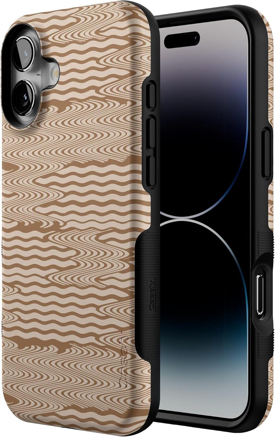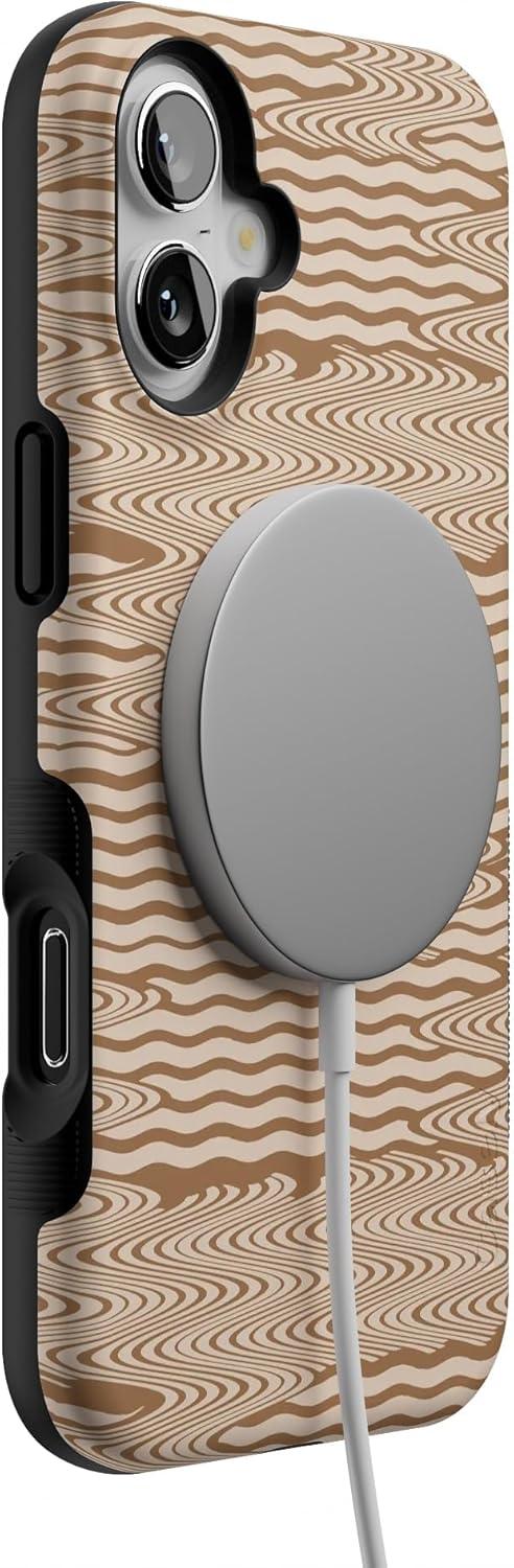 Casely iPhone 16 Plus Case | Twilight Flora | Moody Monochrome | Bold Protective Design | Compatible with MagSafe(Mocha Ripple | Brown Waves)