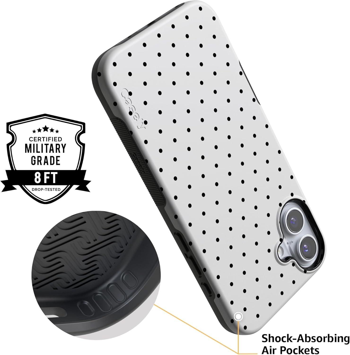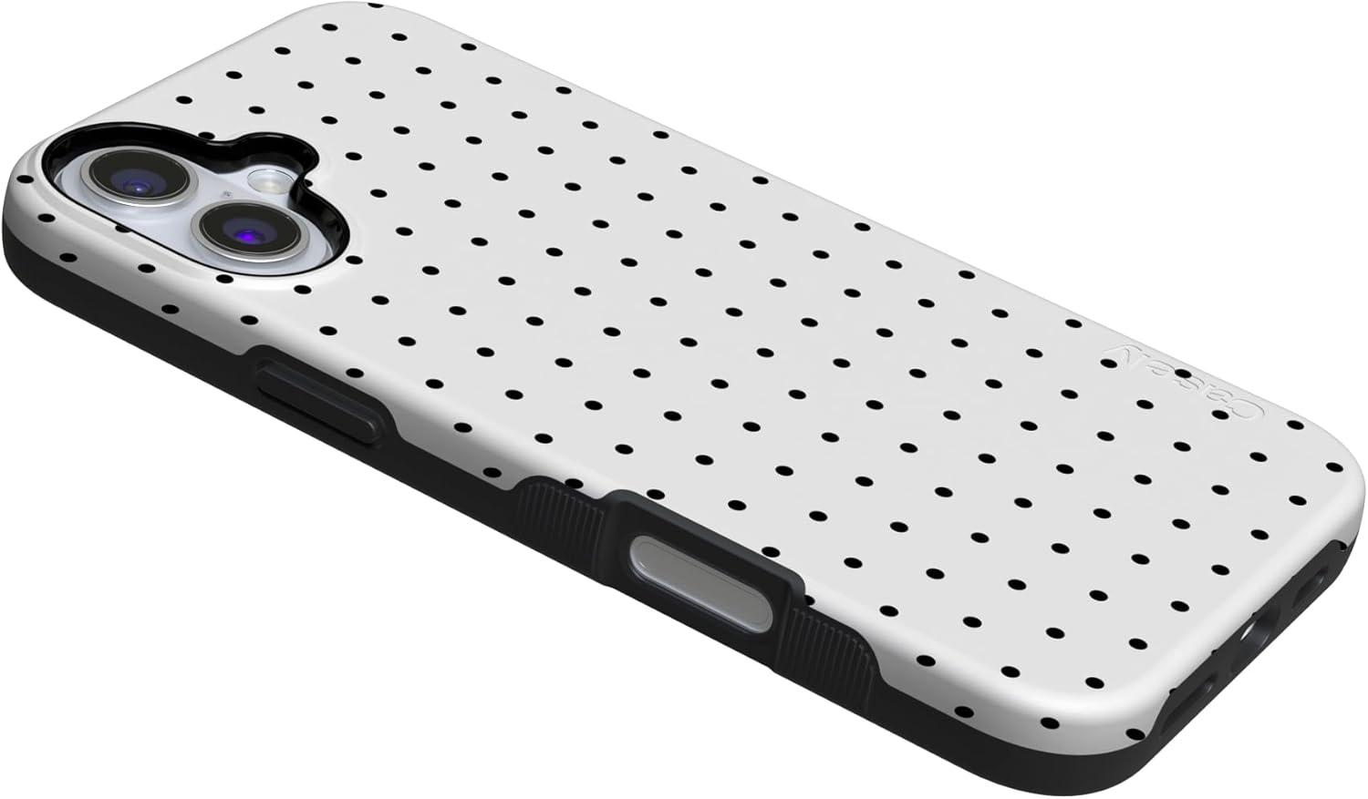 Casely iPhone 16 Plus Case | Twilight Flora | Moody Monochrome | Bold Protective Design | Compatible with MagSafe(On the Dot | White Polka Dot)