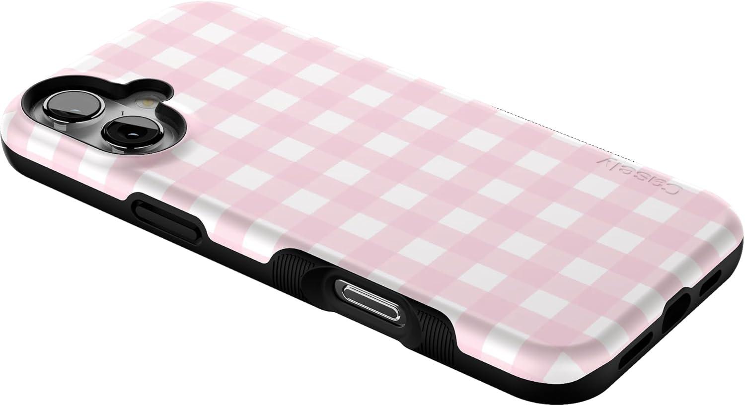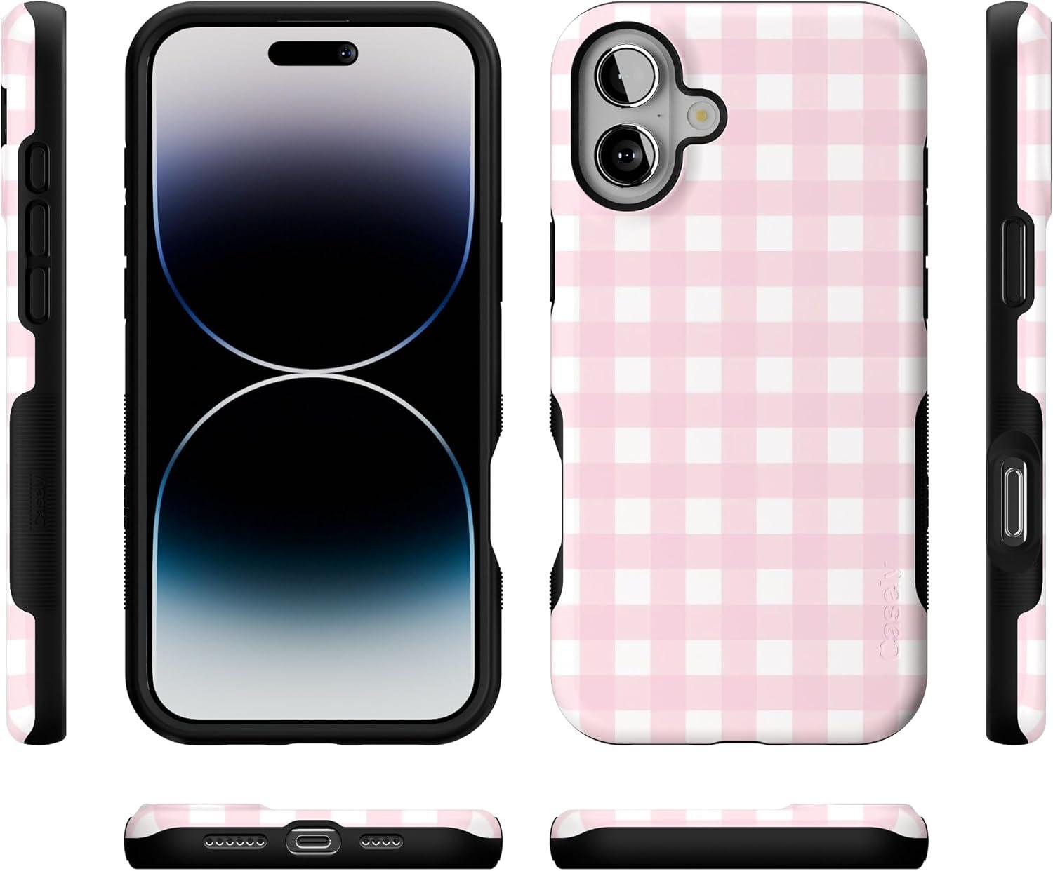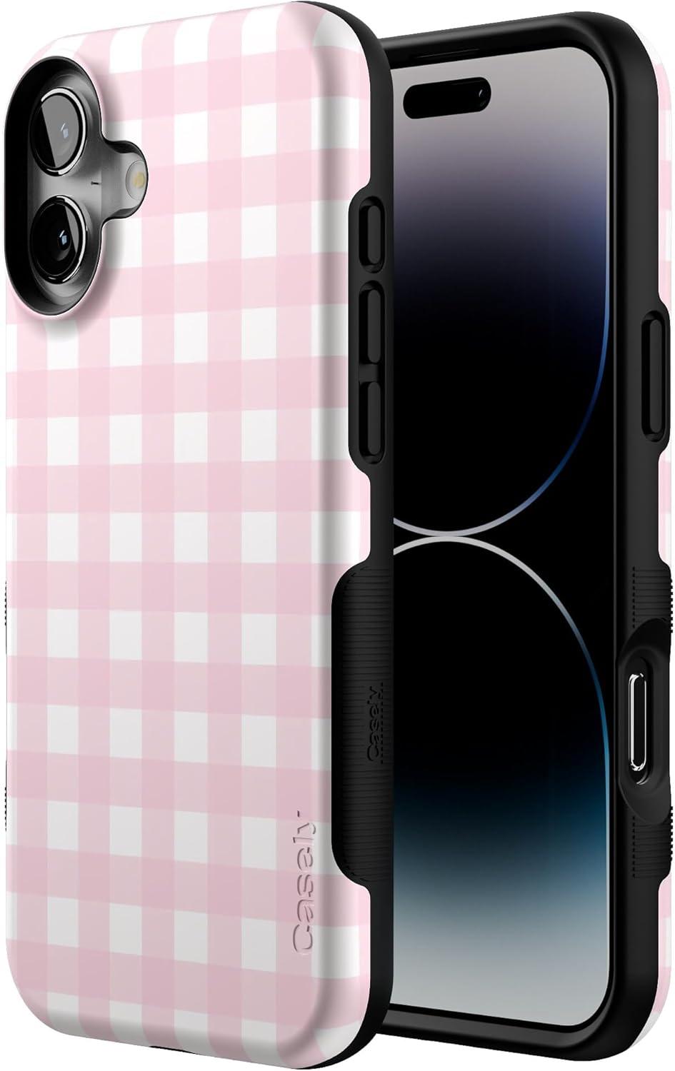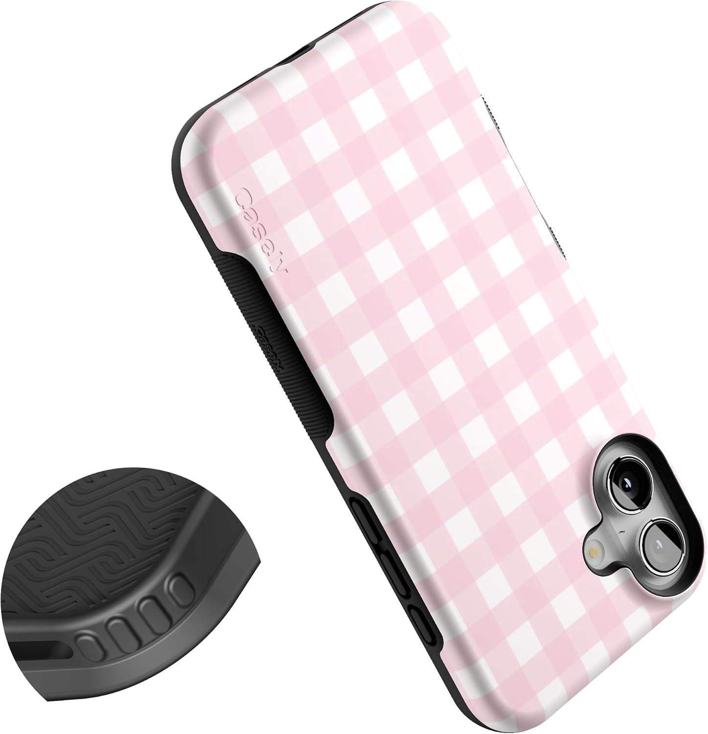 Casely iPhone 16 Plus Case | Twilight Flora | Moody Monochrome | Bold Protective Design | Compatible with MagSafe(Pink Plaid | Sunday Best)