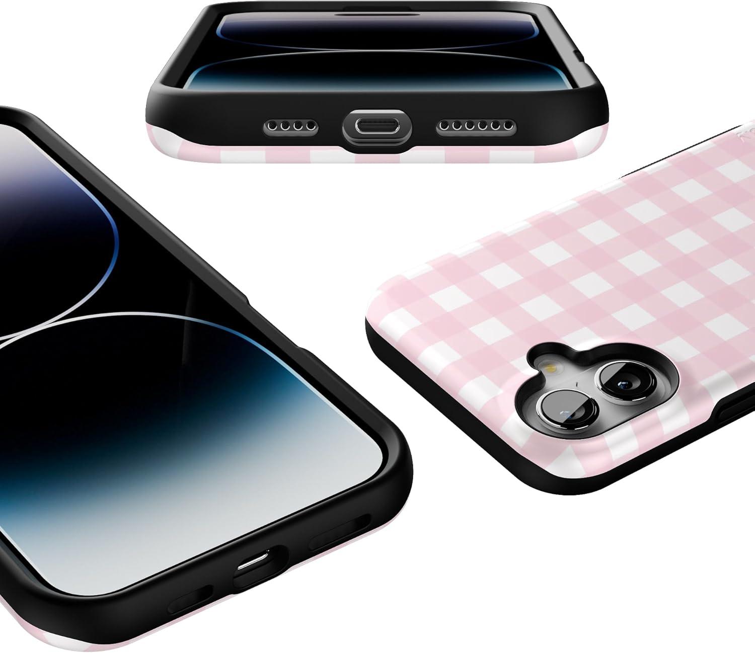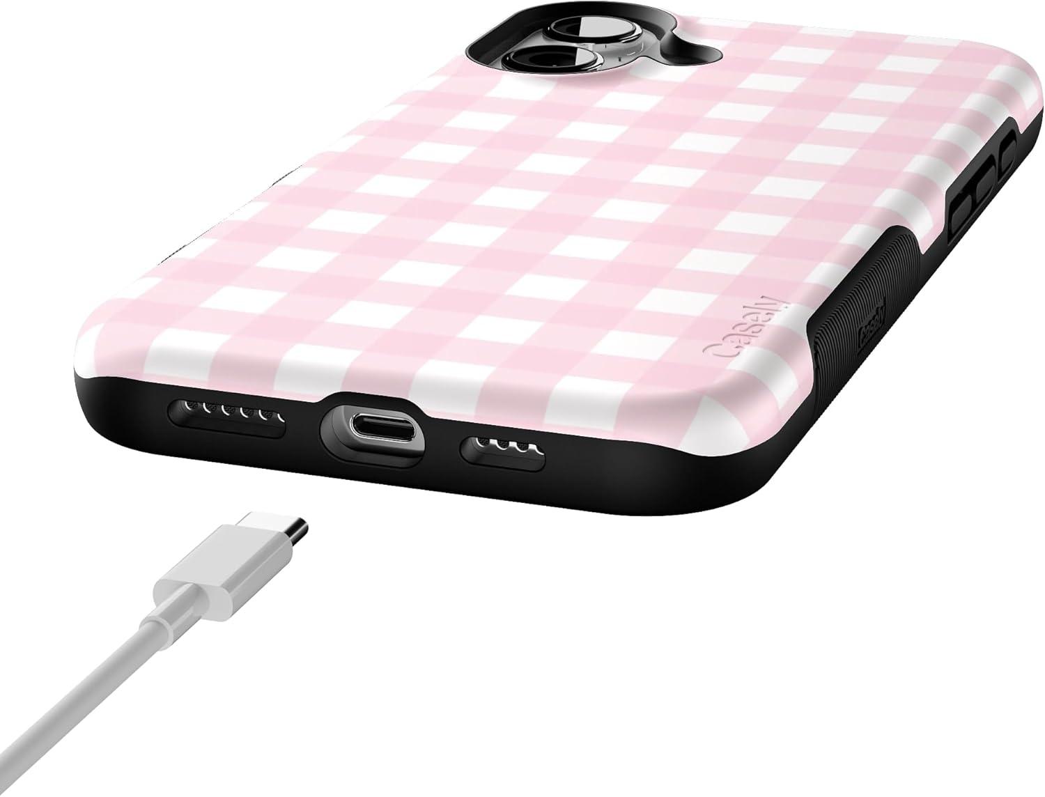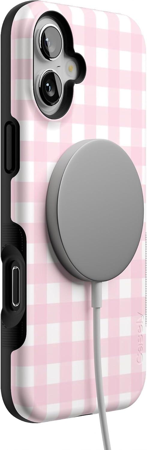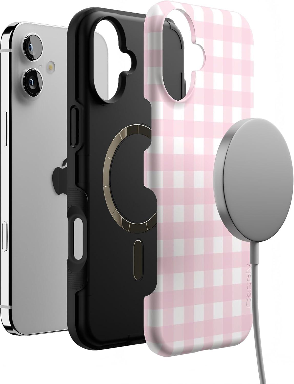 Casely iPhone 16 Plus Case | Twilight Flora | Moody Monochrome | Bold Protective Design | Compatible with MagSafe(Pink Plaid | Sunday Best)