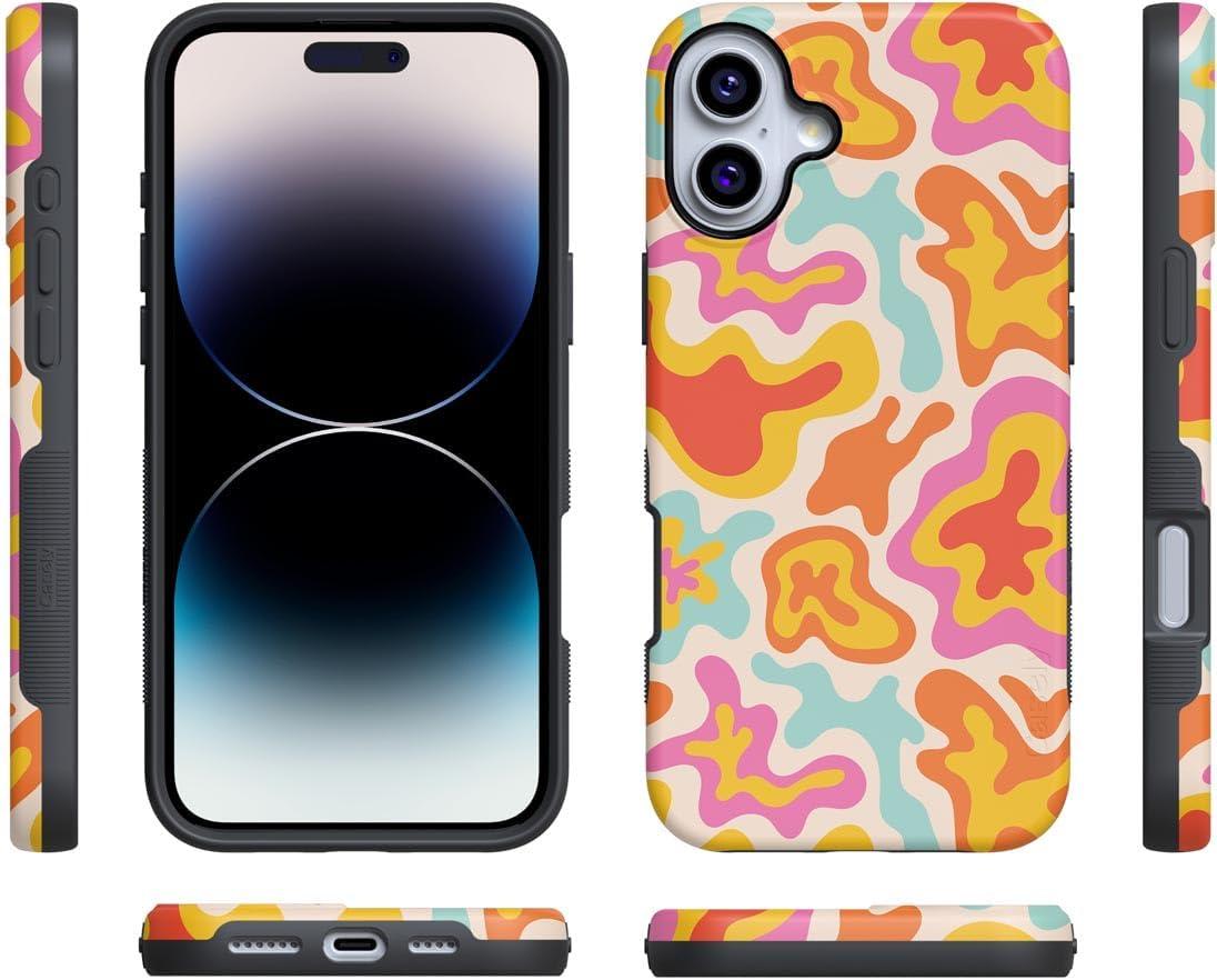 Casely iPhone 16 Plus Case | Twilight Flora | Moody Monochrome | Bold Protective Design | Compatible with MagSafe(Tropical Color Splash | Abstract Retro)