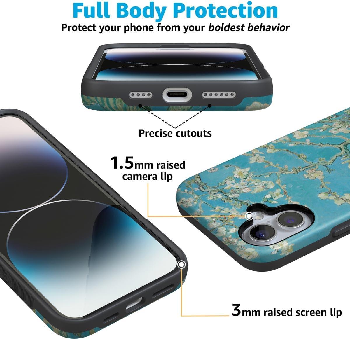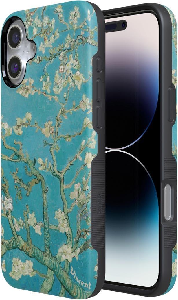Casely iPhone 16 Plus Case | Twilight Flora | Moody Monochrome | Bold Protective Design | Compatible with MagSafe(Van Gogh | Almond Blossom Floral)