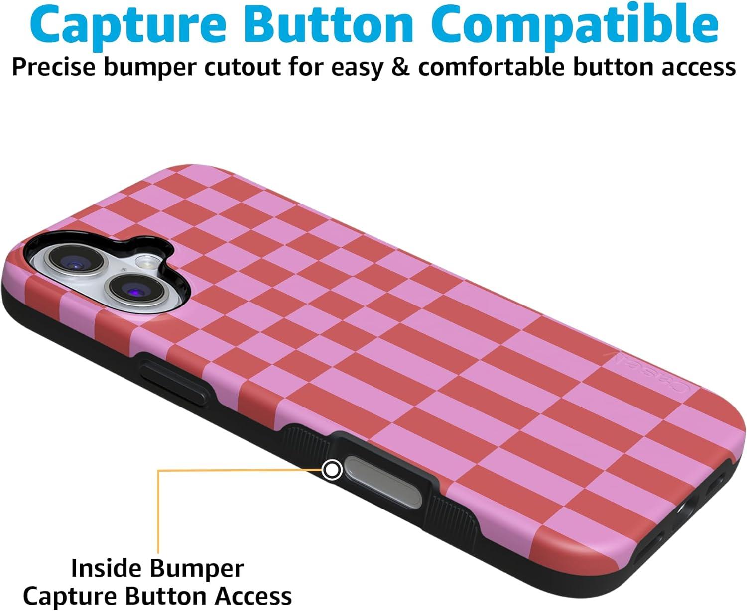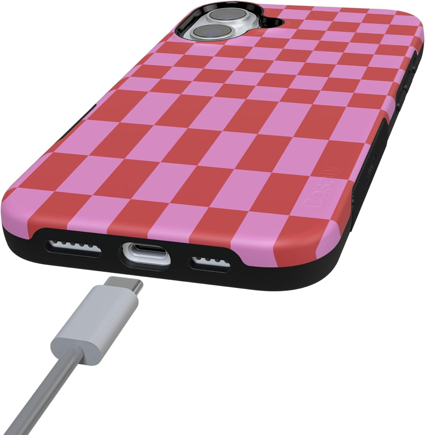 Casely iPhone 16 Plus Case | Twilight Flora | Moody Monochrome | Bold Protective Design | Compatible with MagSafe(Vibe Check | Pink Checkerboard)