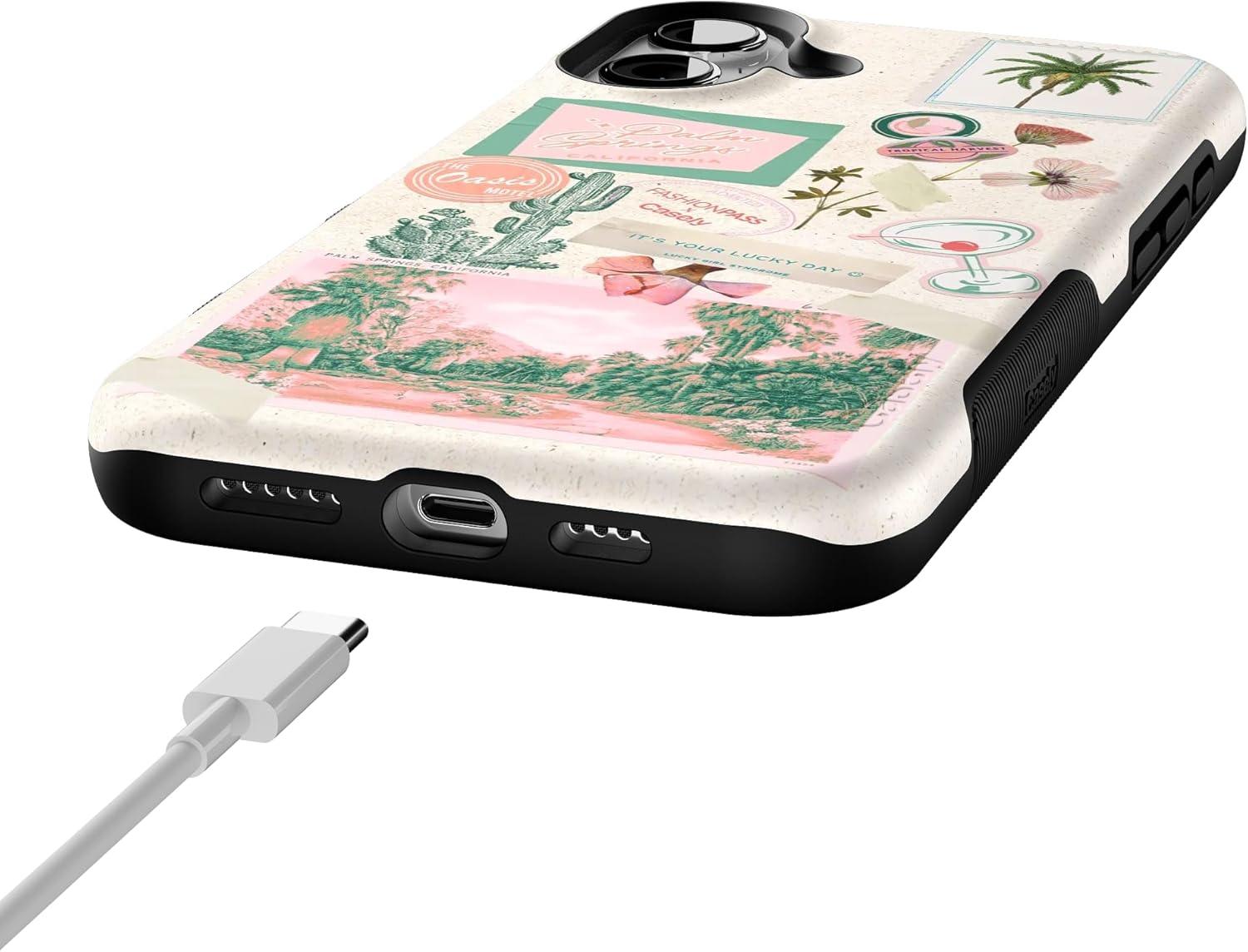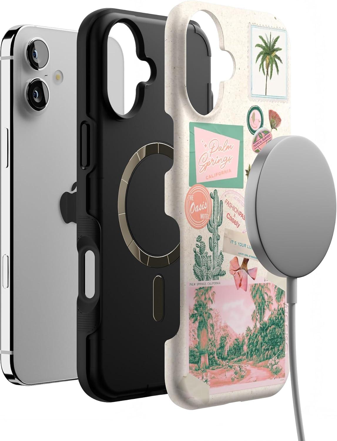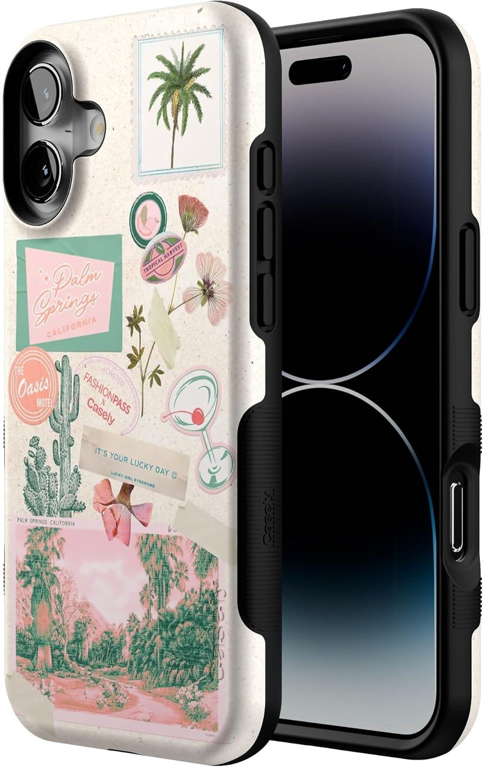 Casely iPhone 16 Plus Case | Twilight Flora | Moody Monochrome | Bold Protective Design | Compatible with MagSafe(Vintage Vacay | FashionPass)