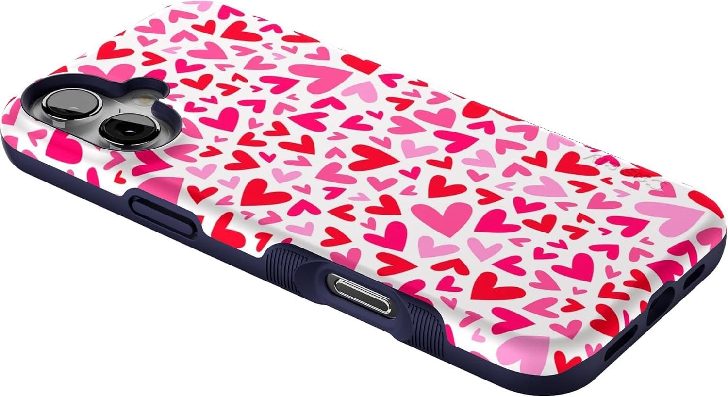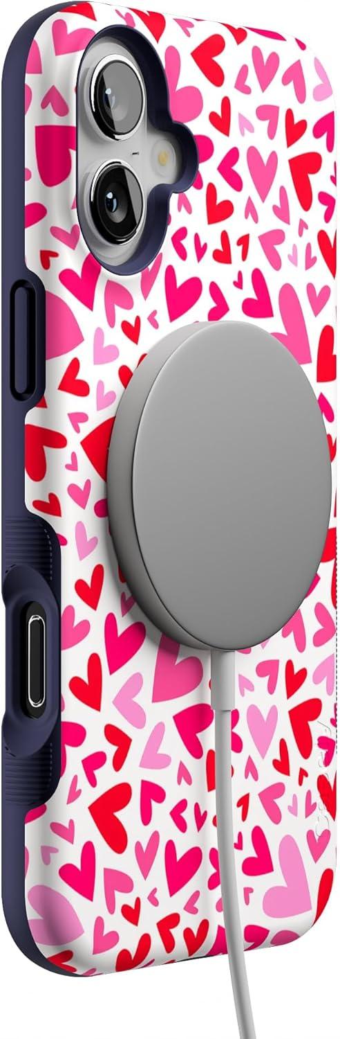 Casely iPhone 16 Plus Case | Twilight Flora | Moody Monochrome | Bold Protective Design | Compatible with MagSafe(XOXO | Pink Candy Hearts)