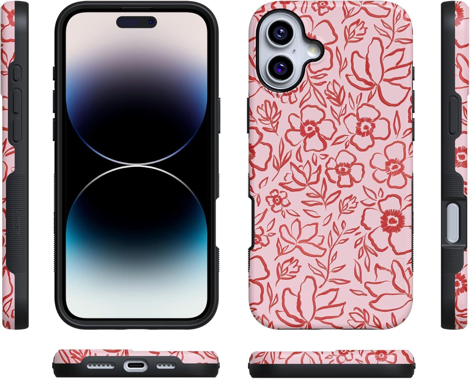Casely iPhone 16 Plus Case | Van Gogh | Skull of a Skeleton with Burning Cigarette | Bold Protective Design | Compatible with MagSafe(Blush Garden | Floral Doodle)