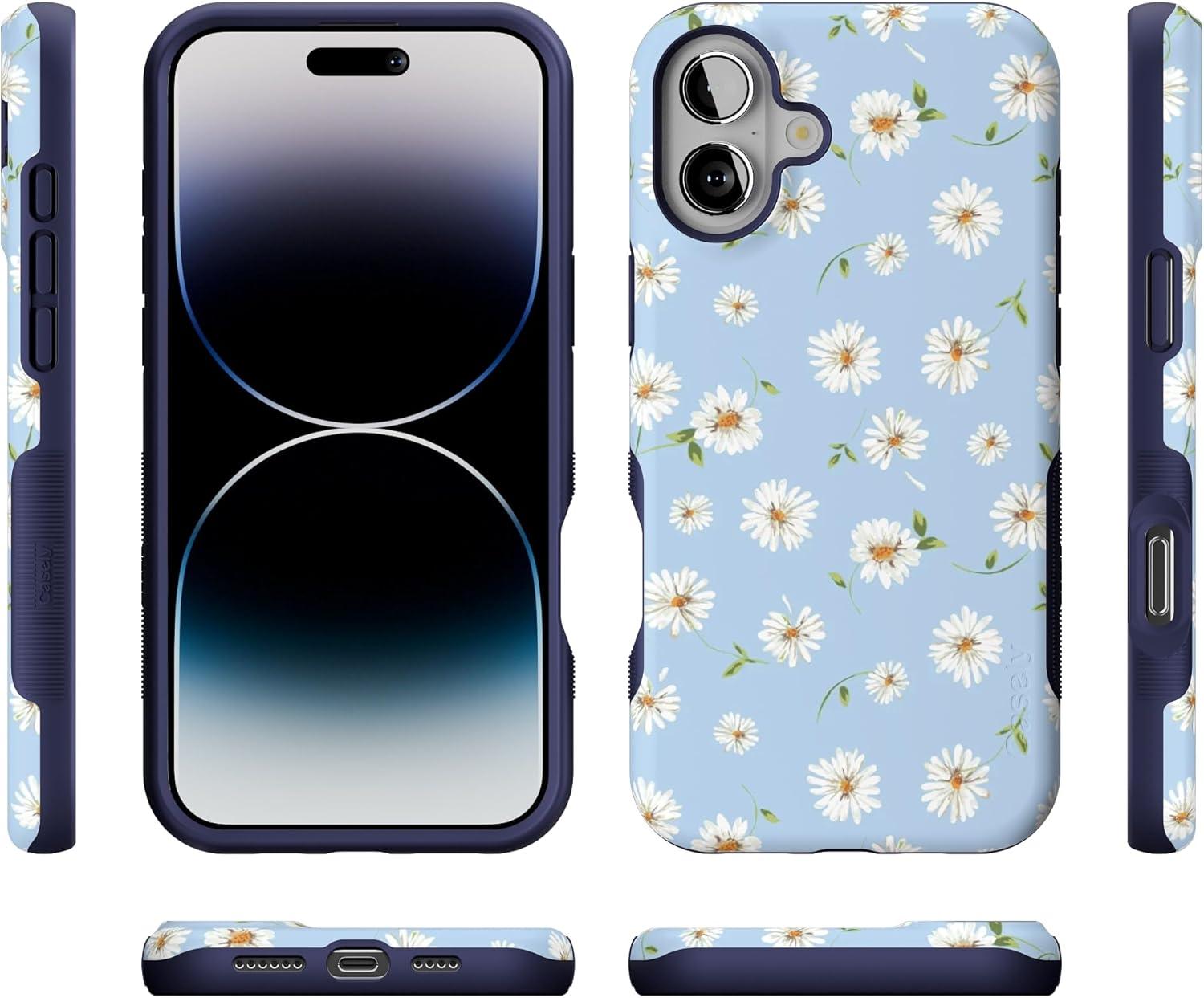 Casely iPhone 16 Plus Case | Van Gogh | Skull of a Skeleton with Burning Cigarette | Bold Protective Design | Compatible with MagSafe(Daisy Daydream | Baby Blue Floral)