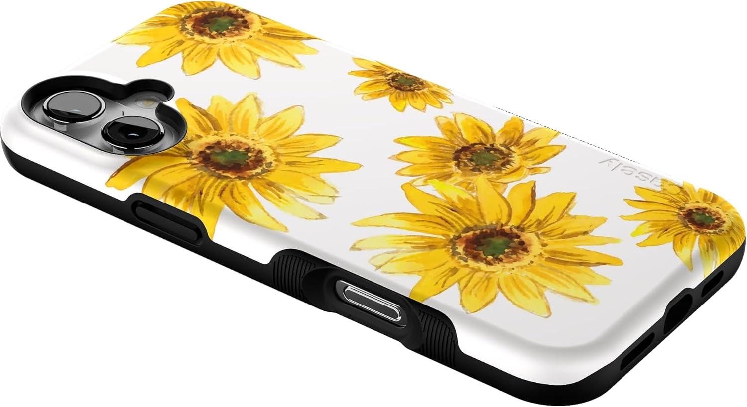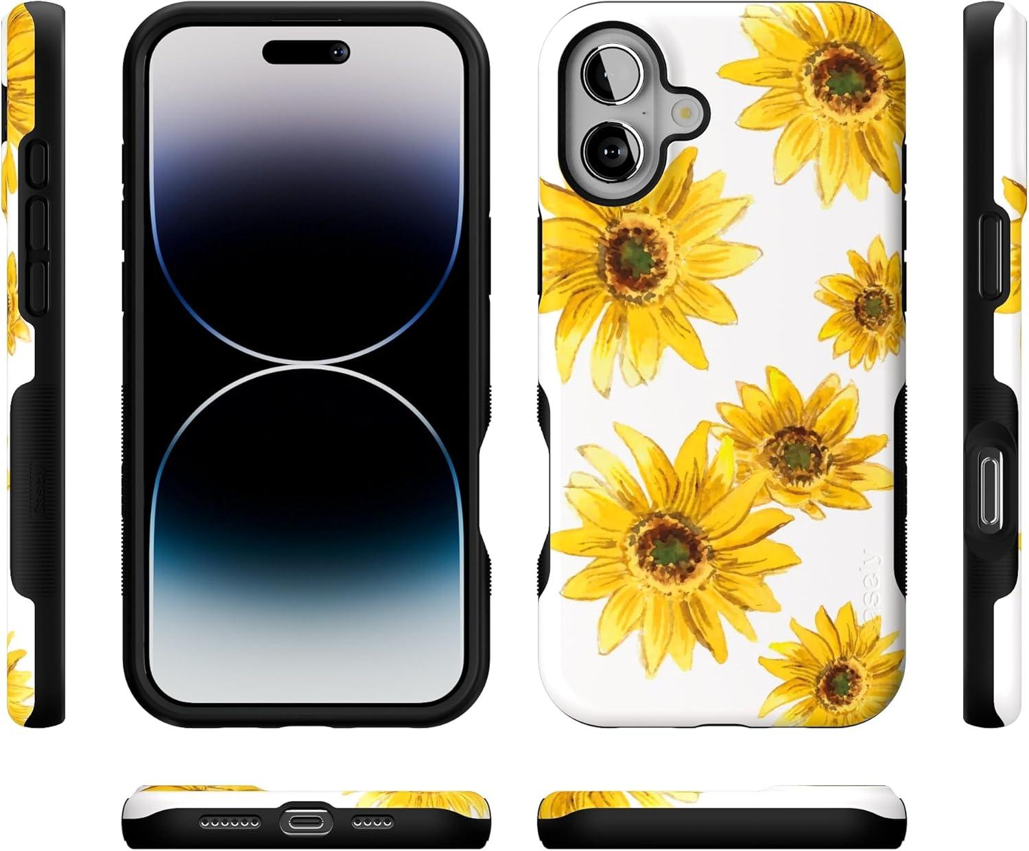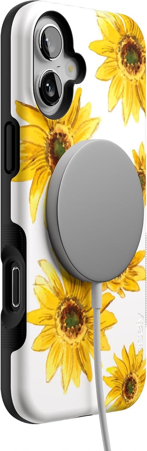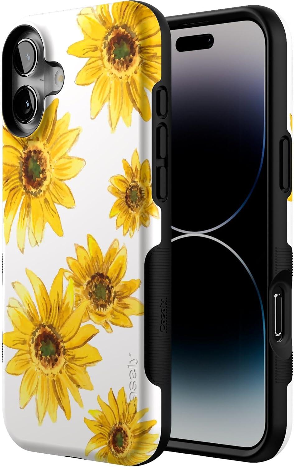 Casely iPhone 16 Plus Case | Van Gogh | Skull of a Skeleton with Burning Cigarette | Bold Protective Design | Compatible with MagSafe(Golden Garden | Yellow Sunflower Floral)