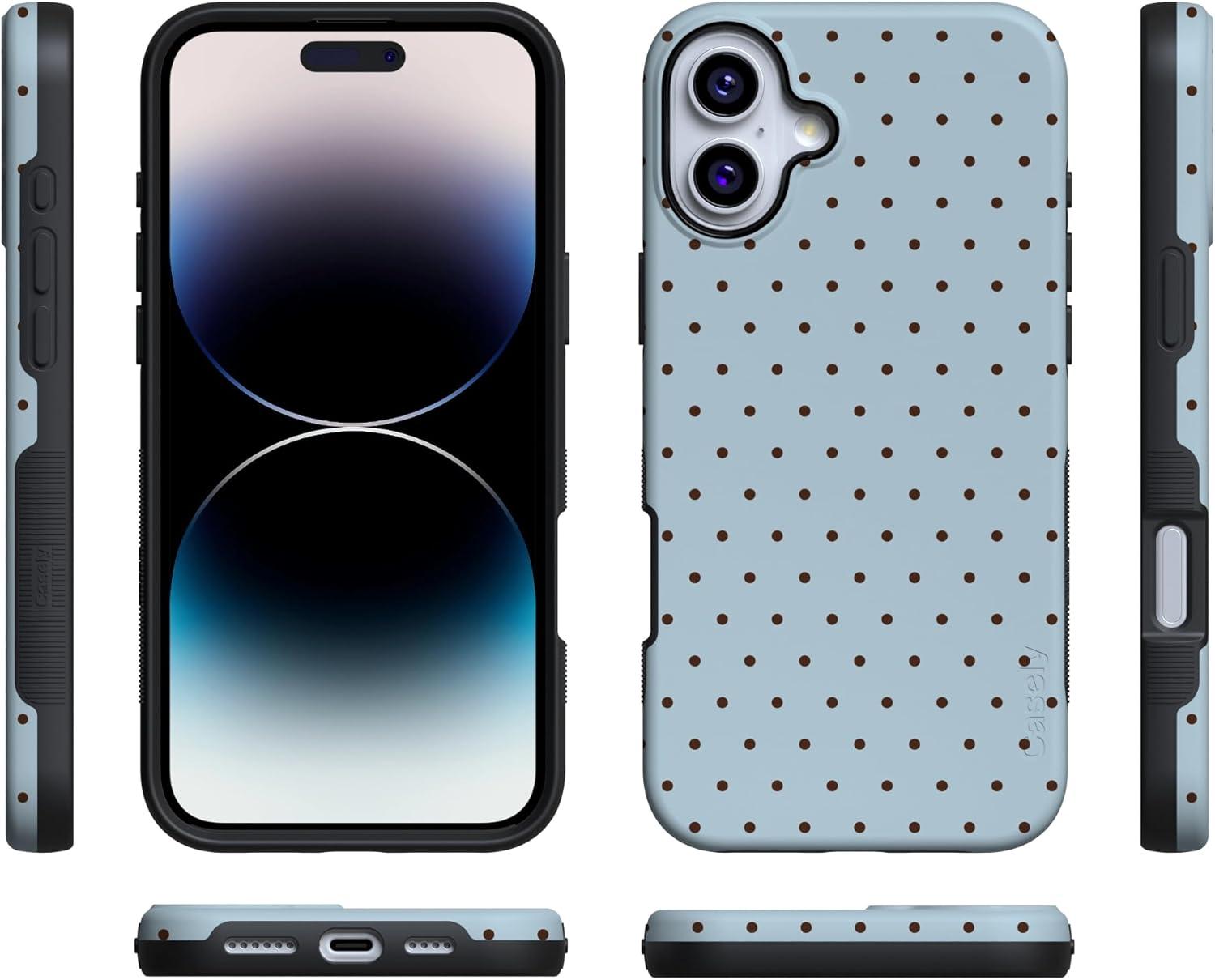 Casely iPhone 16 Plus Case | Van Gogh | Skull of a Skeleton with Burning Cigarette | Bold Protective Design | Compatible with MagSafe(On the Dot | Blue Polka Dot)