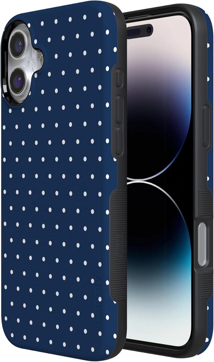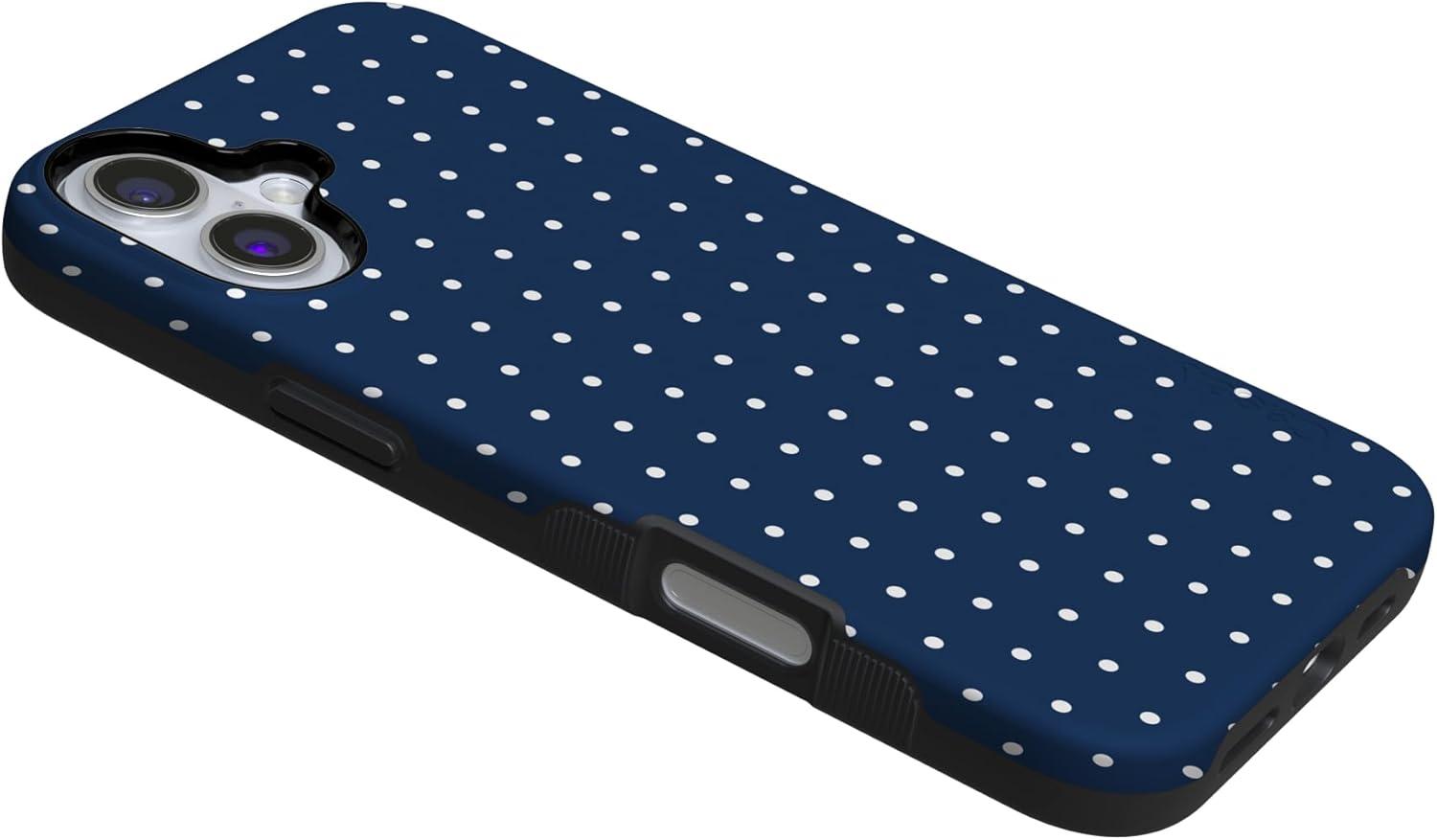 Casely iPhone 16 Plus Case | Van Gogh | Skull of a Skeleton with Burning Cigarette | Bold Protective Design | Compatible with MagSafe(On the Dot | Navy Polka Dot)