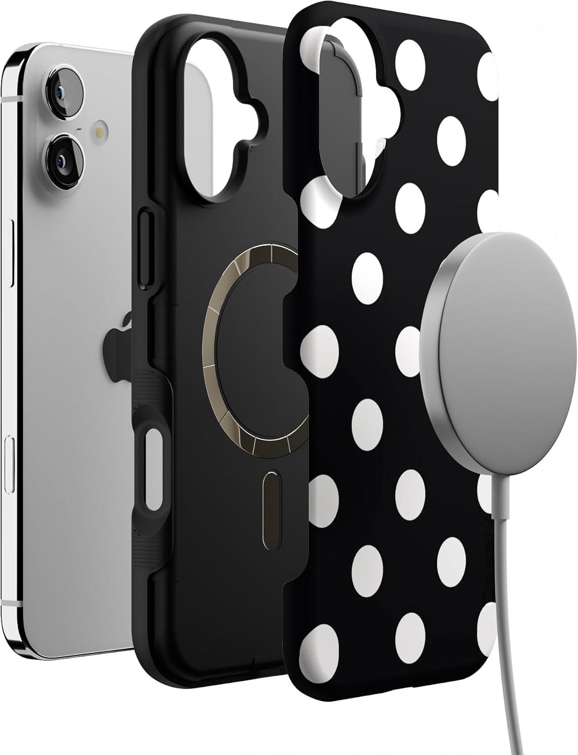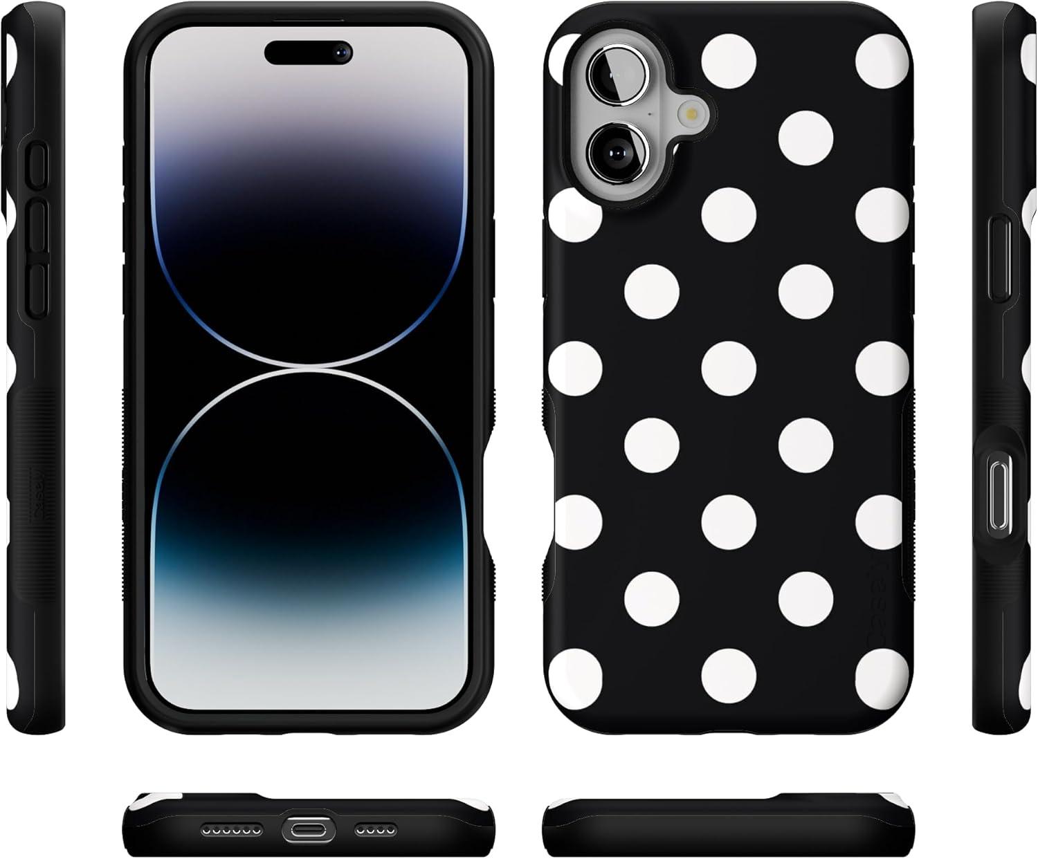 Casely iPhone 16 Plus Case | Van Gogh | Skull of a Skeleton with Burning Cigarette | Bold Protective Design | Compatible with MagSafe(Polka Dots | High Contrast Design)