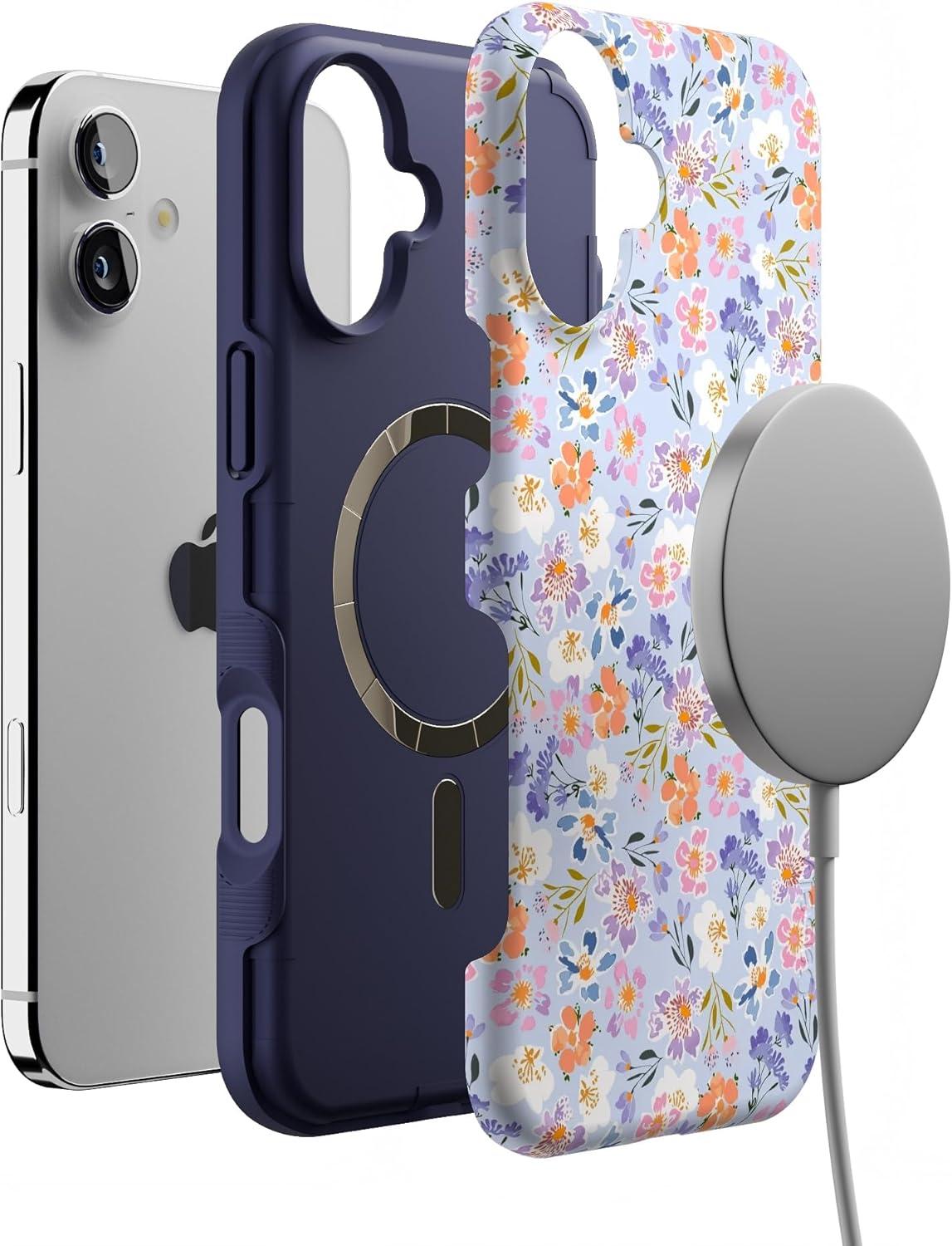 Casely iPhone 16 Plus Case | Van Gogh | Skull of a Skeleton with Burning Cigarette | Bold Protective Design | Compatible with MagSafe(Poppy Meadows | Pastel Floral)