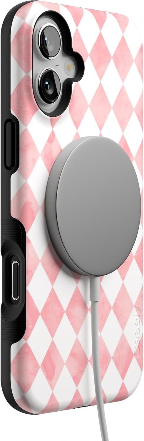 Casely iPhone 16 Plus Case | Van Gogh | Skull of a Skeleton with Burning Cigarette | Bold Protective Design | Compatible with MagSafe(Queen of Diamonds | Pink Watercolor)