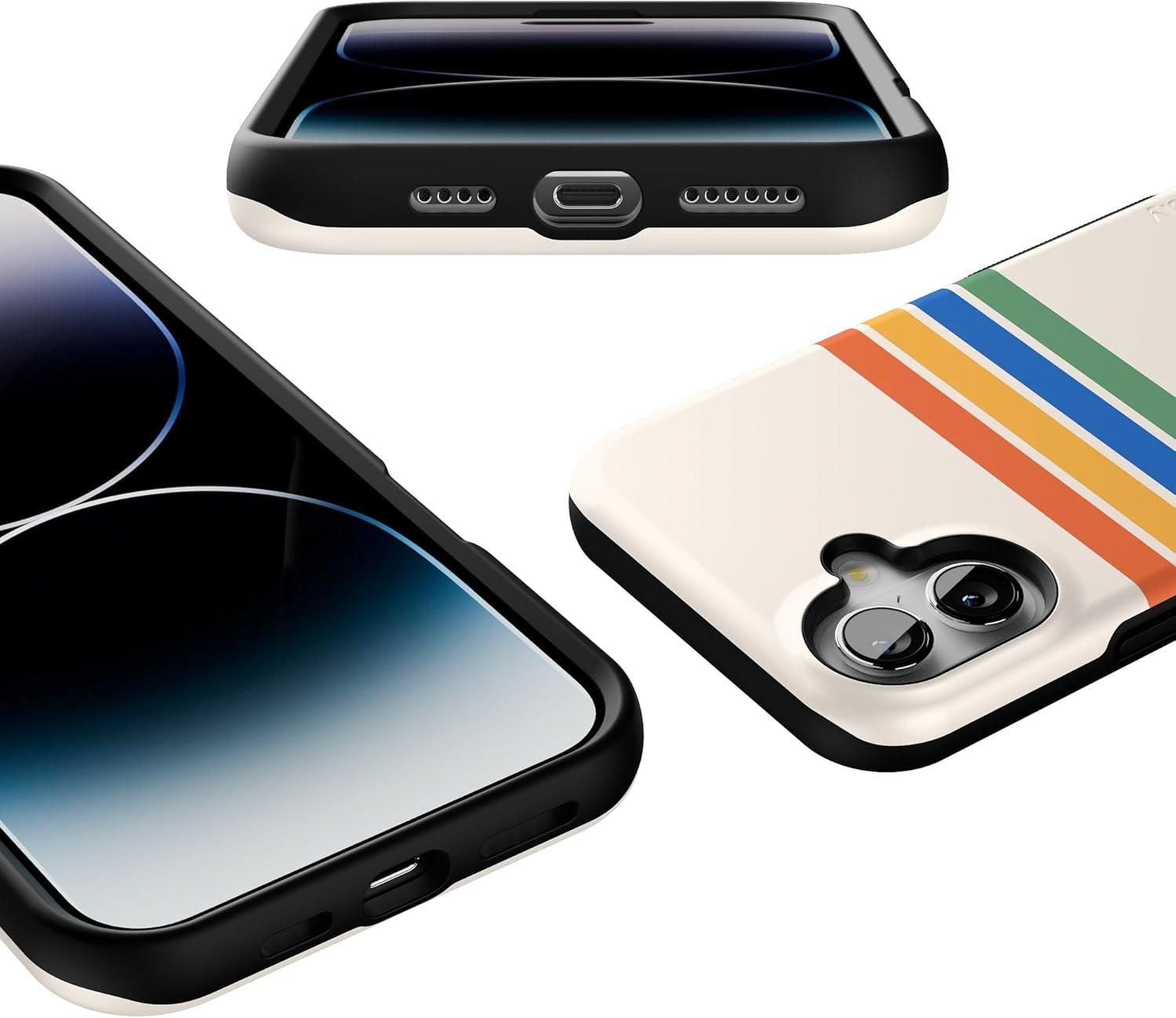 Casely iPhone 16 Plus Case | Van Gogh | Skull of a Skeleton with Burning Cigarette | Bold Protective Design | Compatible with MagSafe(Totally Groovy | Rainbow Stripes Color Block)