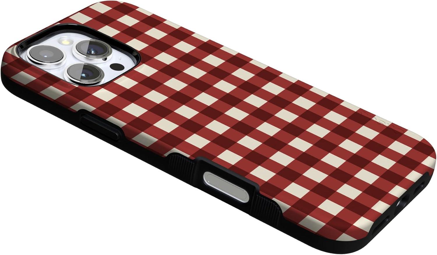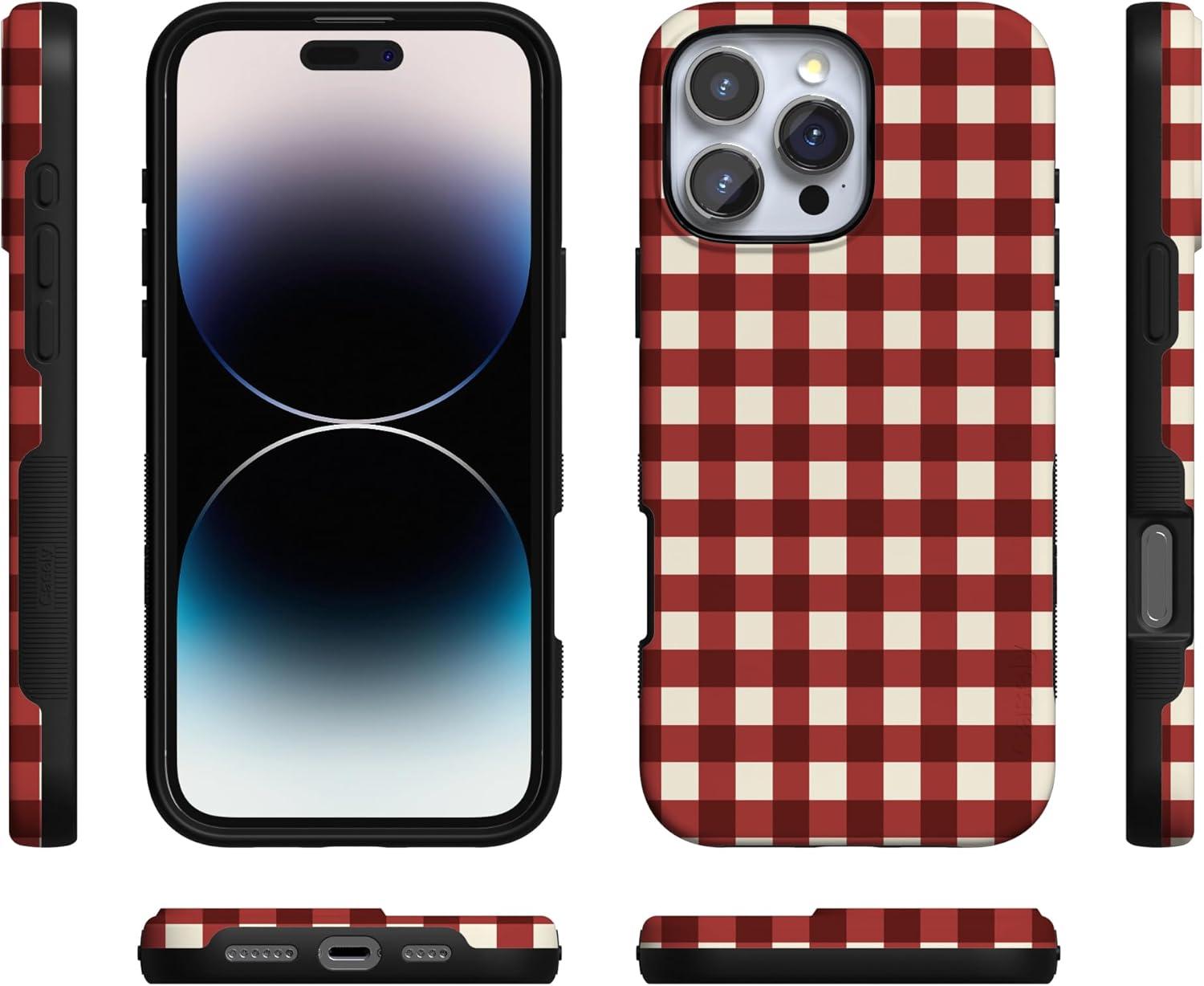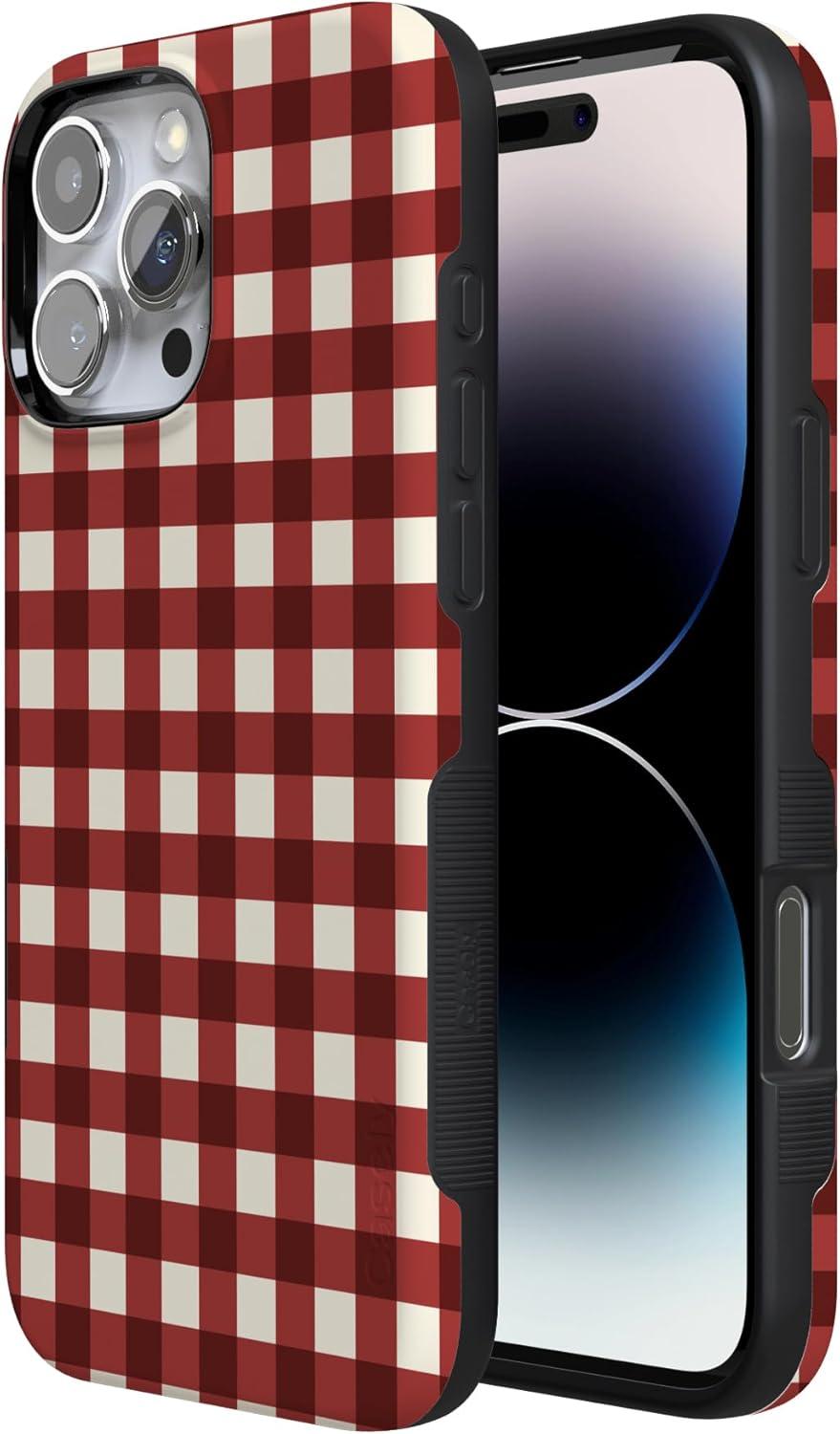 Casely iPhone 16 Pro Case | Checked Twice | Red Plaid | Bold Protective Design | MagSafe Compatible Design