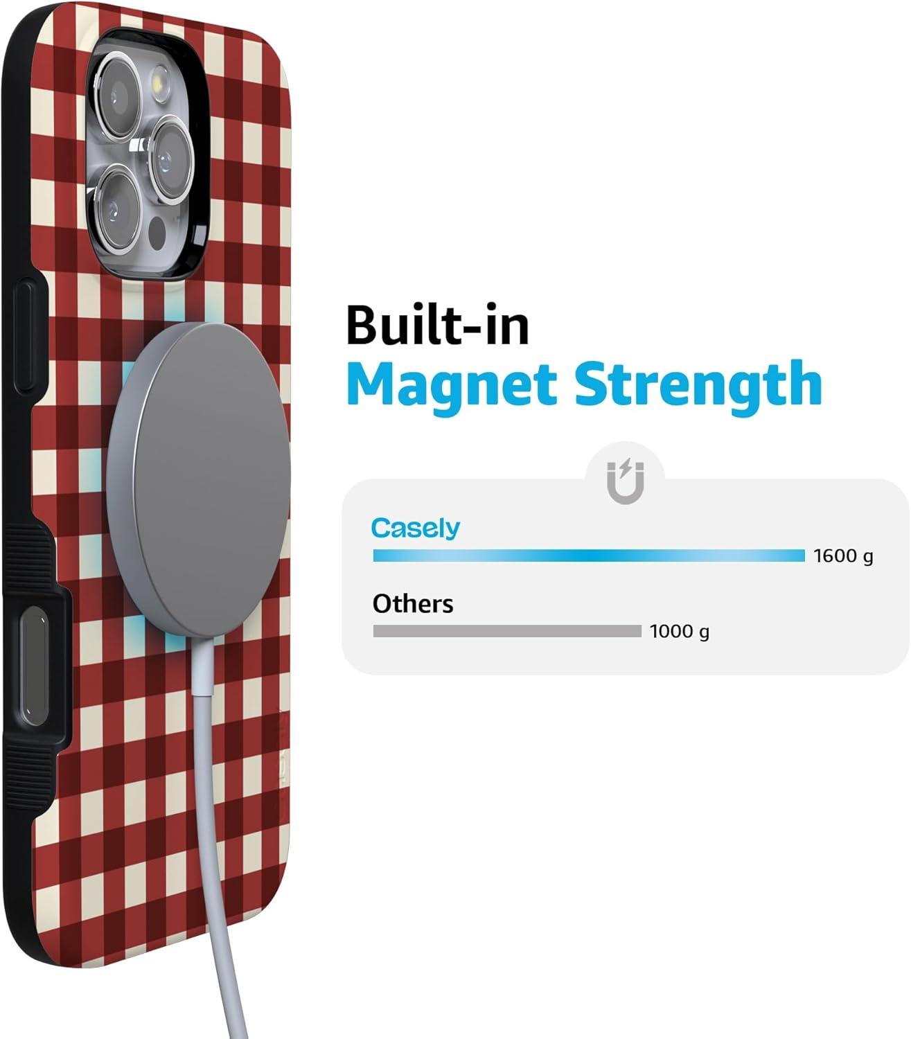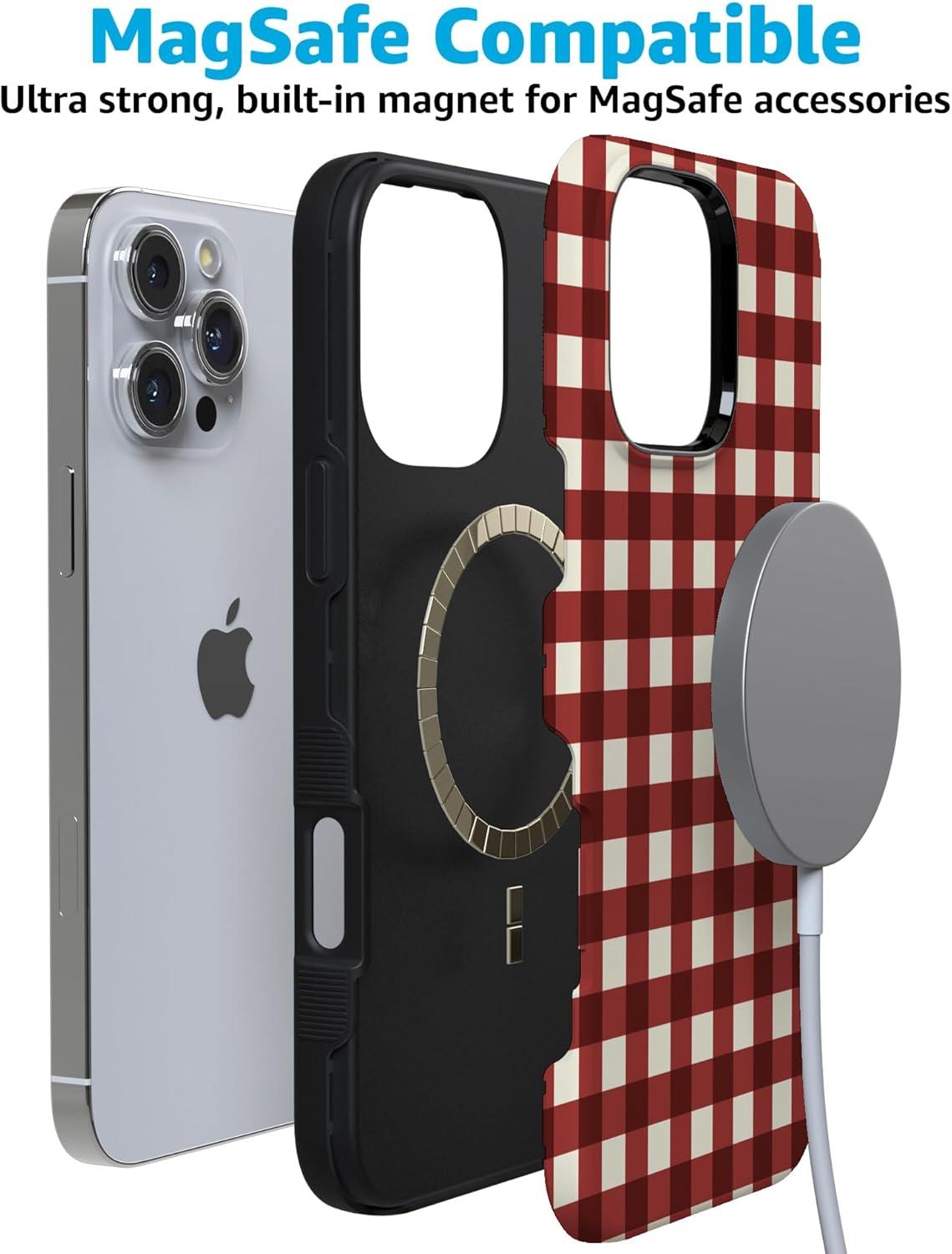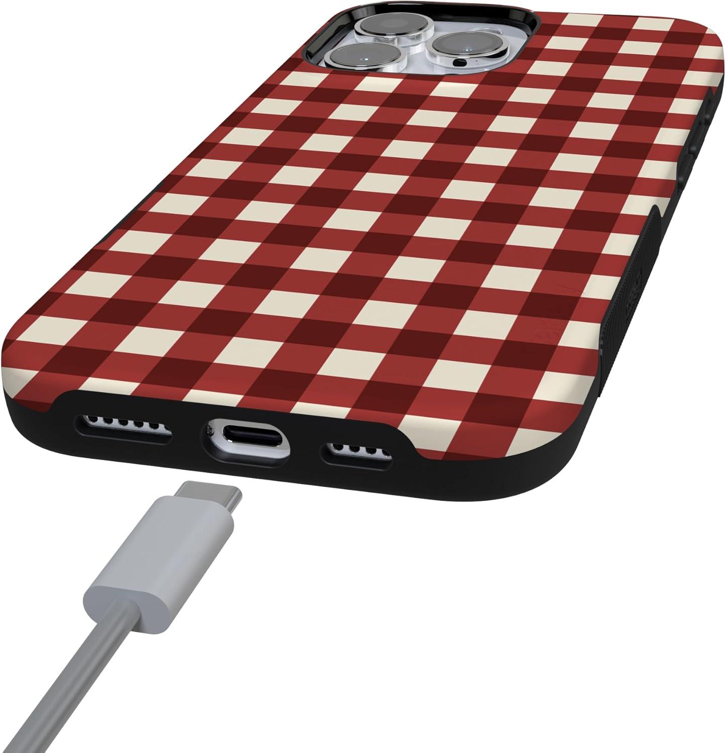 Casely iPhone 16 Pro Case | Checked Twice | Red Plaid | Bold Protective Design | MagSafe Compatible Design