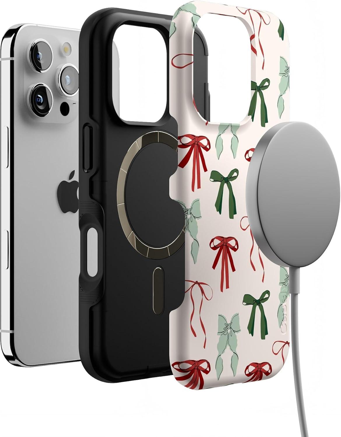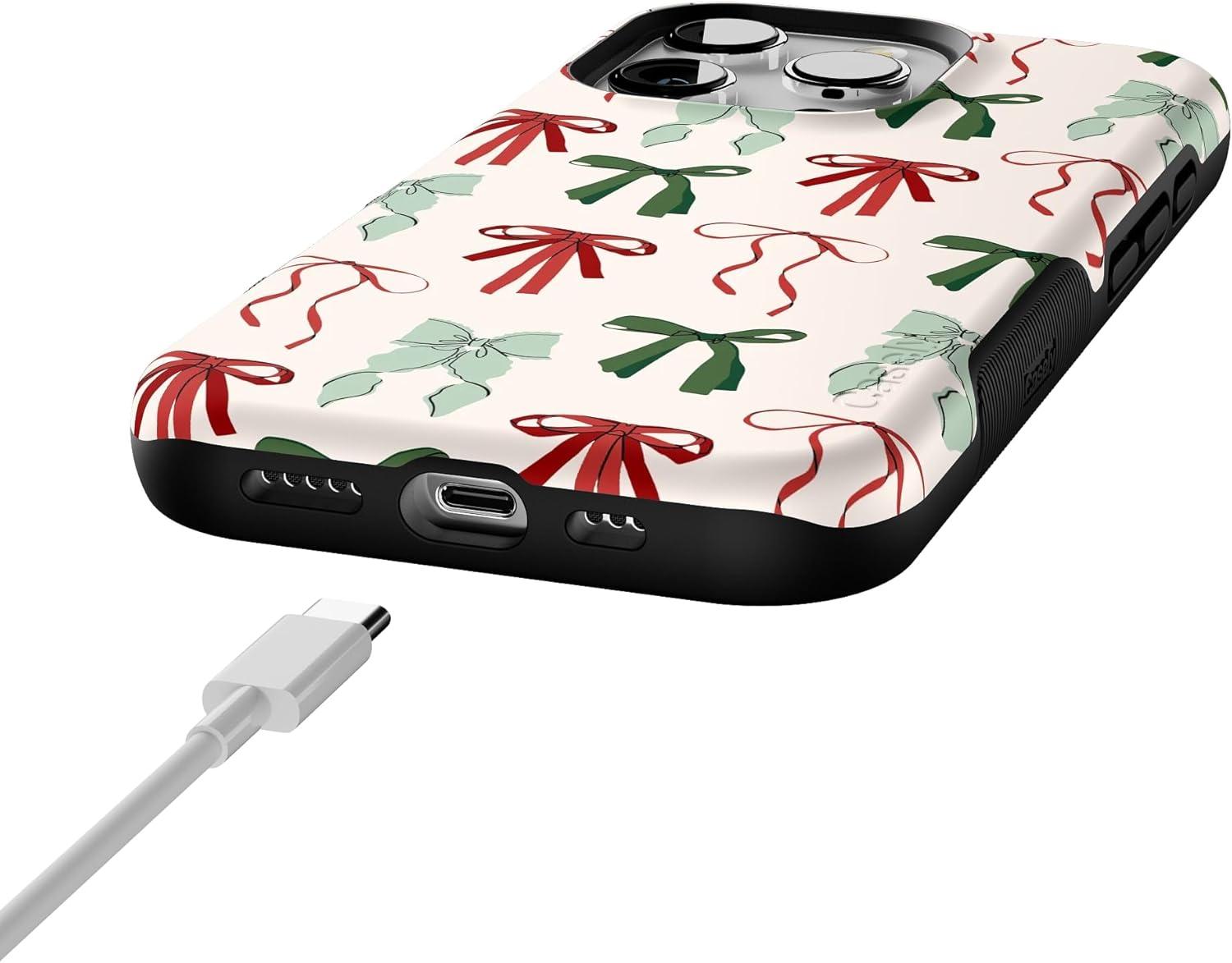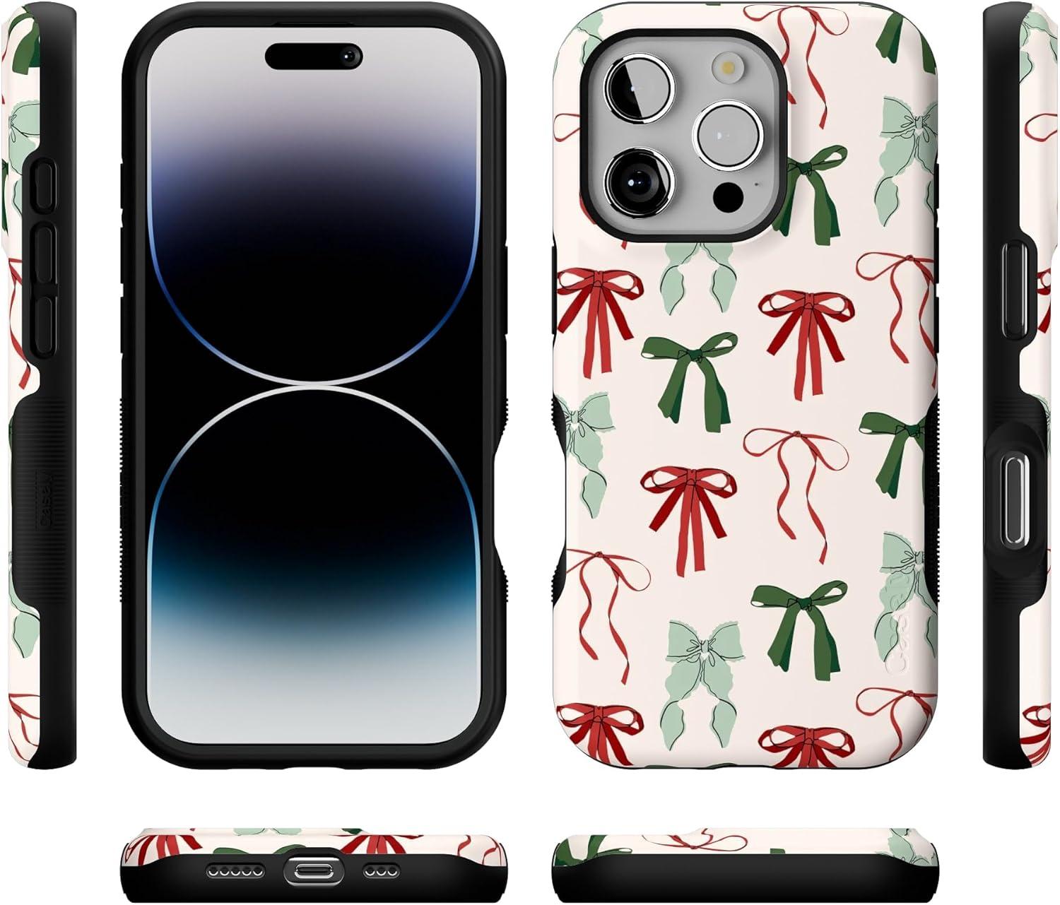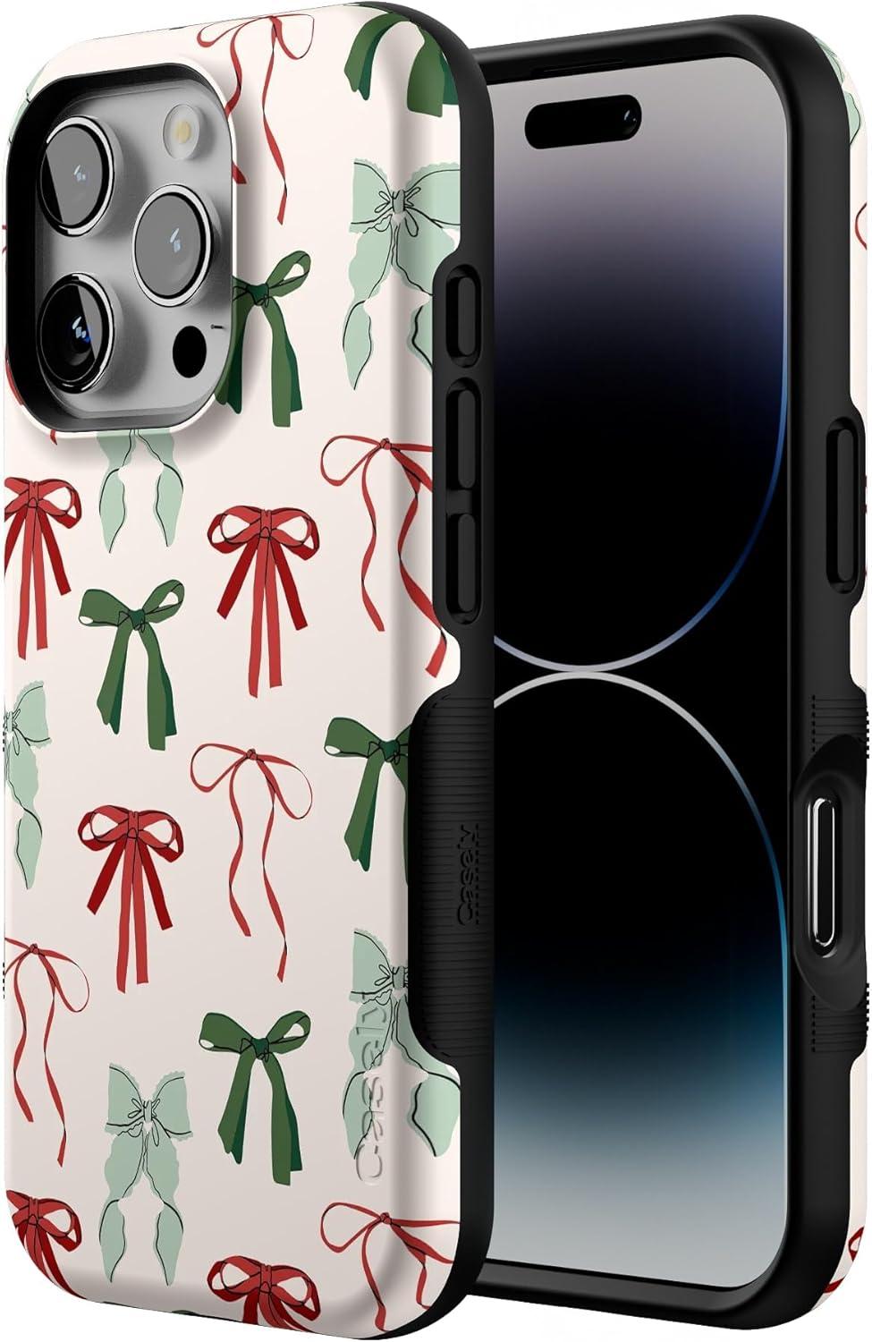 Casely iPhone 16 Pro Case | Festive Girlie | Holiday Bows | Bold Protective Design | MagSafe Compatible Design