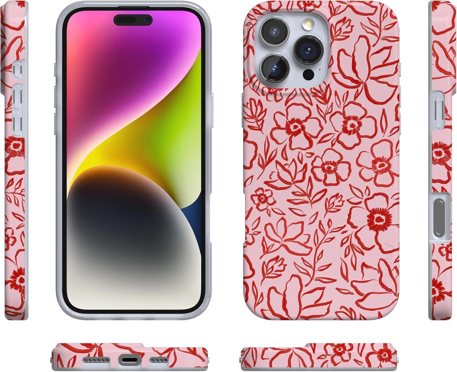 Casely iPhone 16 Pro Case | Glitter Mystic Moss | Green Enchanted Shimmer | Compatible with MagSafe | Classic Ultra-Slim Case Design(Blush Garden | Floral Doodle)