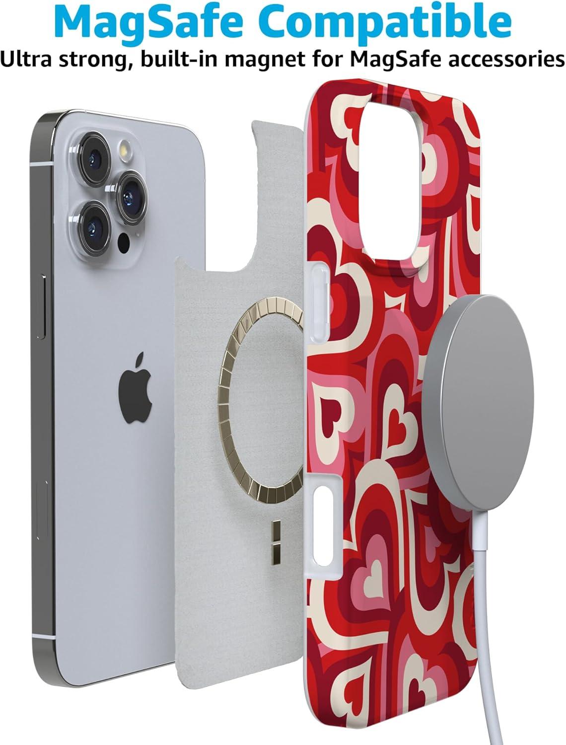 Casely iPhone 16 Pro Case | Glitter Mystic Moss | Green Enchanted Shimmer | Compatible with MagSafe | Classic Ultra-Slim Case Design(Love Song Remix | Ombre Hearts)