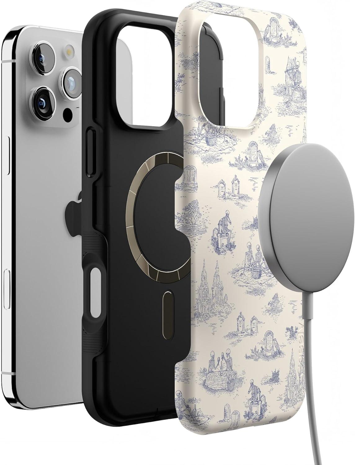 Casely iPhone 16 Pro Case | Graveyard Gathering | Skeleton Picnic | Bold Protective Design | MagSafe Compatible Design
