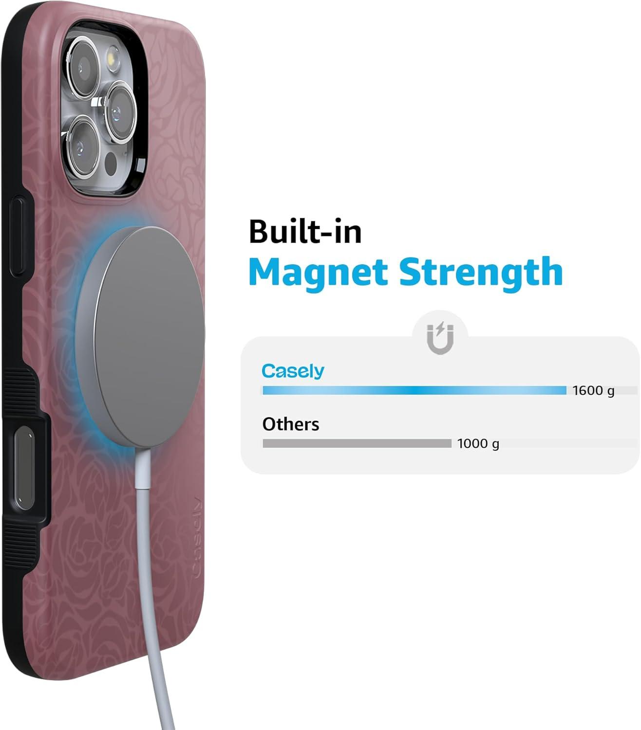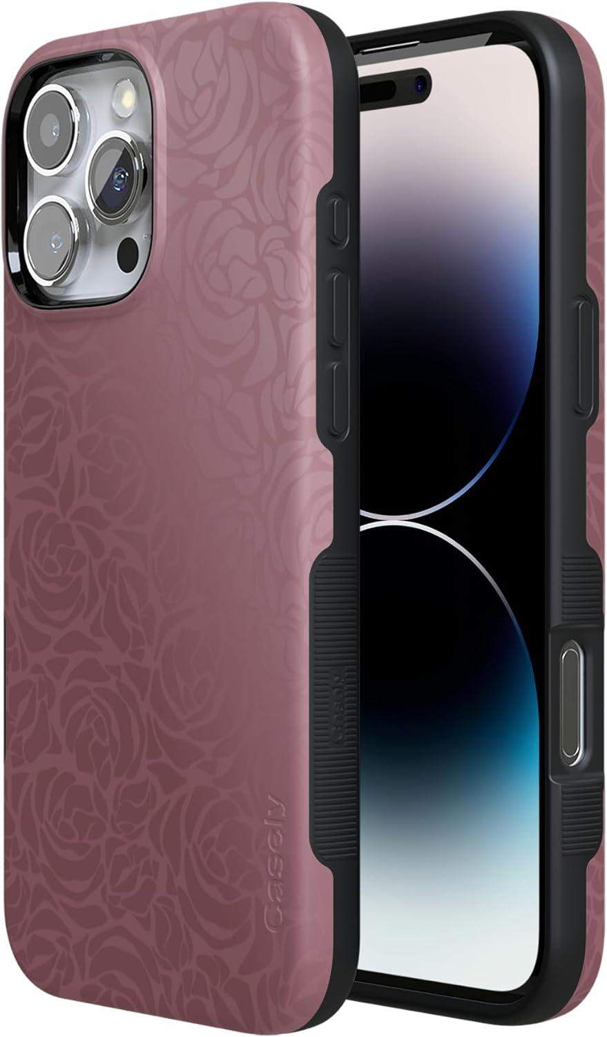Casely iPhone 16 Pro Case | Into The Wild | Black Leopard | Bold Protective Design | Compatible with MagSafe(Bordeaux Rose | Moody Monochrome)