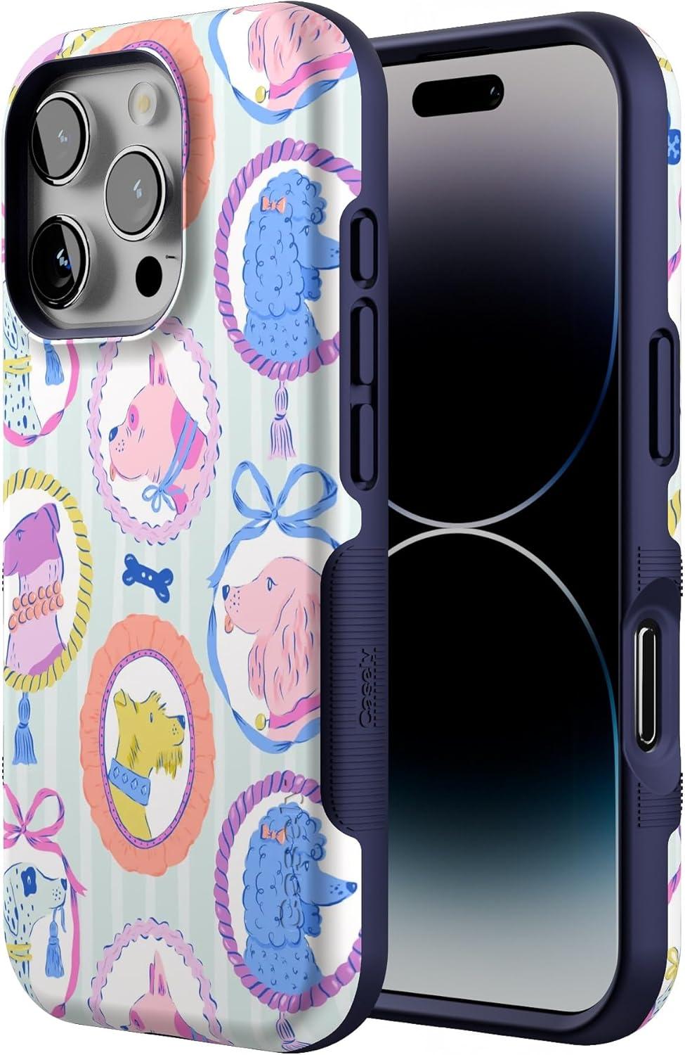 Casely iPhone 16 Pro Case | Into The Wild | Black Leopard | Bold Protective Design | Compatible with MagSafe(Chateau Pups | French Dog)