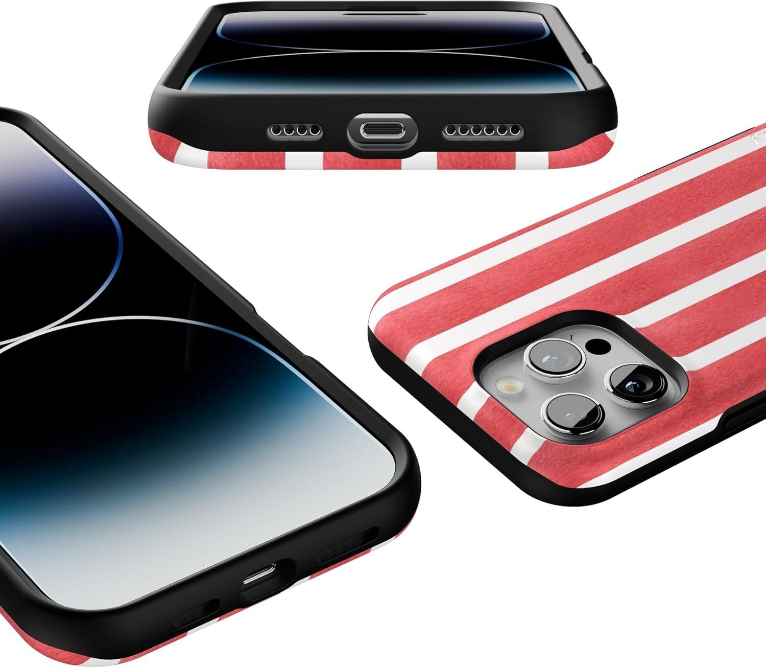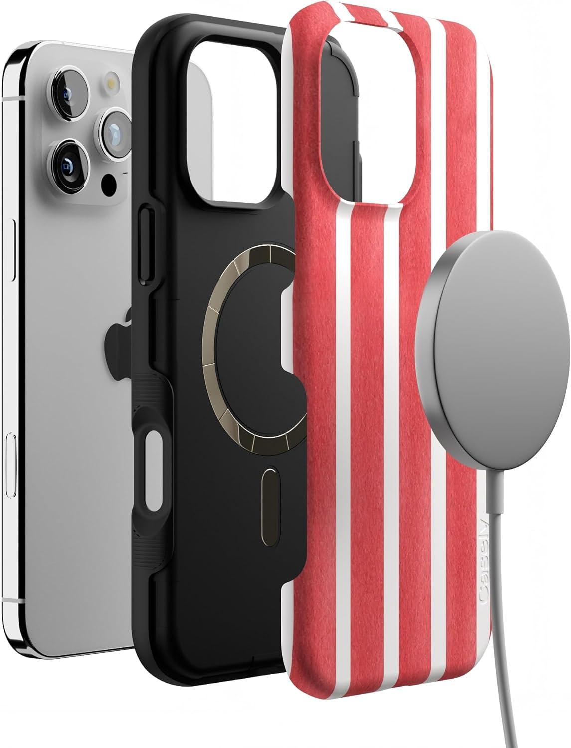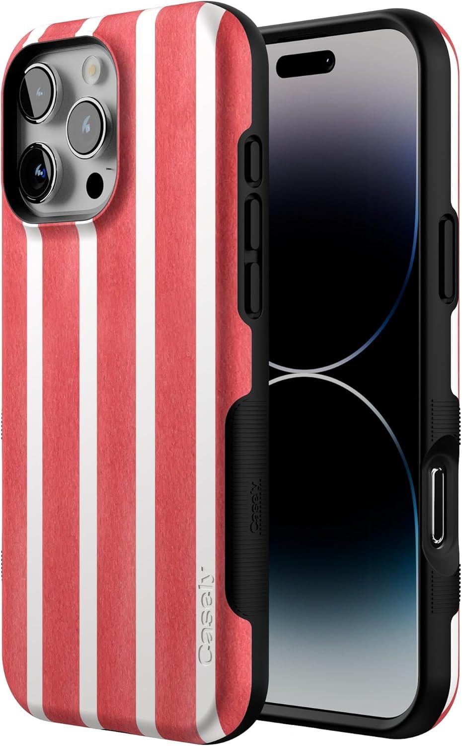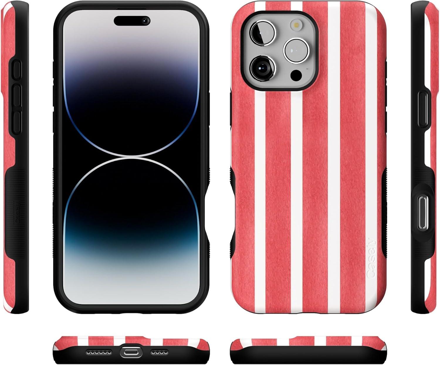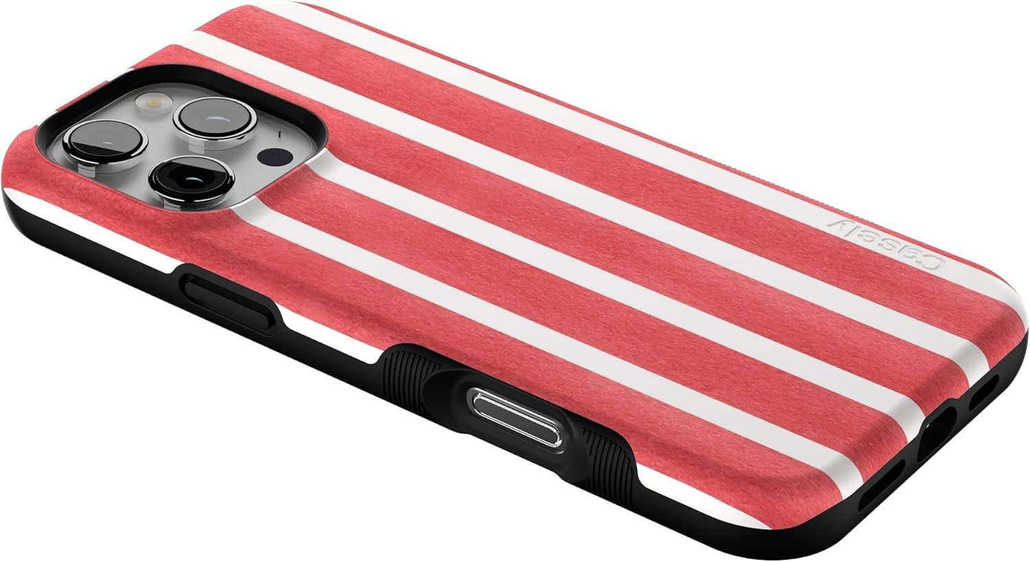 Casely iPhone 16 Pro Case | Into The Wild | Black Leopard | Bold Protective Design | Compatible with MagSafe(East Coast Summer | Red Stripes)