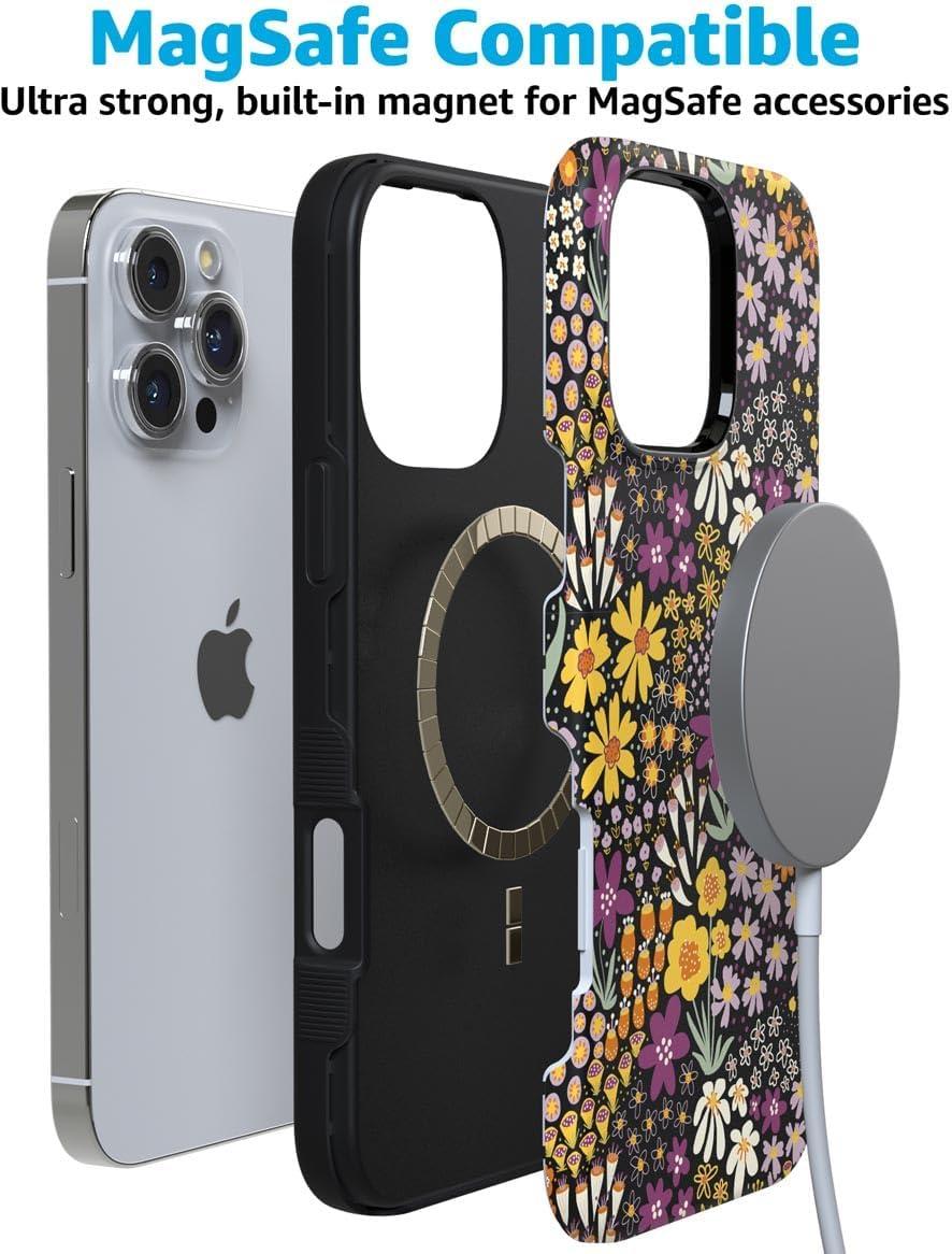 Casely iPhone 16 Pro Case | Into The Wild | Black Leopard | Bold Protective Design | Compatible with MagSafe(Falling for You | Plum Floral)