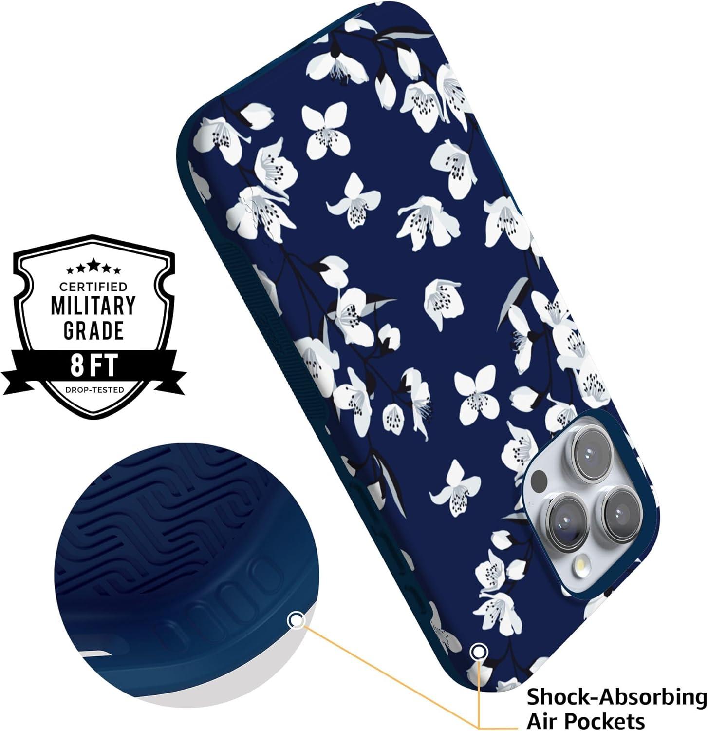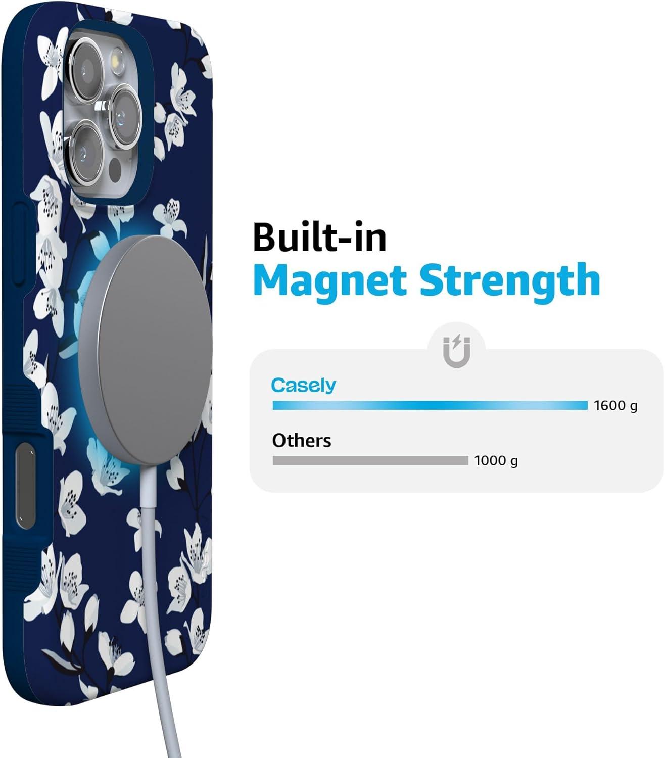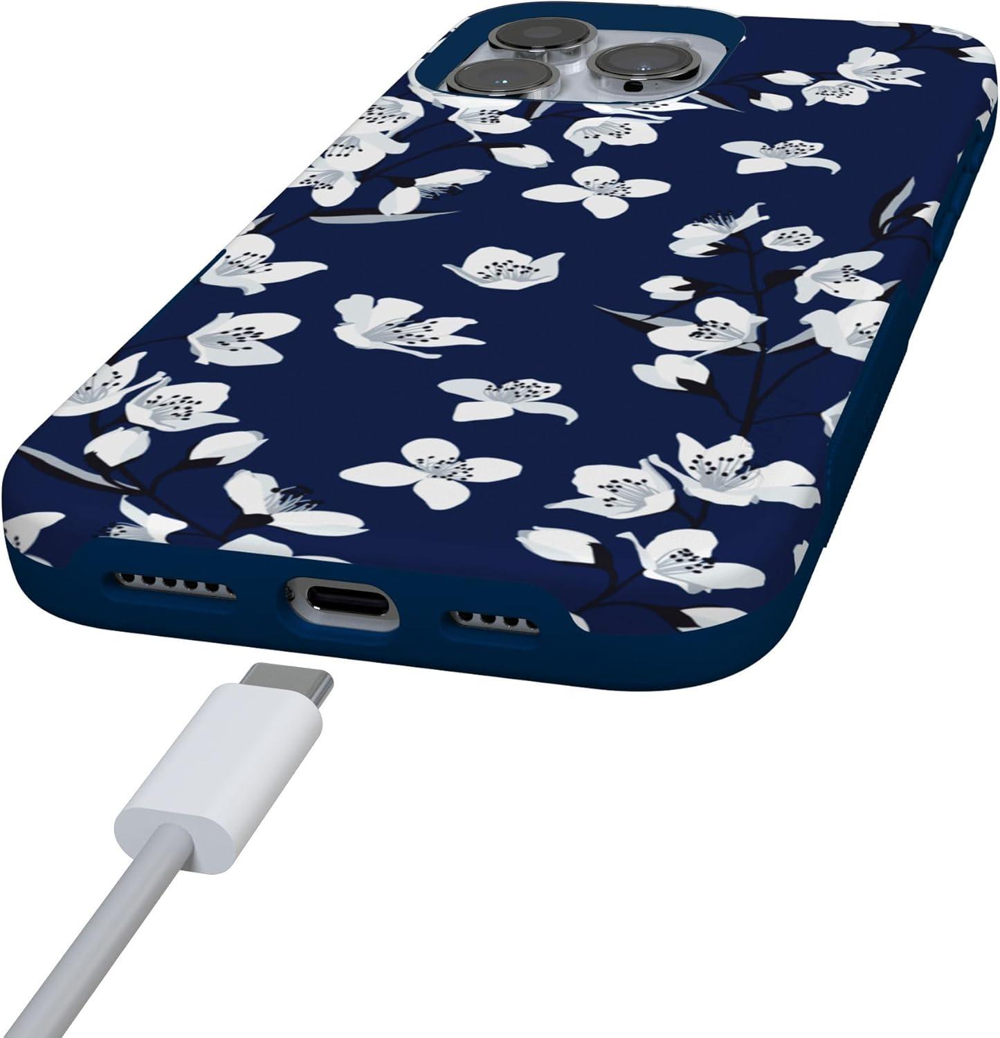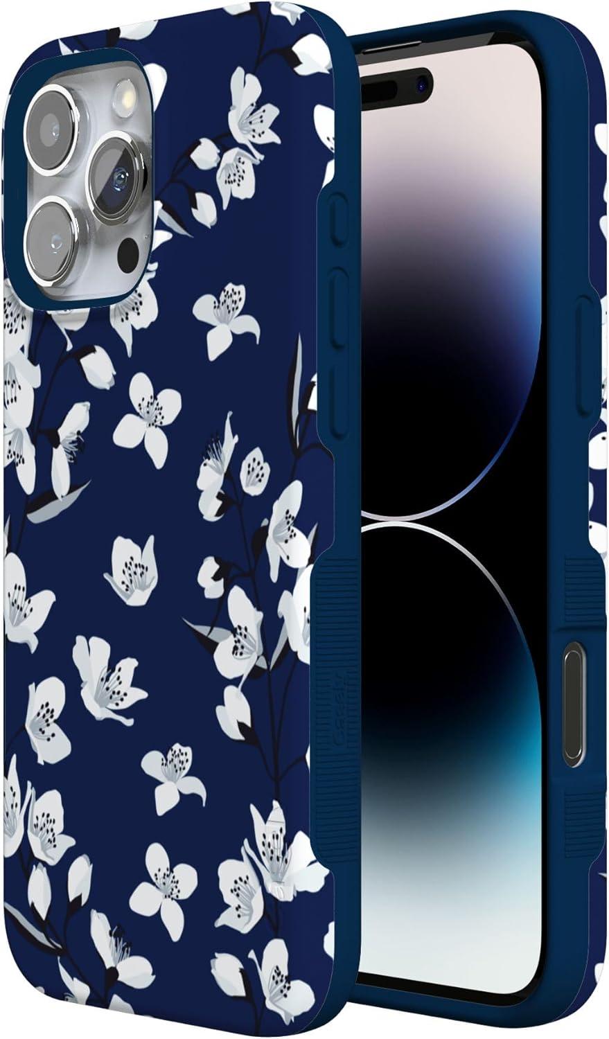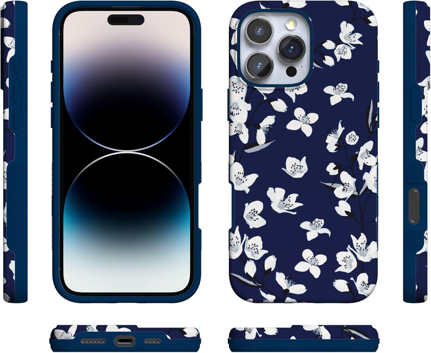 Casely iPhone 16 Pro Case | Into The Wild | Black Leopard | Bold Protective Design | Compatible with MagSafe(Floral Forest | Navy Cherry Blossom Floral)