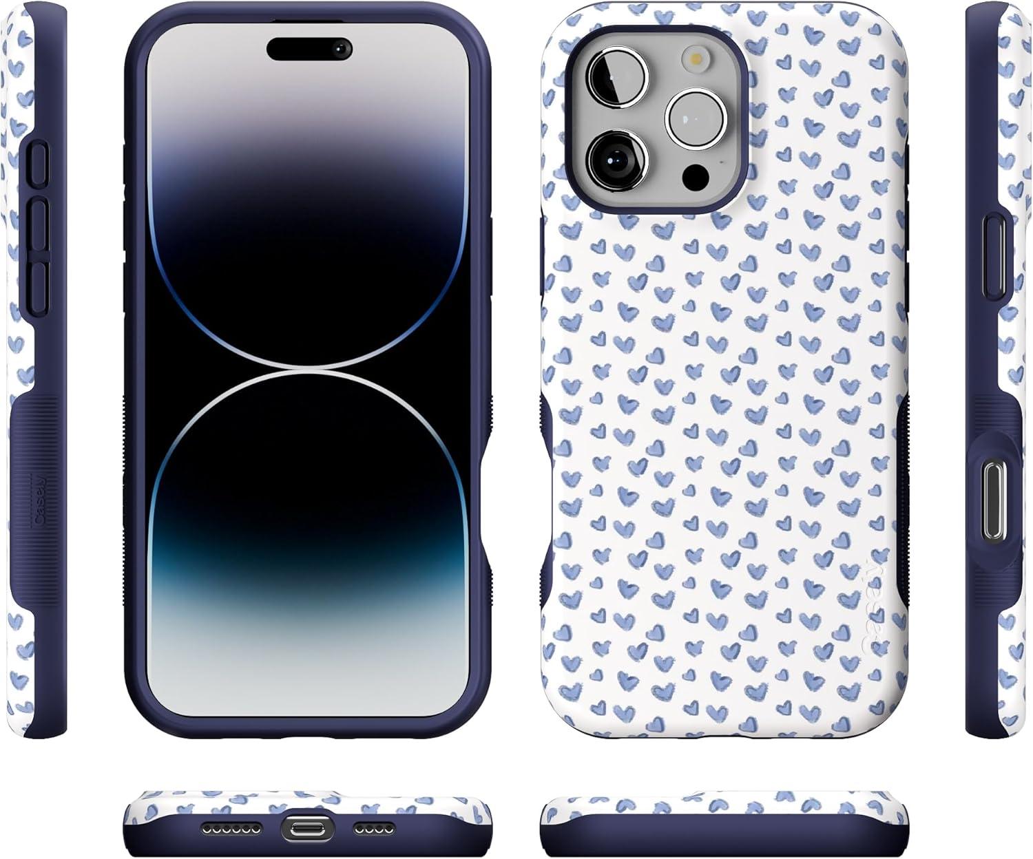 Casely iPhone 16 Pro Case | Into The Wild | Black Leopard | Bold Protective Design | Compatible with MagSafe(Lovebug | Blue Hearts)