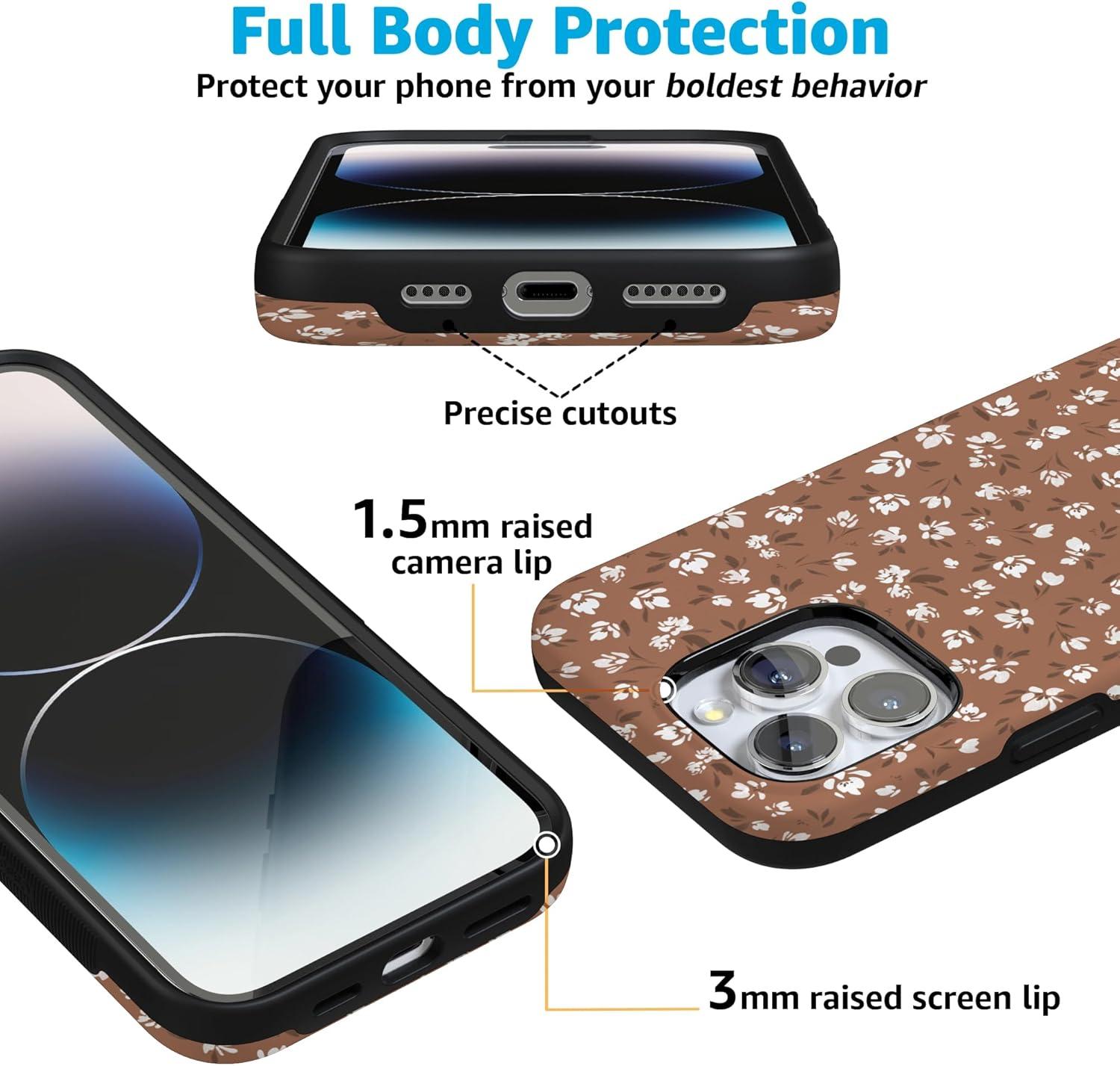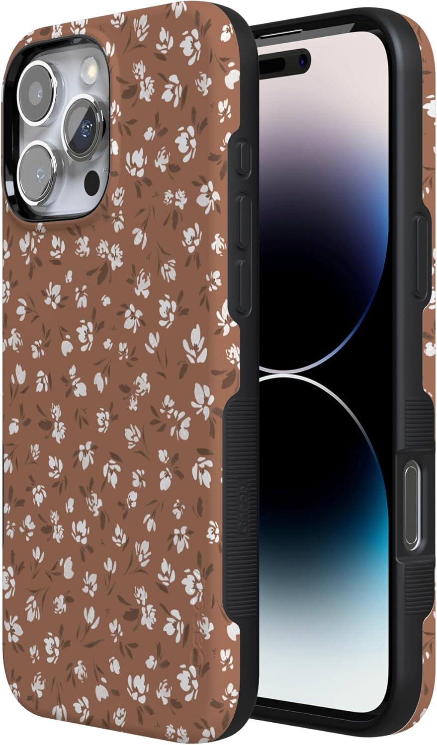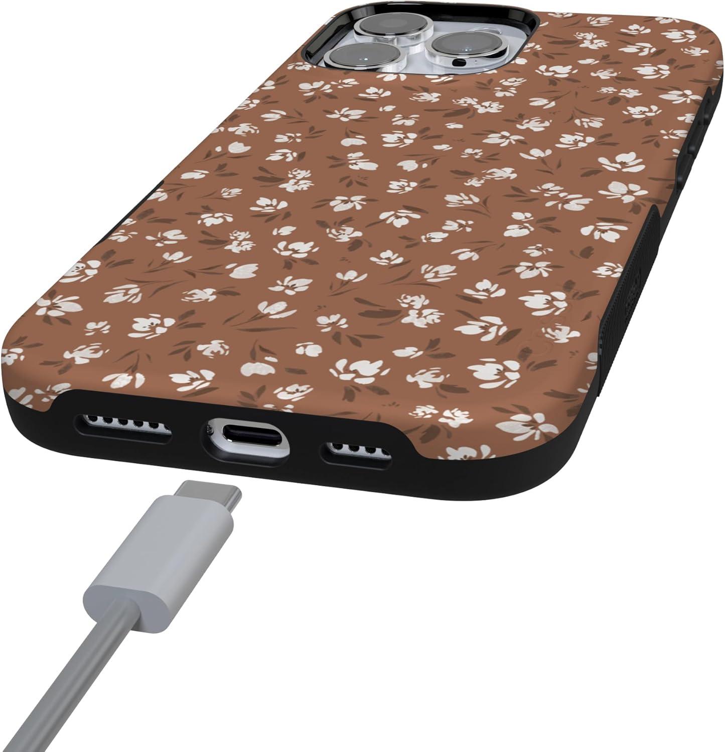 Casely iPhone 16 Pro Case | Into The Wild | Black Leopard | Bold Protective Design | Compatible with MagSafe(Mocha Meadow | Tiny Flowers)