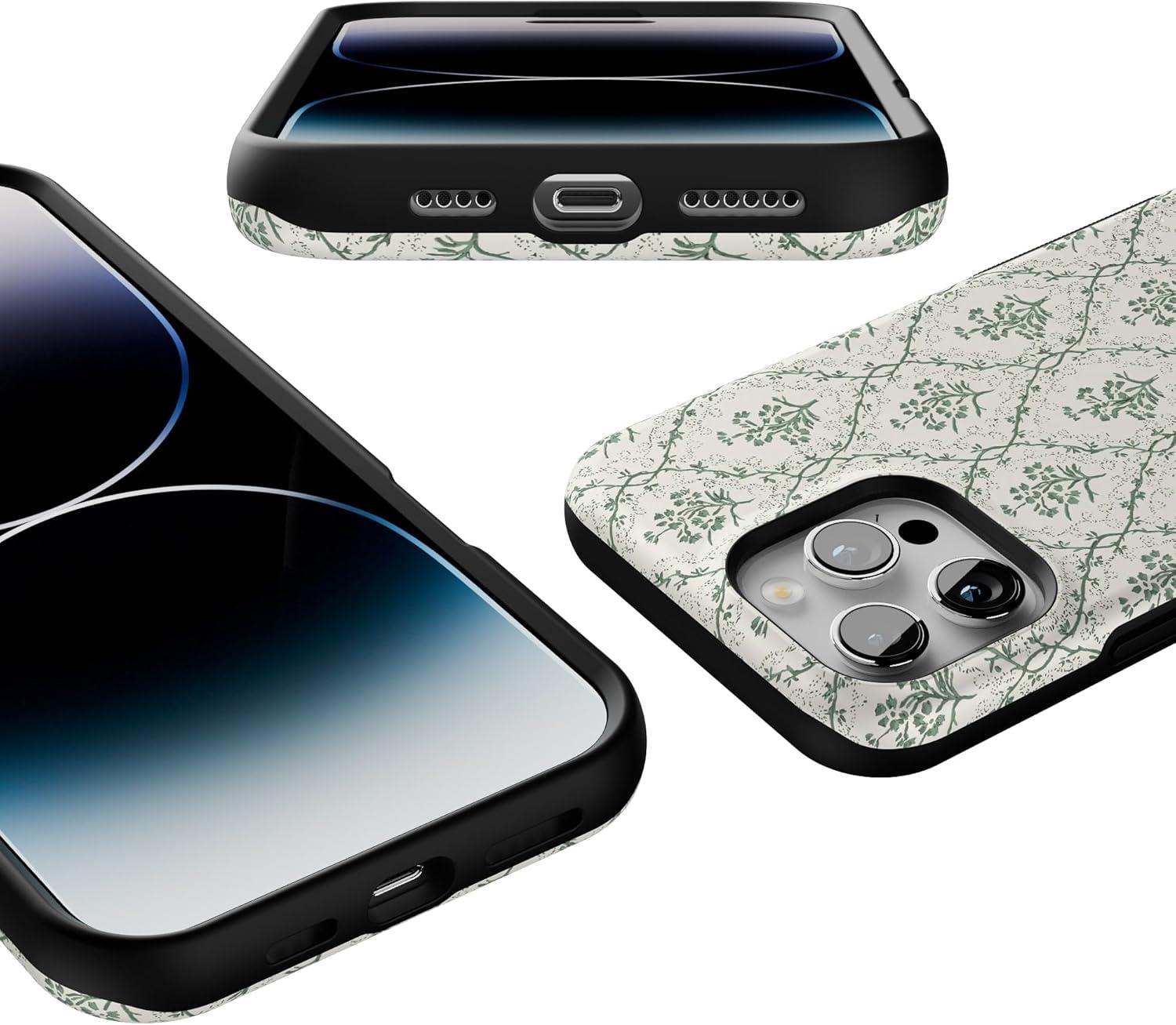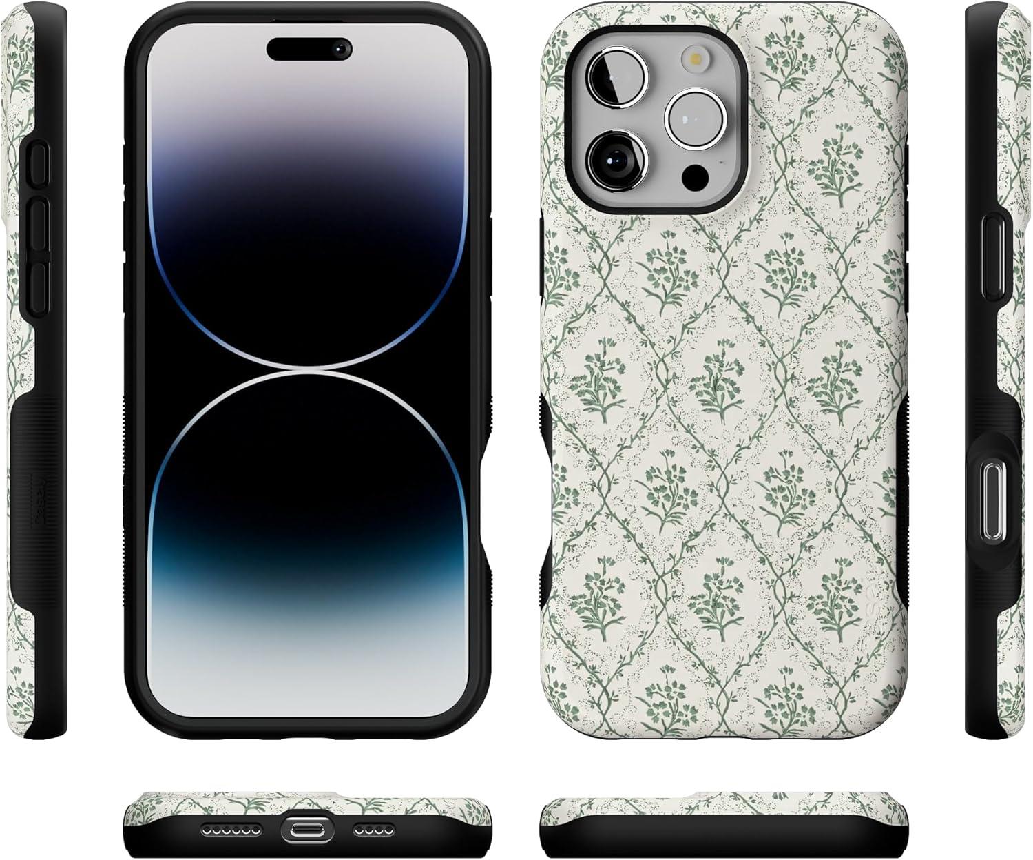 Casely iPhone 16 Pro Case | Into The Wild | Black Leopard | Bold Protective Design | Compatible with MagSafe(Sage Tapestry | Floral Vines)