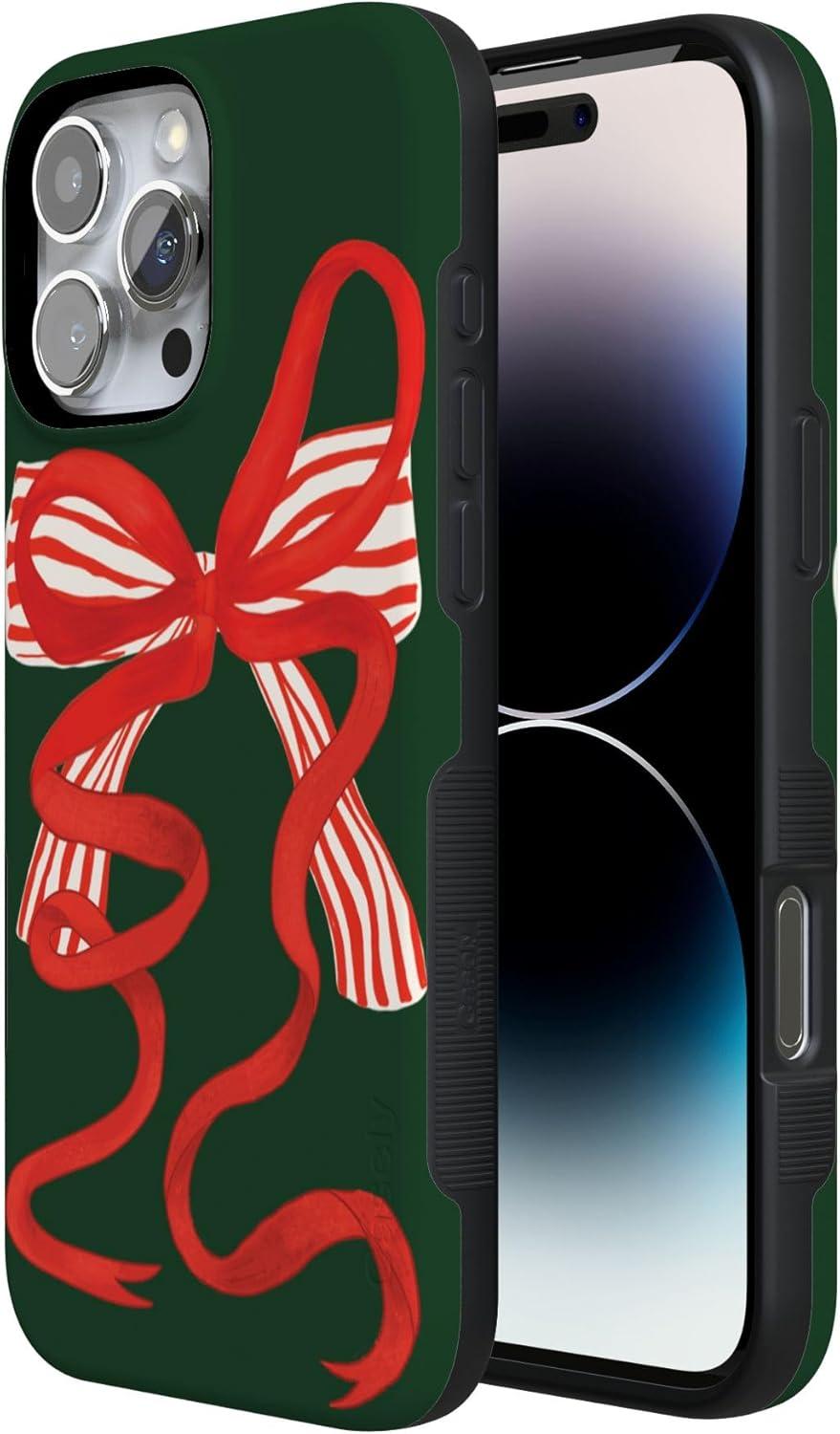 Casely iPhone 16 Pro Case | Into The Wild | Black Leopard | Bold Protective Design | Compatible with MagSafe(Santa’s Favorite | Holiday Bow)