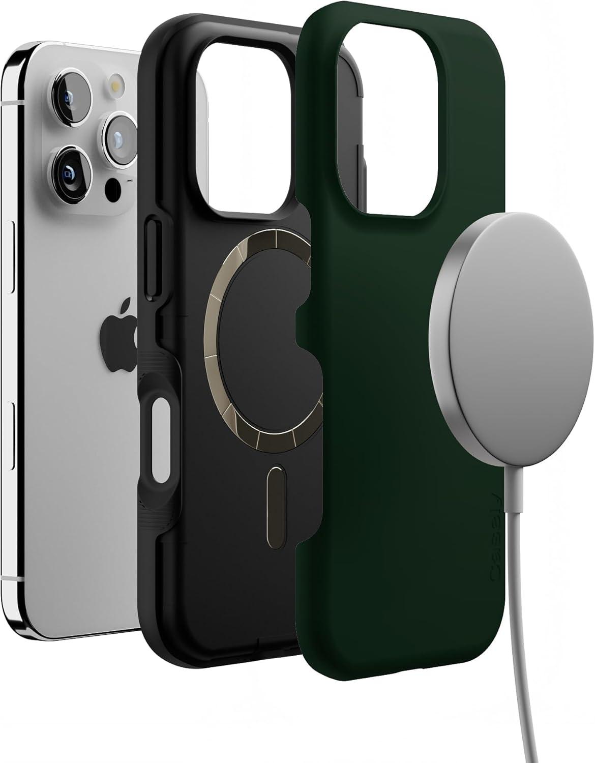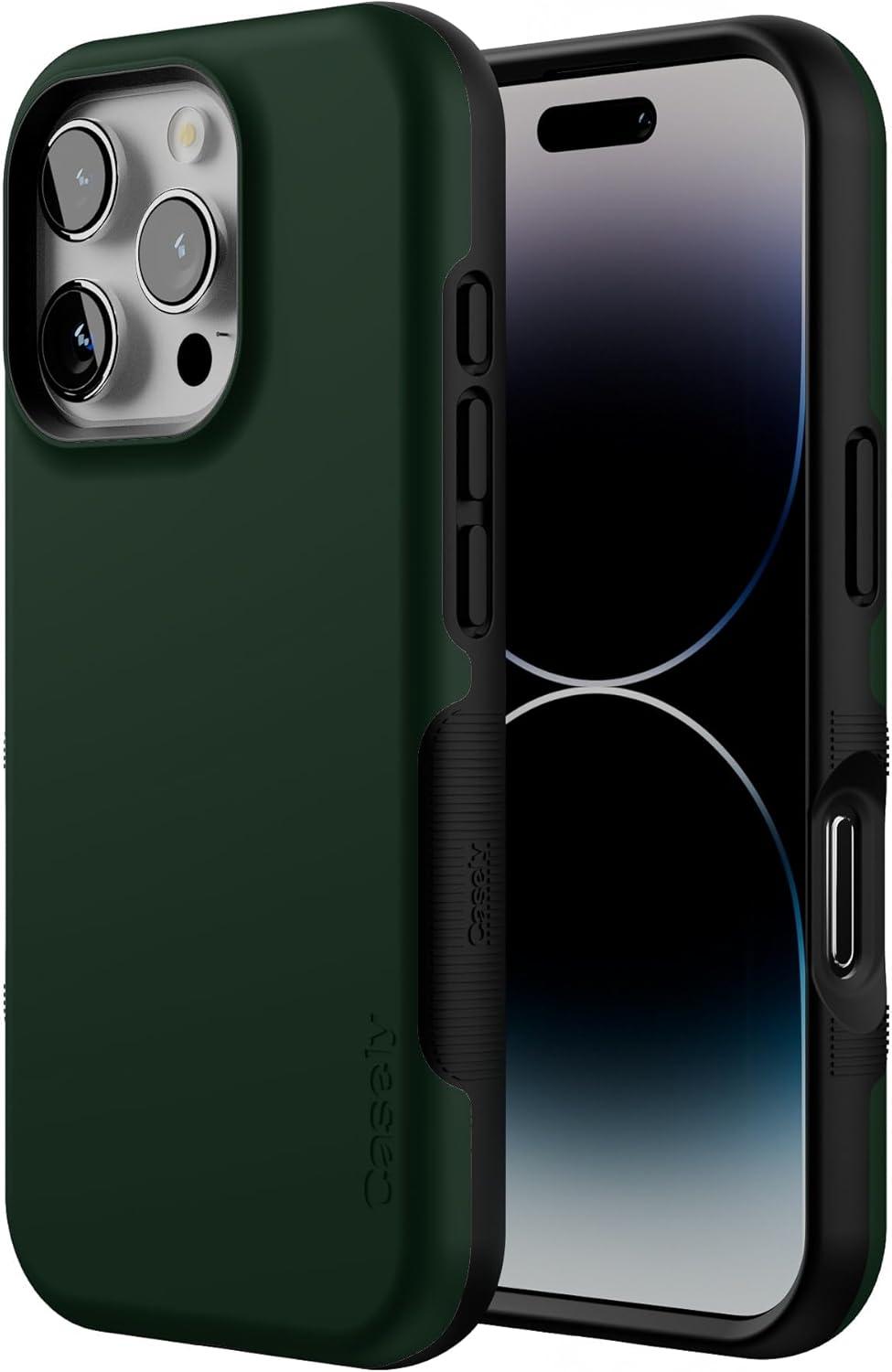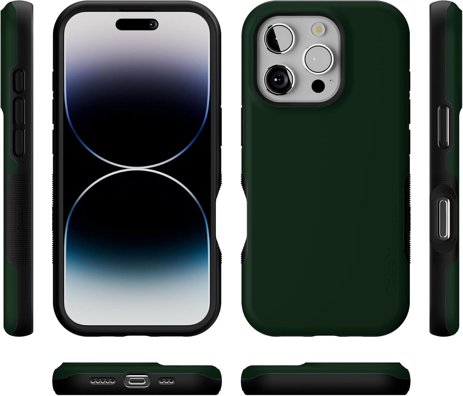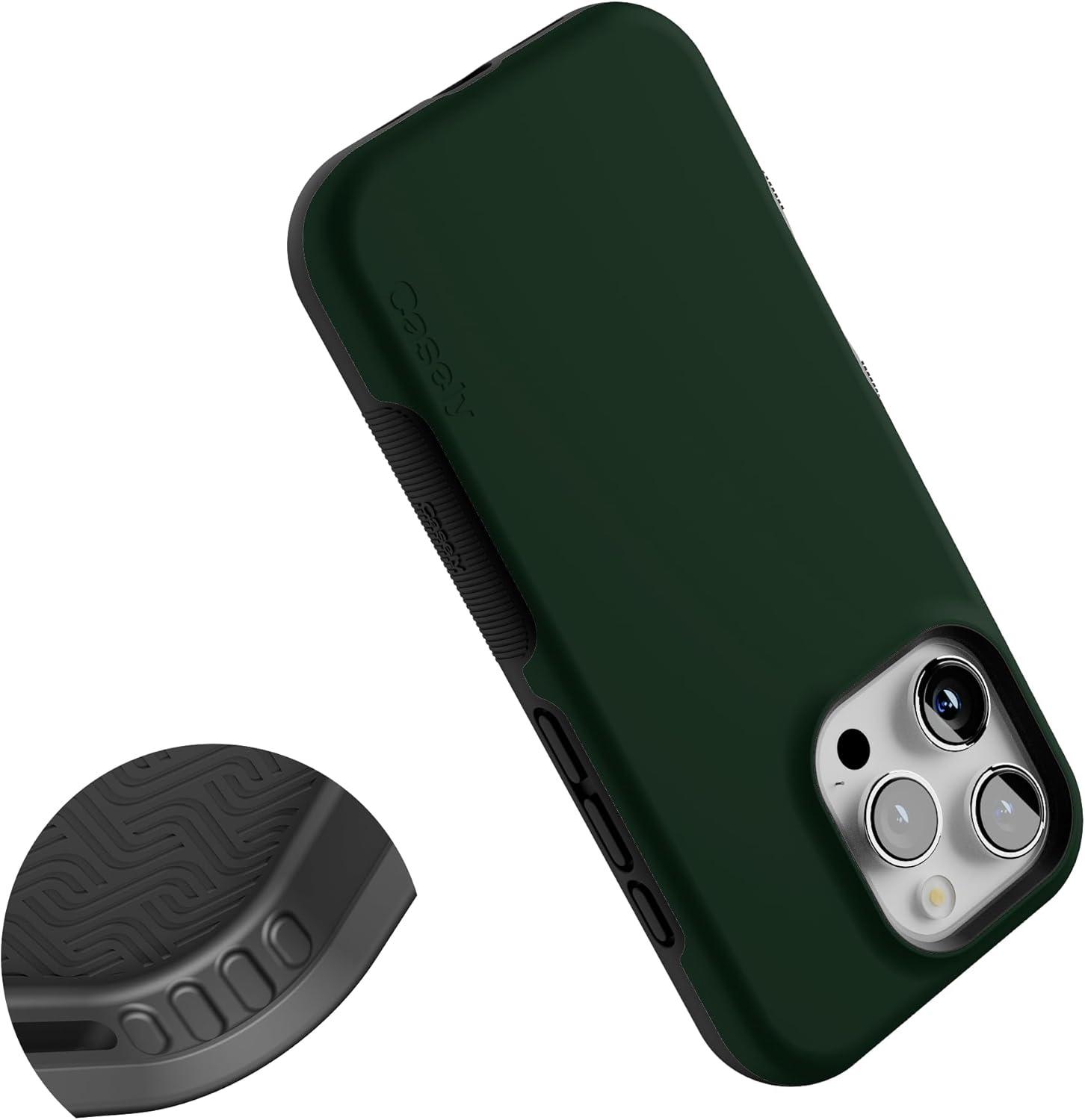 Casely iPhone 16 Pro Case | Into The Wild | Black Leopard | Bold Protective Design | Compatible with MagSafe(The Boyfriend Collection | Forest Green)
