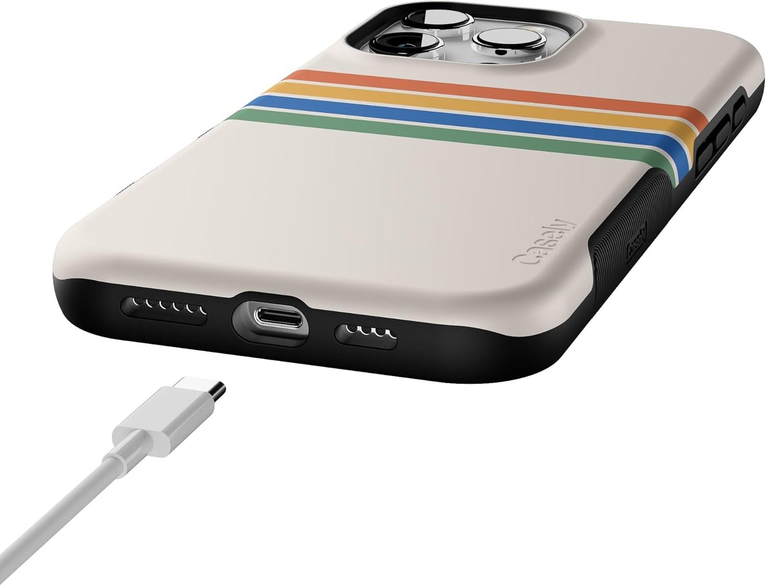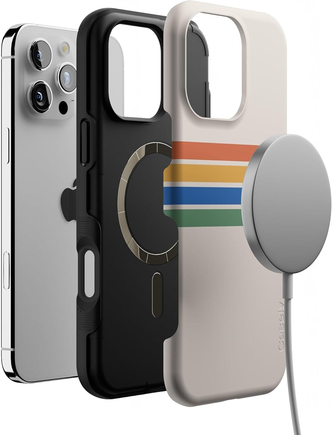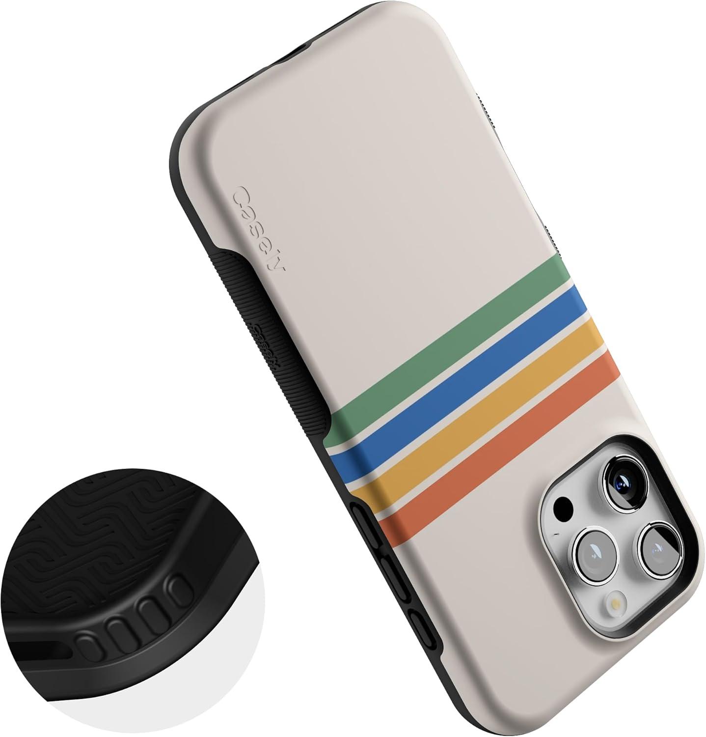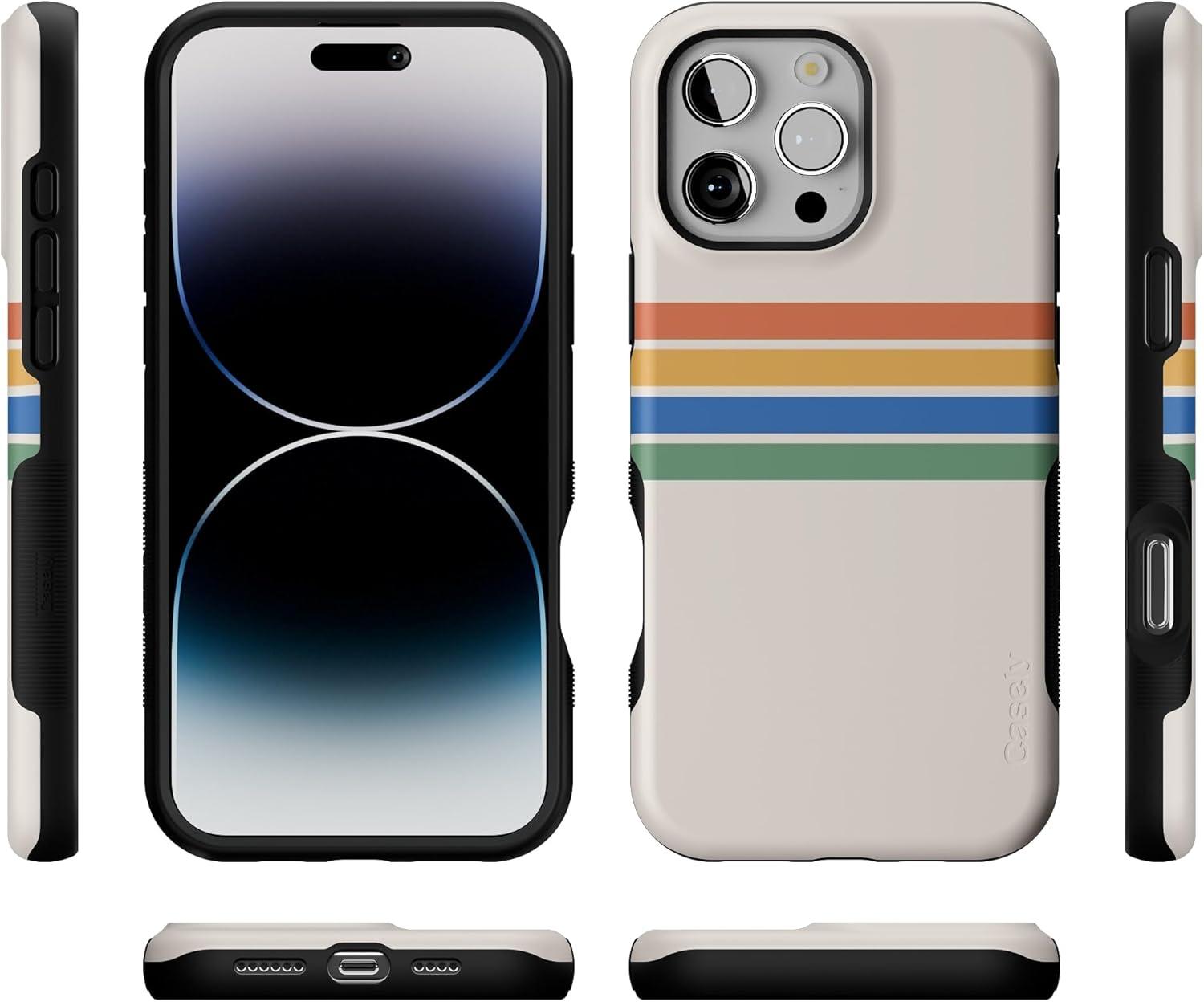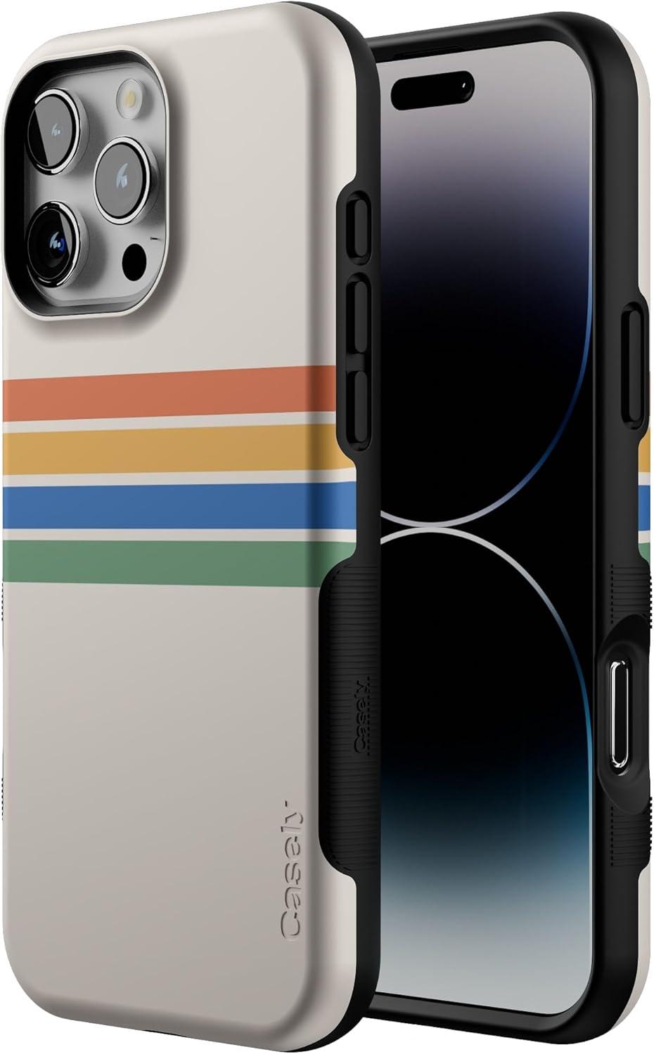 Casely iPhone 16 Pro Case | Into The Wild | Black Leopard | Bold Protective Design | Compatible with MagSafe(Totally Groovy | Rainbow Stripes Colorblock)