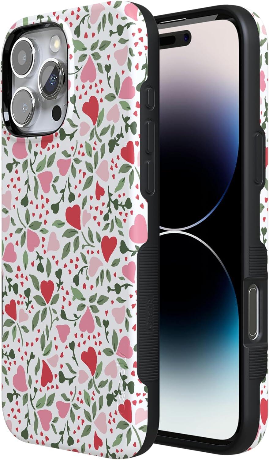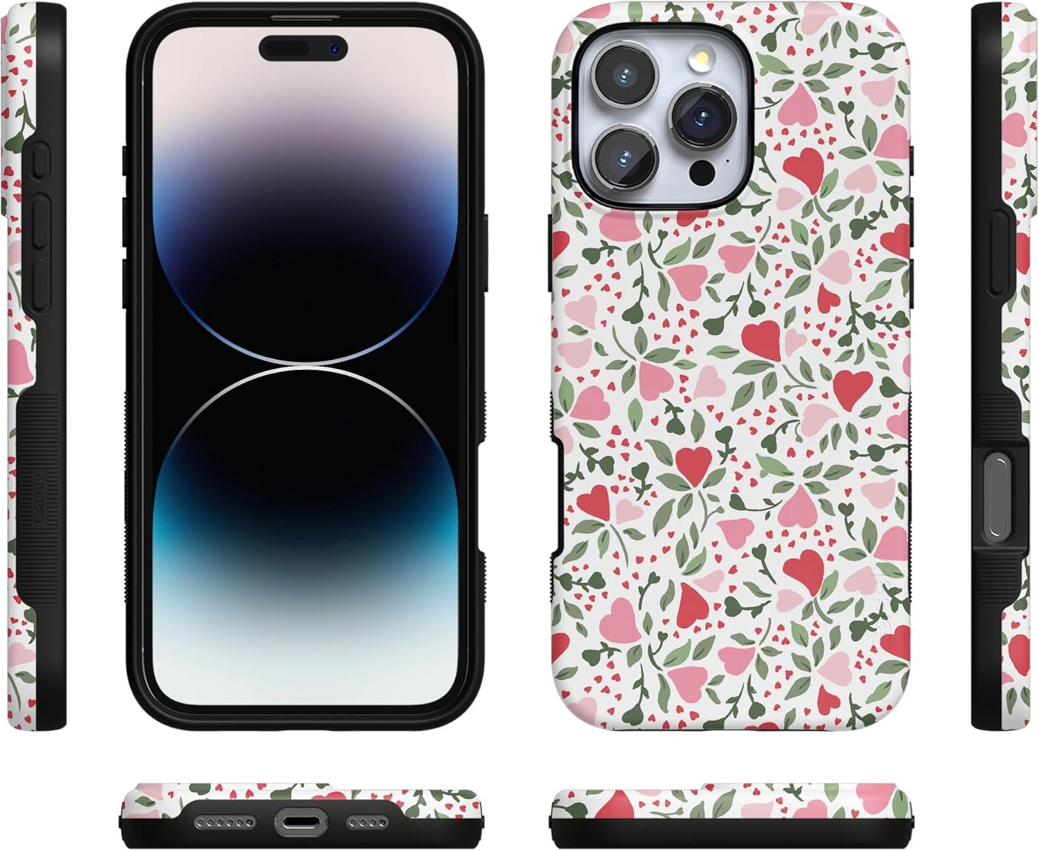 Casely iPhone 16 Pro Case | Into The Wild | Black Leopard | Bold Protective Design | Compatible with MagSafe(Vines of Love | Floral Heart)