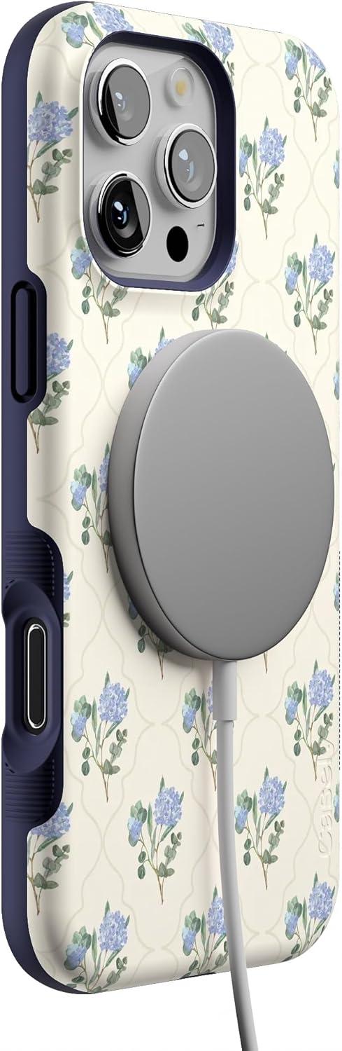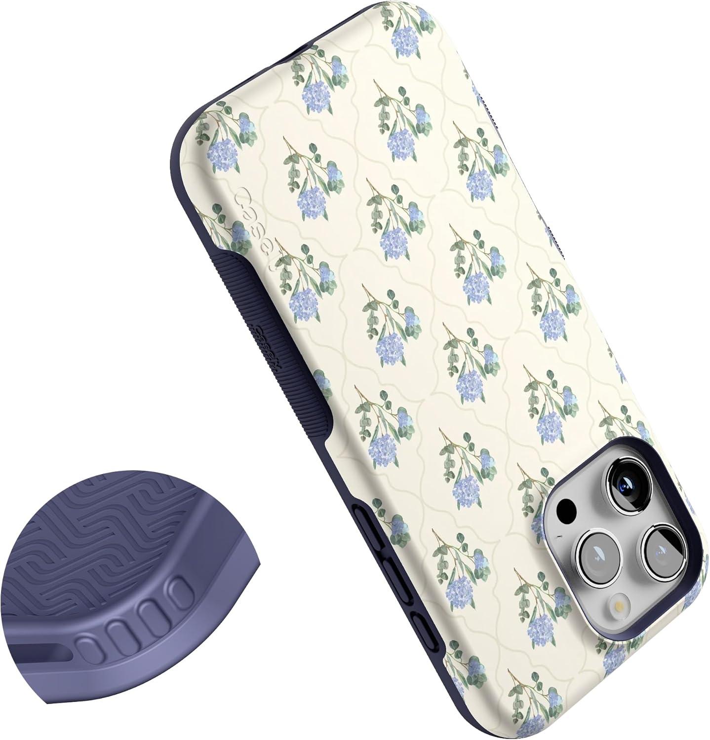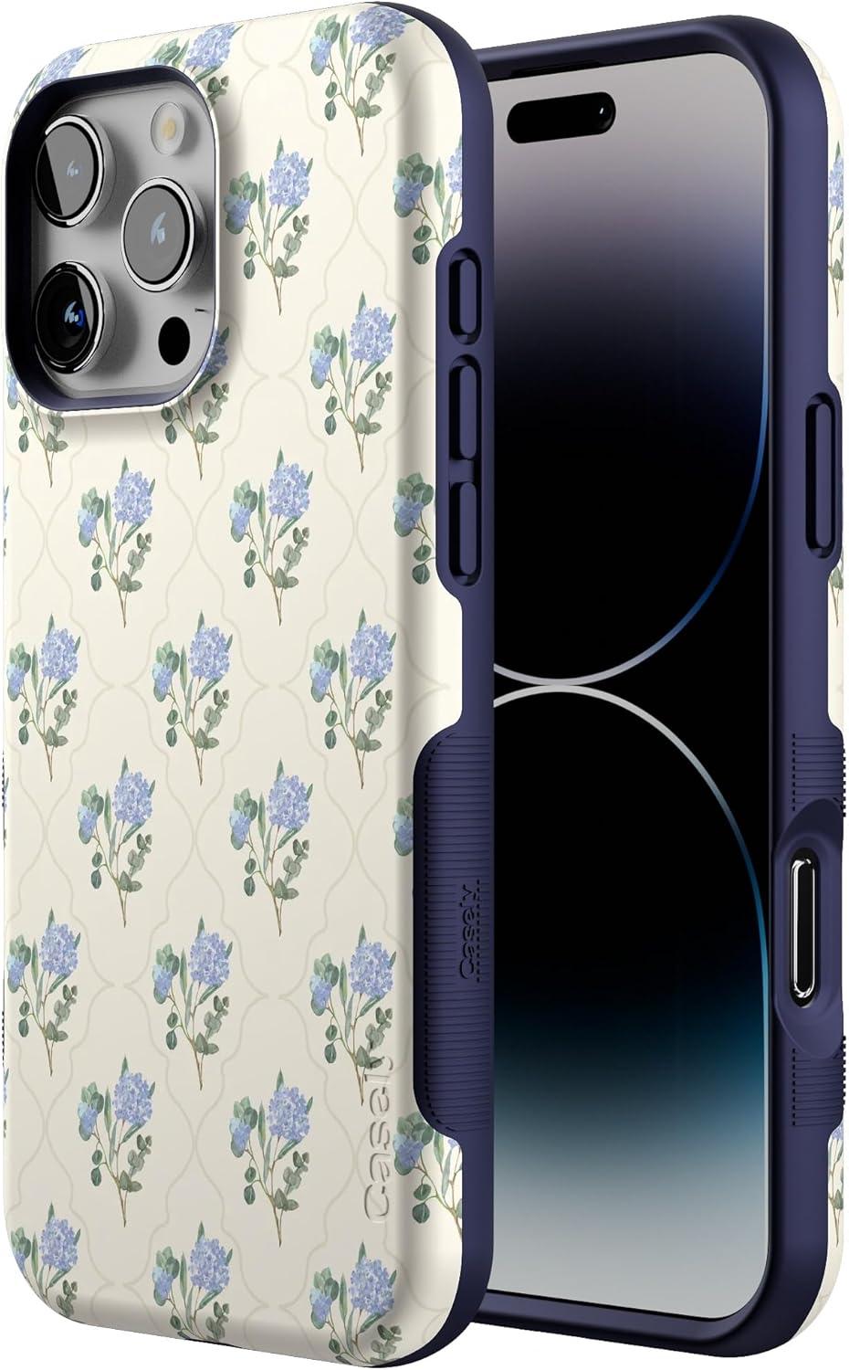 Casely iPhone 16 Pro Case | Into The Wild | Black Leopard | Bold Protective Design | Compatible with MagSafe(Vintage Garden | Blue Hydrangea)